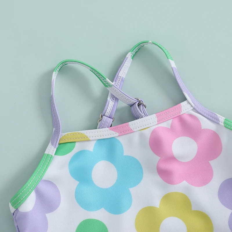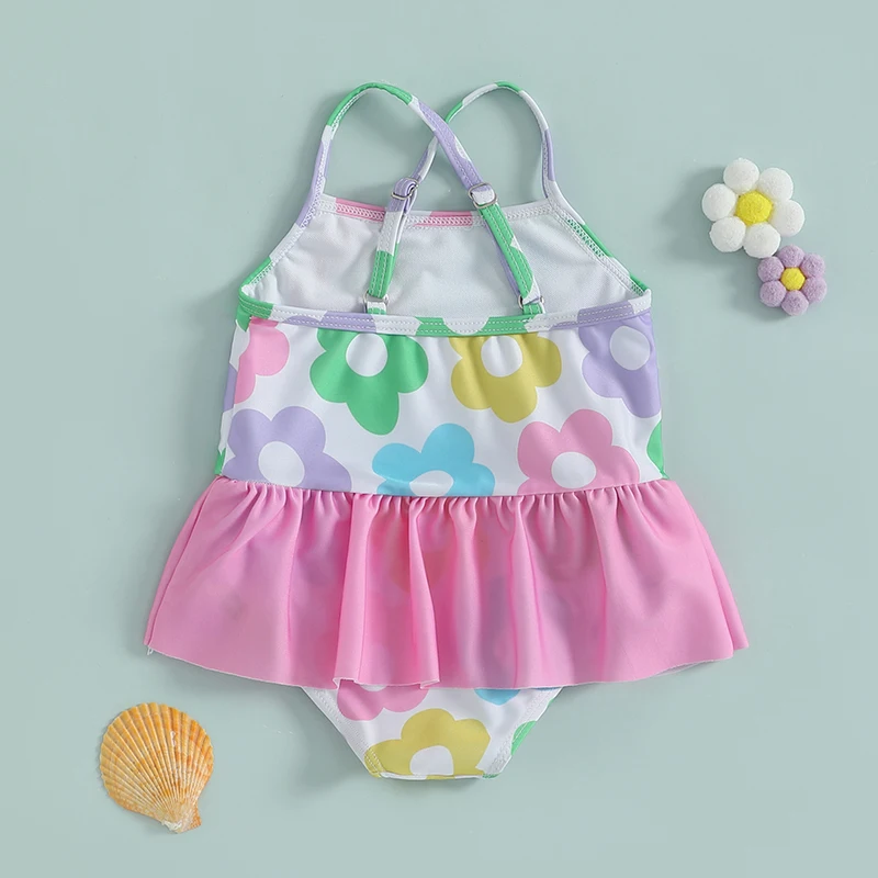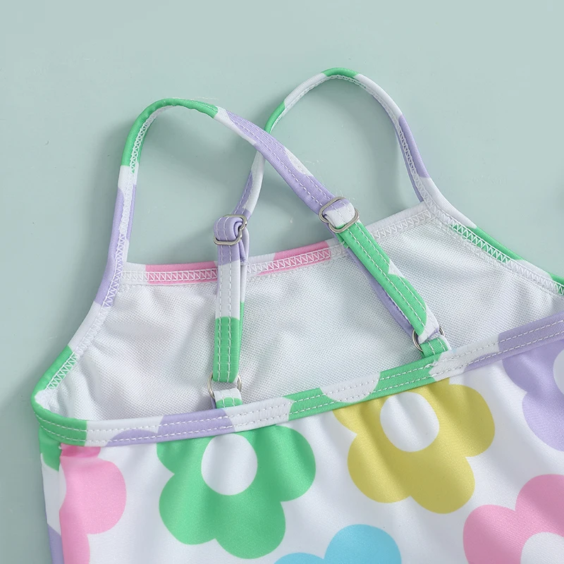 Trajes de baño para niñas con estampado floral y tirantes cruzados, sin mangas, con volantes, trajes de baño para niños pequeños, ropa de playa