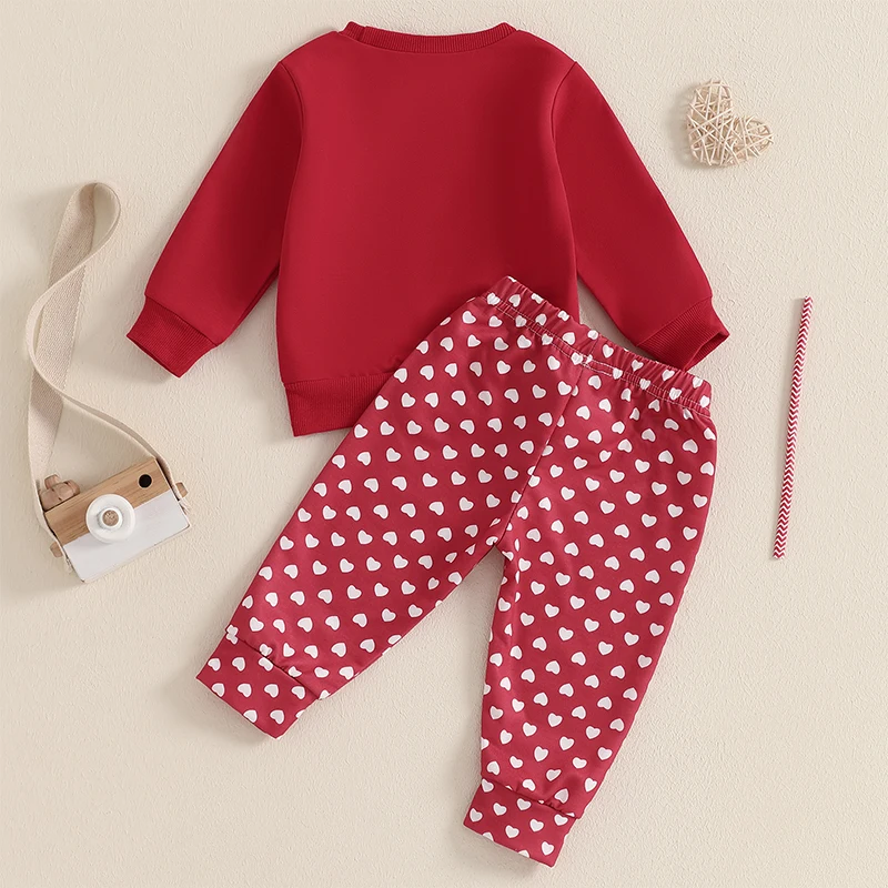 Comprar Suefunskry Trajes para el Día de San Valentín para niños pequeños Sudadera de manga larga con estampado de letras y pantalones largos con patrón de corazón Ropa de primavera