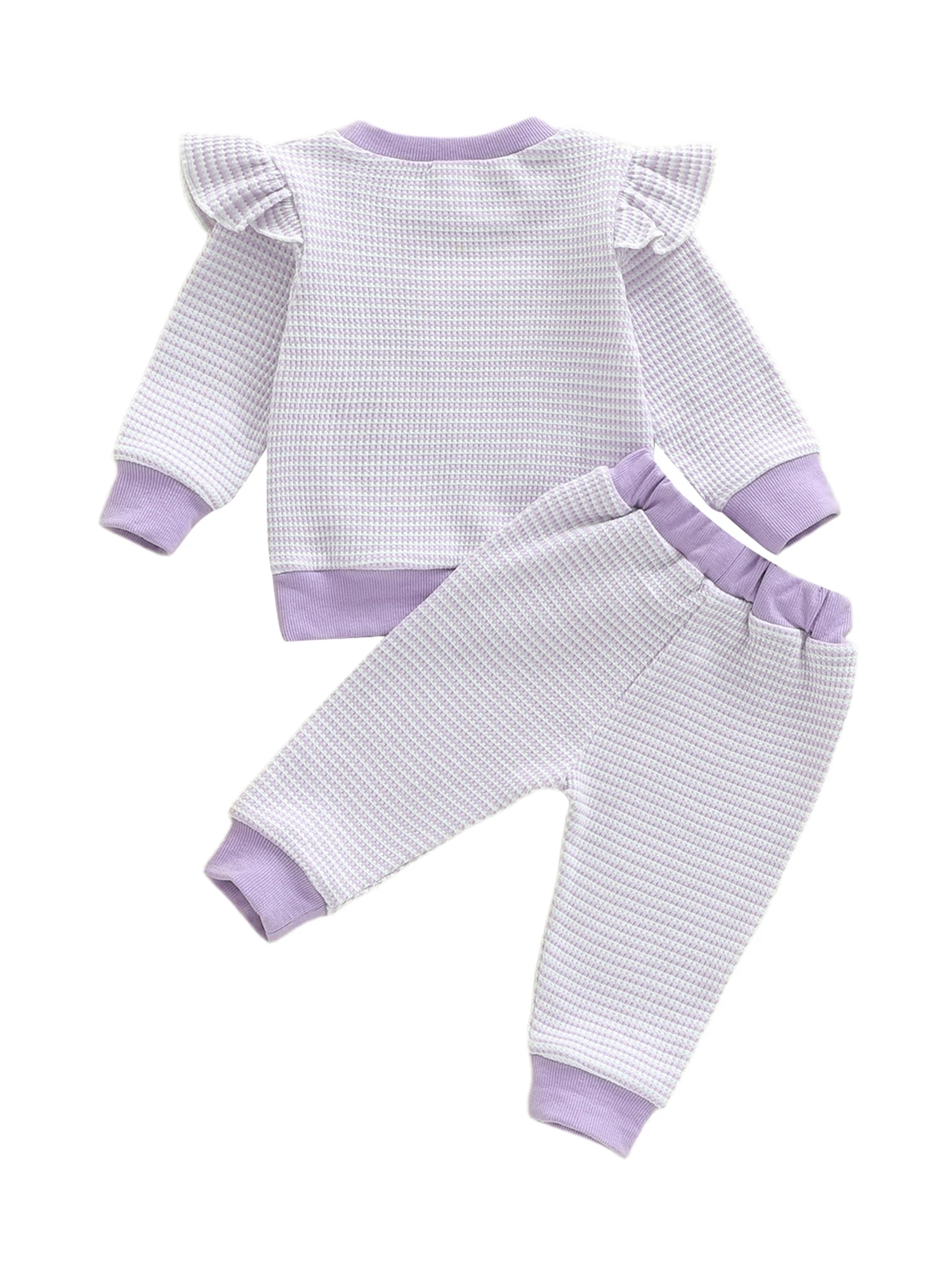 Suefunskry, trajes de primavera y otoño para niña, sudadera con letras de manga larga con volantes y pantalones de cintura elástica, conjunto de ropa para niños pequeños - imagen 2