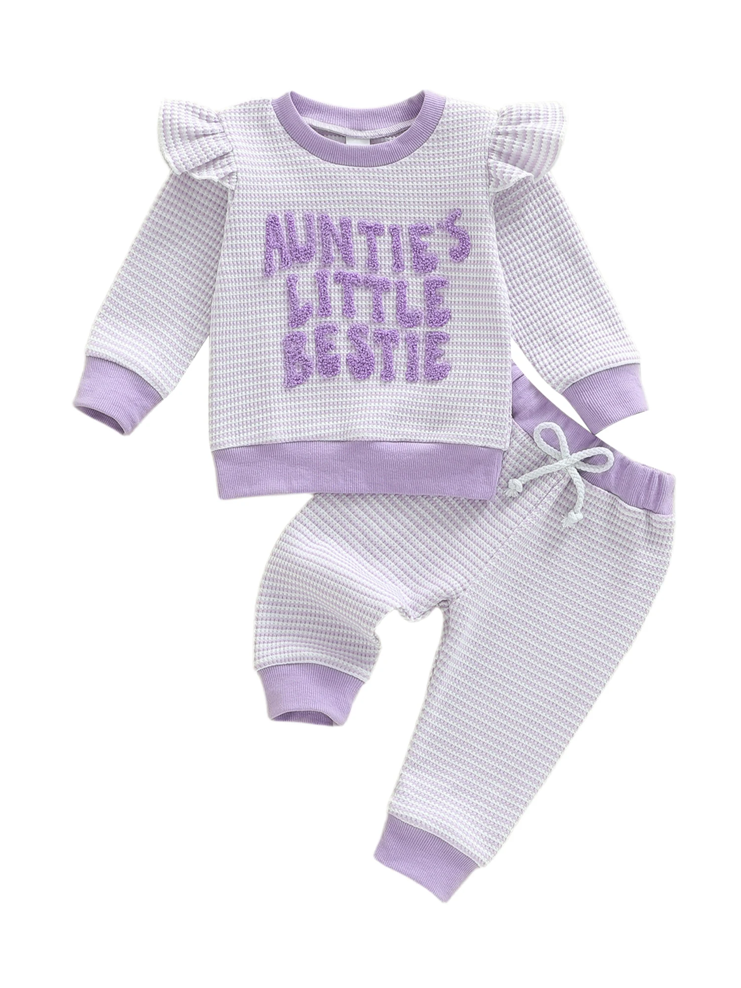 Suefunskry, trajes de primavera y otoño para niña, sudadera con letras de manga larga con volantes y pantalones de cintura elástica, conjunto de ropa para niños pequeños - imagen 1