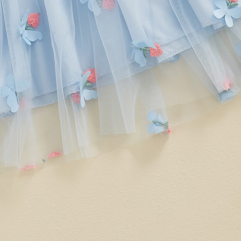 Vestido sin mangas para niñas, vestido de verano sin mangas con mariposas y flores, vestido de princesa de tul