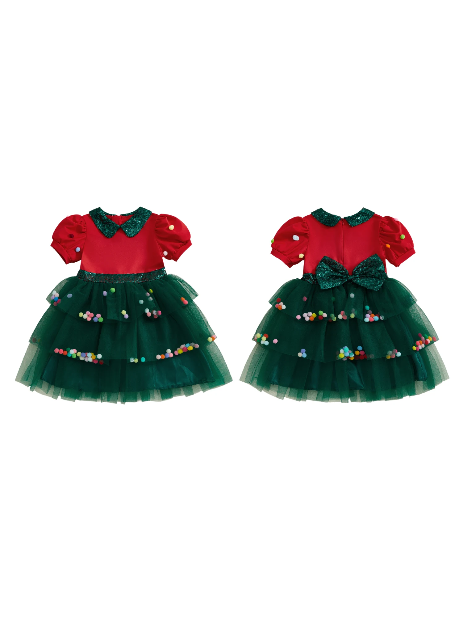 Comprar Suefunskry Vestido de Navidad para niña pequeña con lentejuelas y cuello de muñeca, mangas cortas abullonadas, vestido de retazos de tul