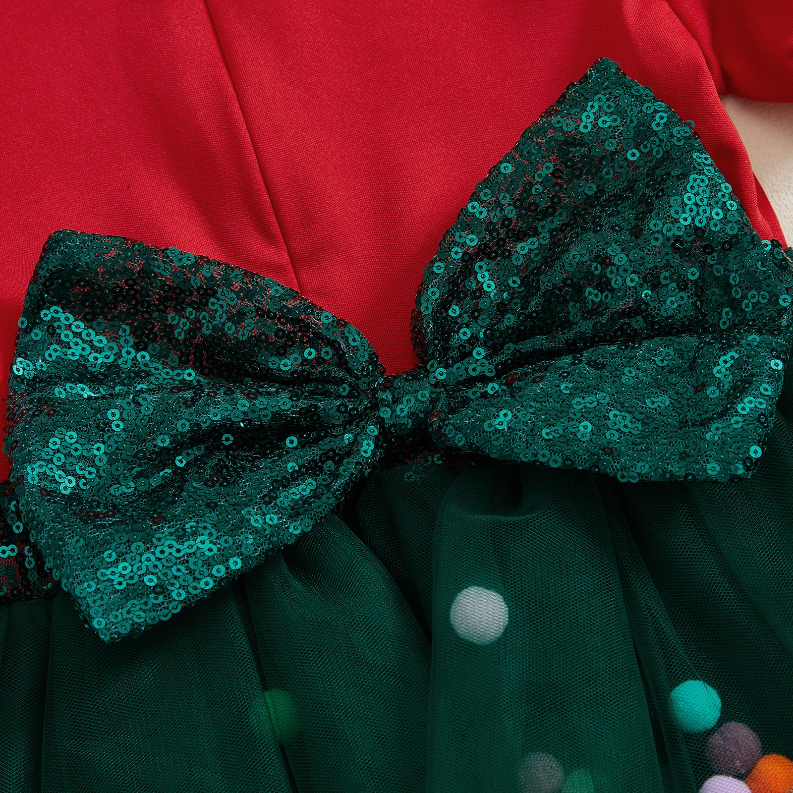 Comprar Suefunskry Vestido de Navidad para niña pequeña con lentejuelas y cuello de muñeca, mangas cortas abullonadas, vestido de retazos de tul