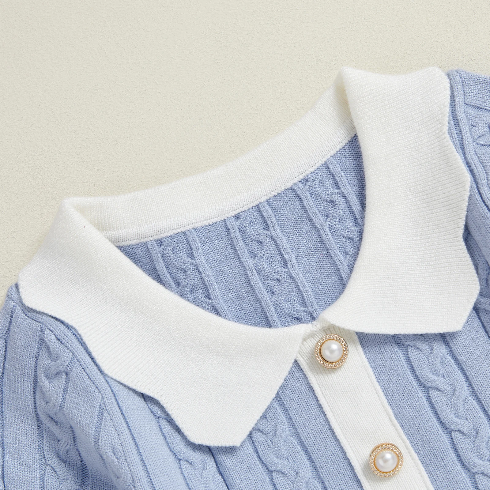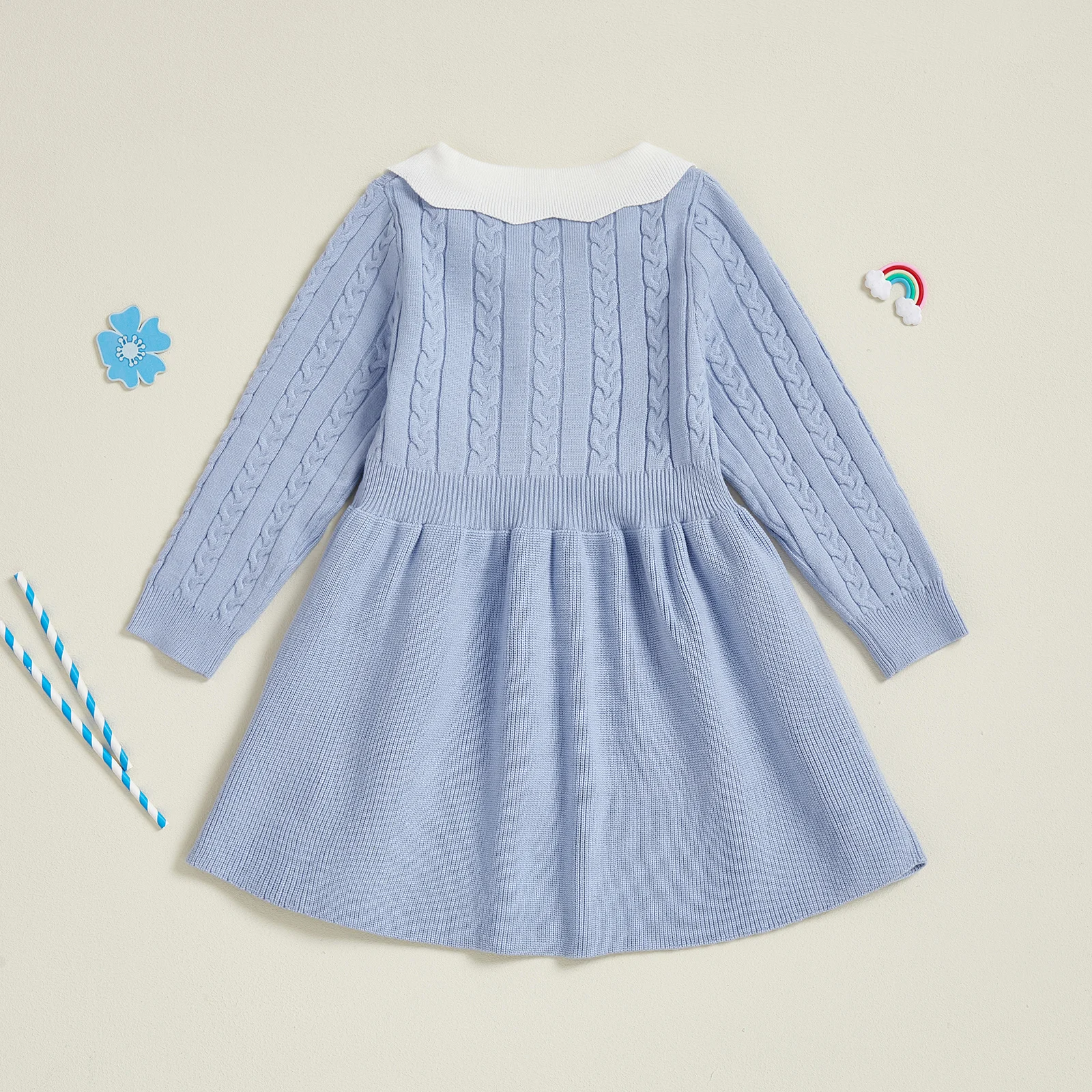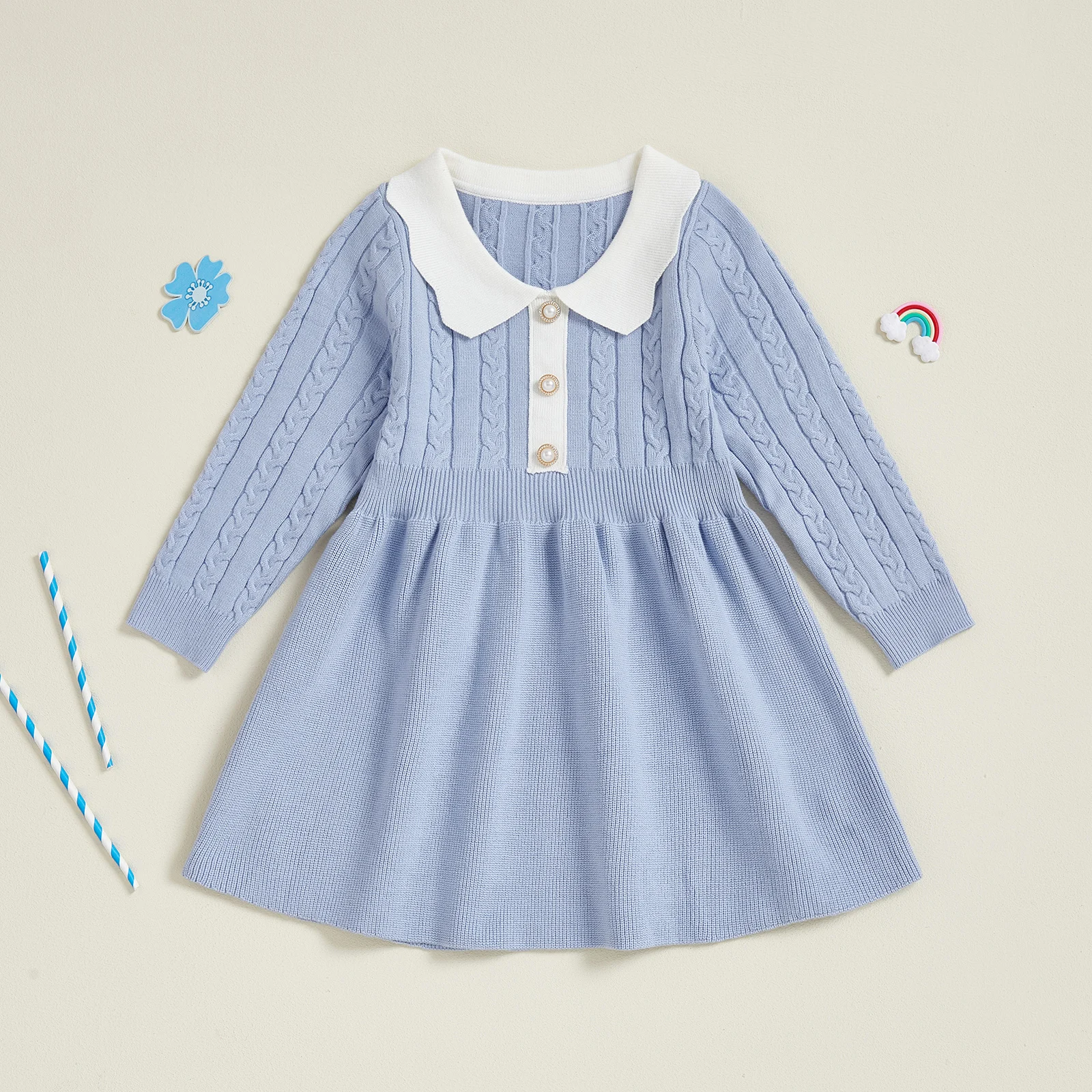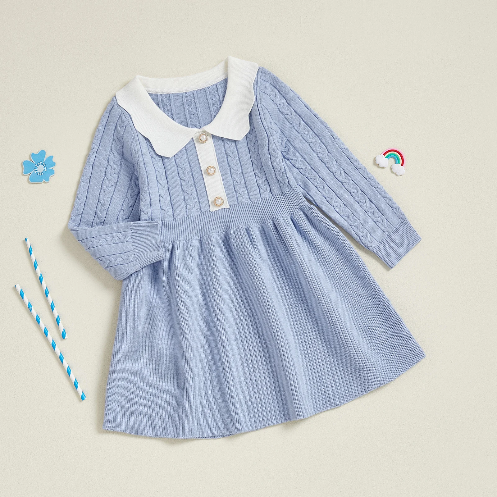 Comprar Suefunskry Vestido de otoño para niña pequeña, tejido, línea A, Color en contraste, cuello vuelto, botones, manga larga, suéter