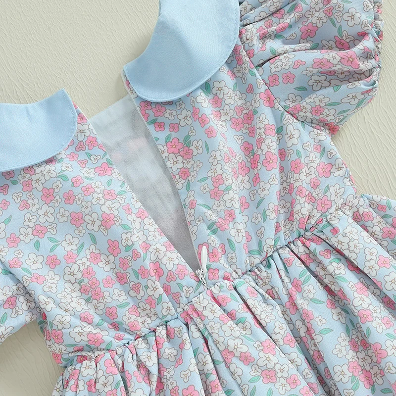 Comprar Suefunskry, vestido de Pascua para niñas pequeñas, bordado de conejo, estampado Floral, encaje, volantes, vestido de manga corta, vestido de princesa de verano para niños