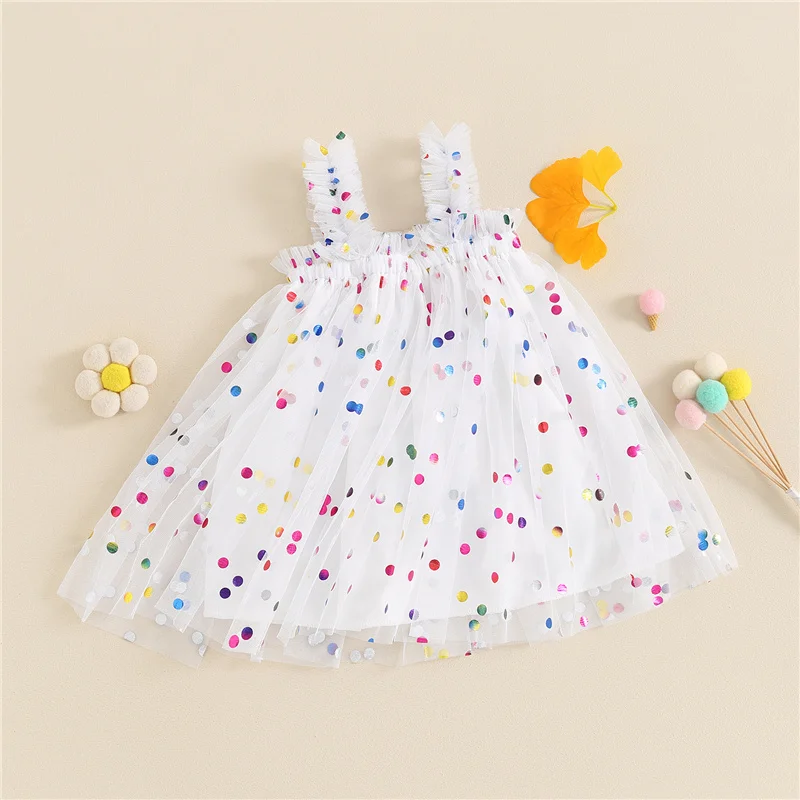 Niñas verano Cami tul vestido sin mangas colorido punto estampado A-line malla princesa vestido