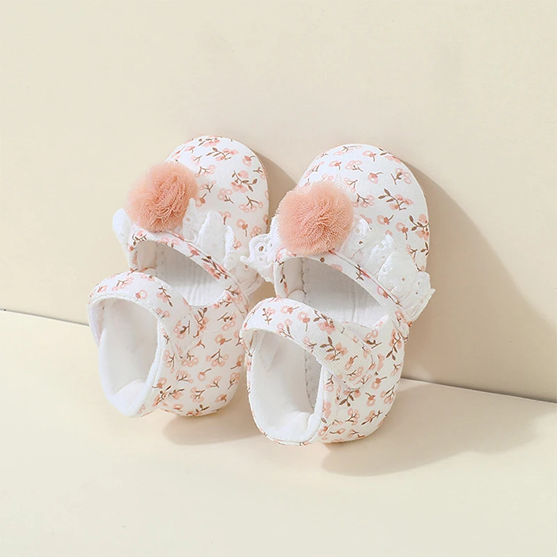 Patrón: estampado floral, bola 3D, ribete de encaje.