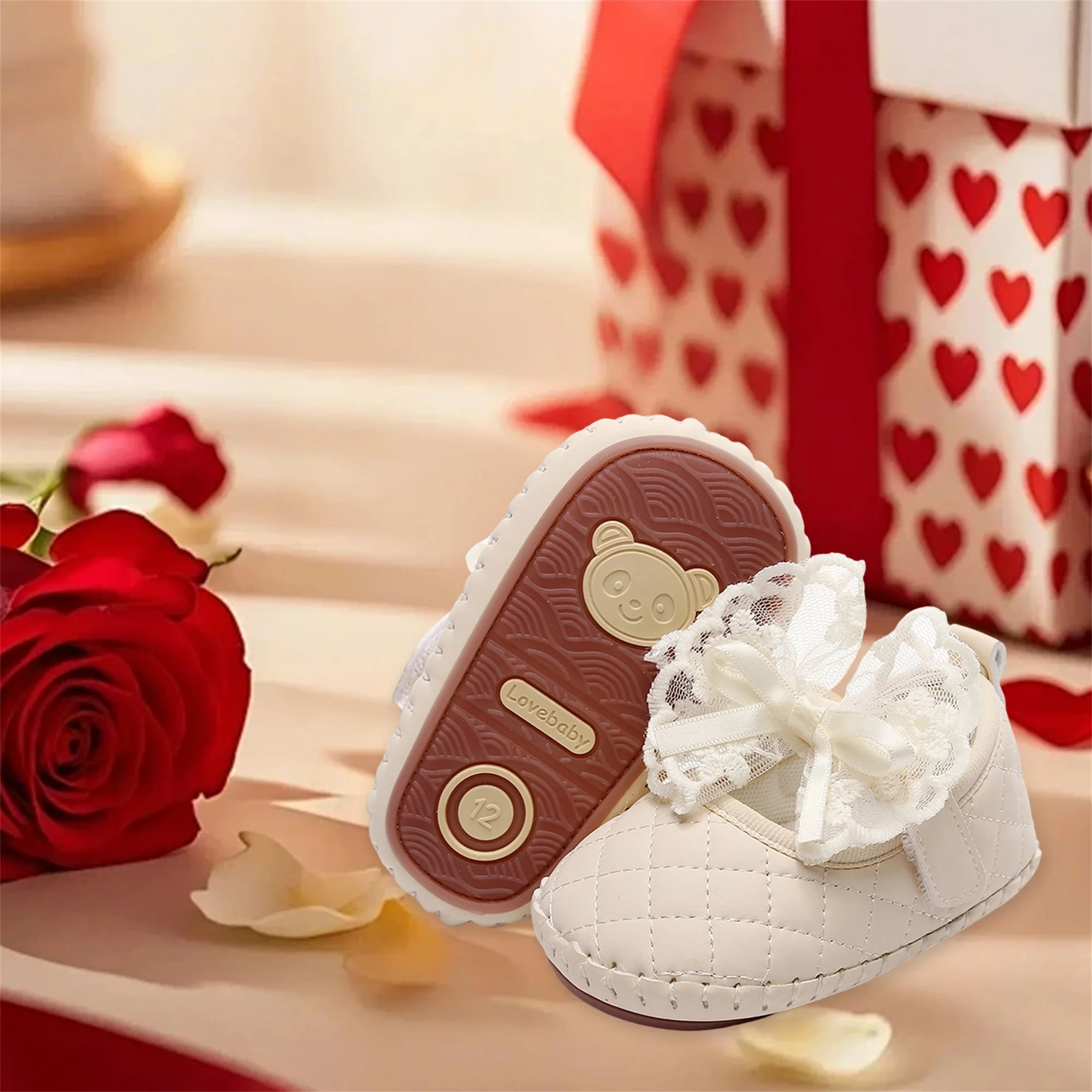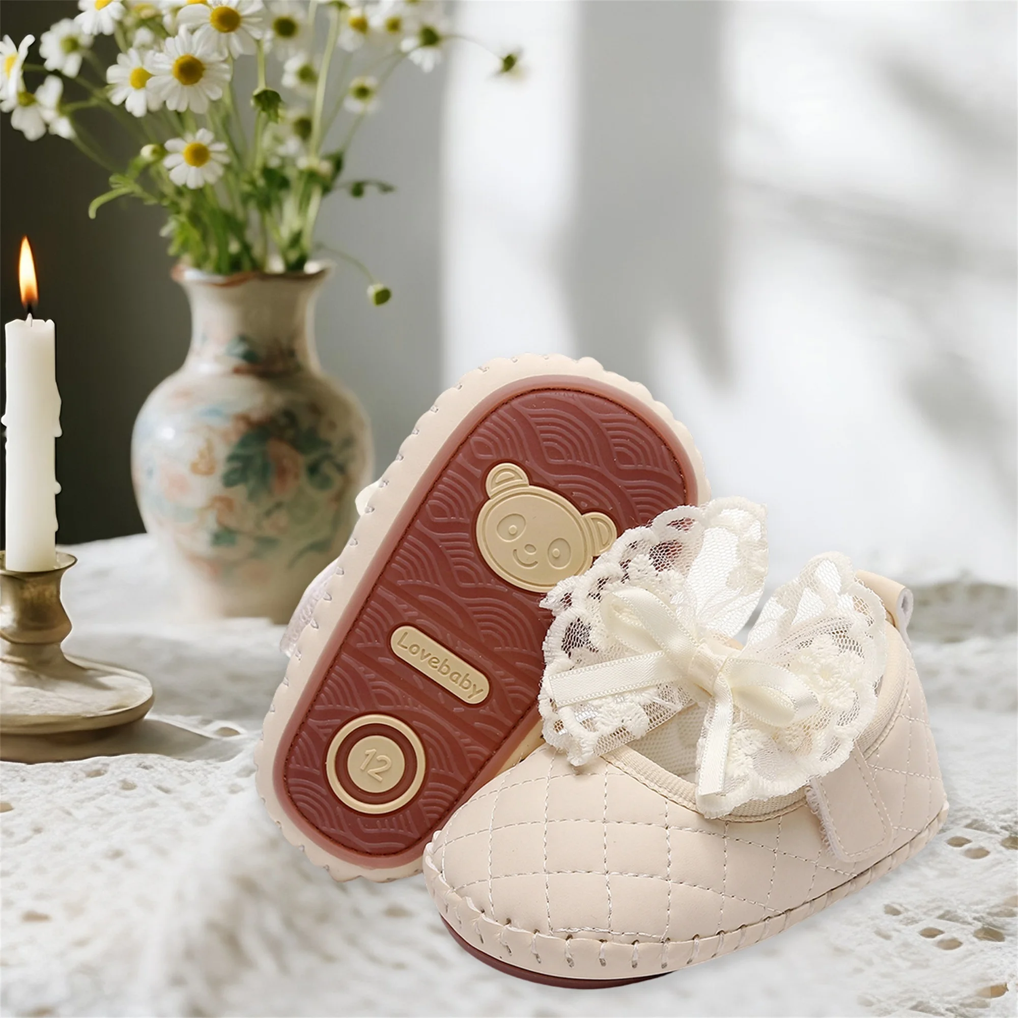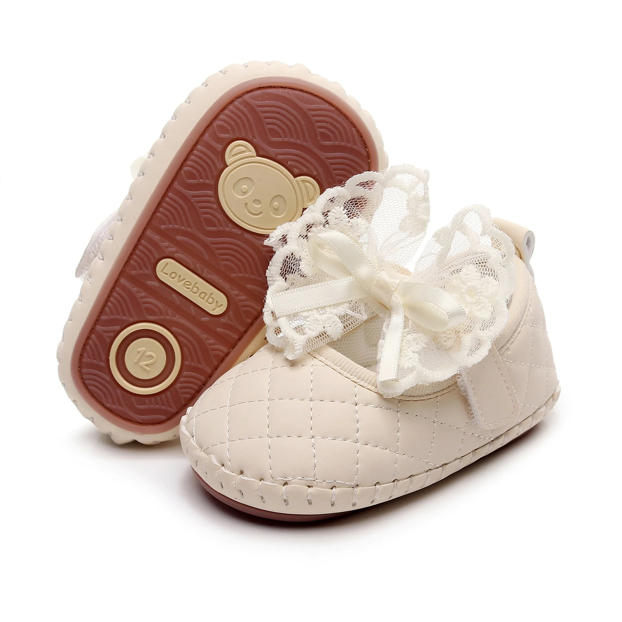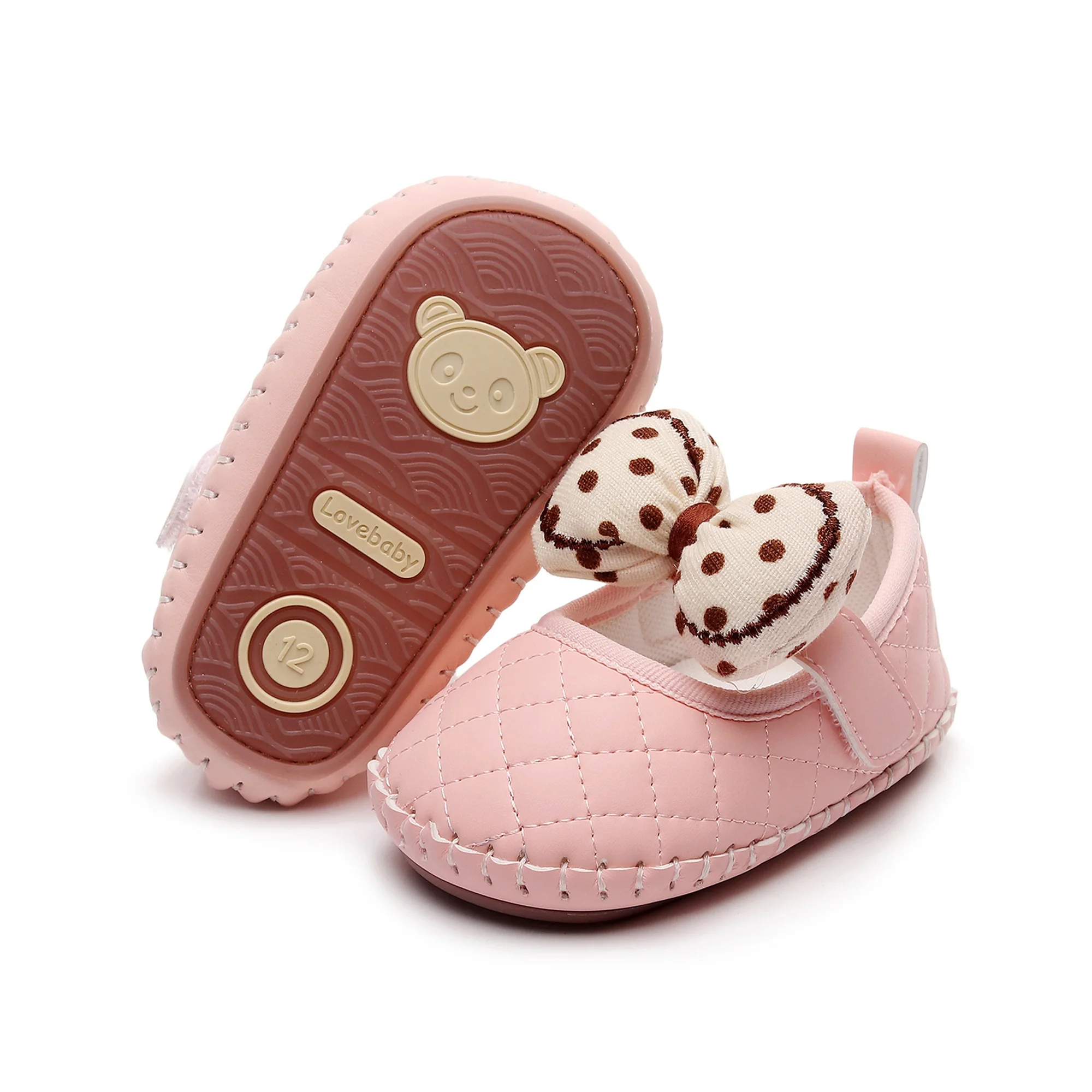 Zapatos de princesa para niñas, zapatos de primeros pasos con fondo antideslizante y lazo de cuero PU suave, zapatos para niños pequeños