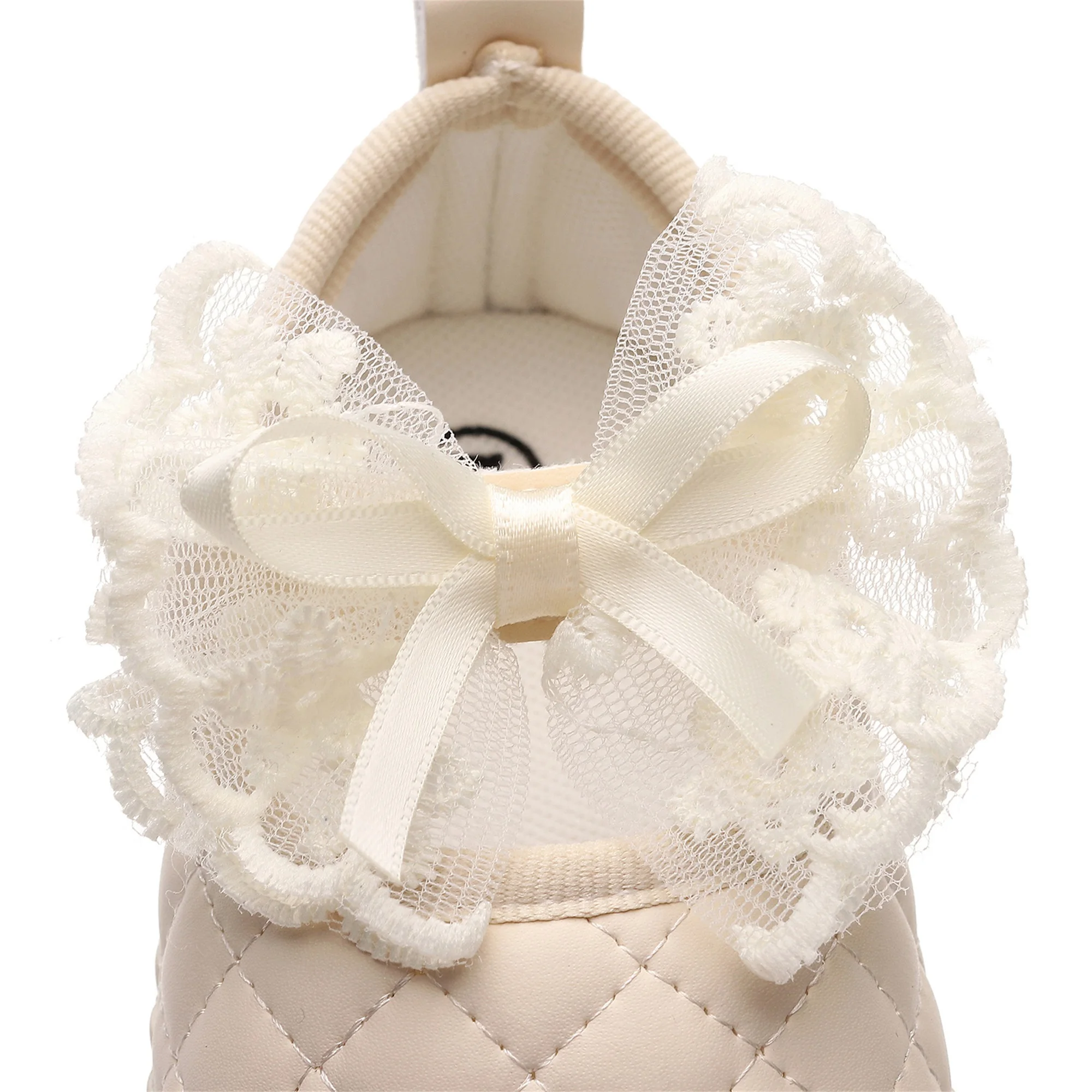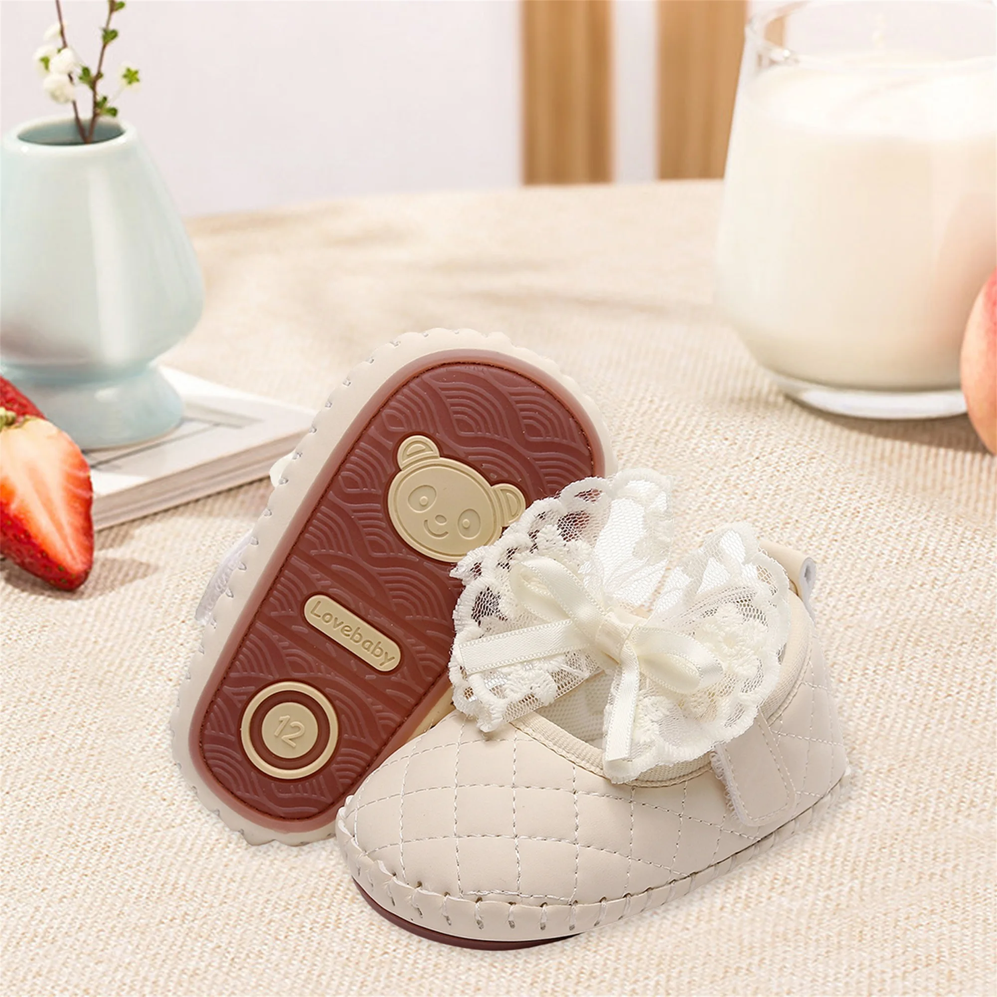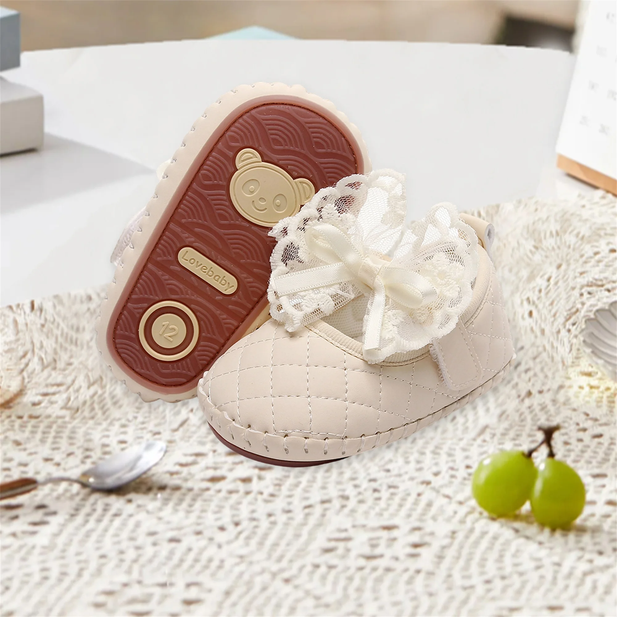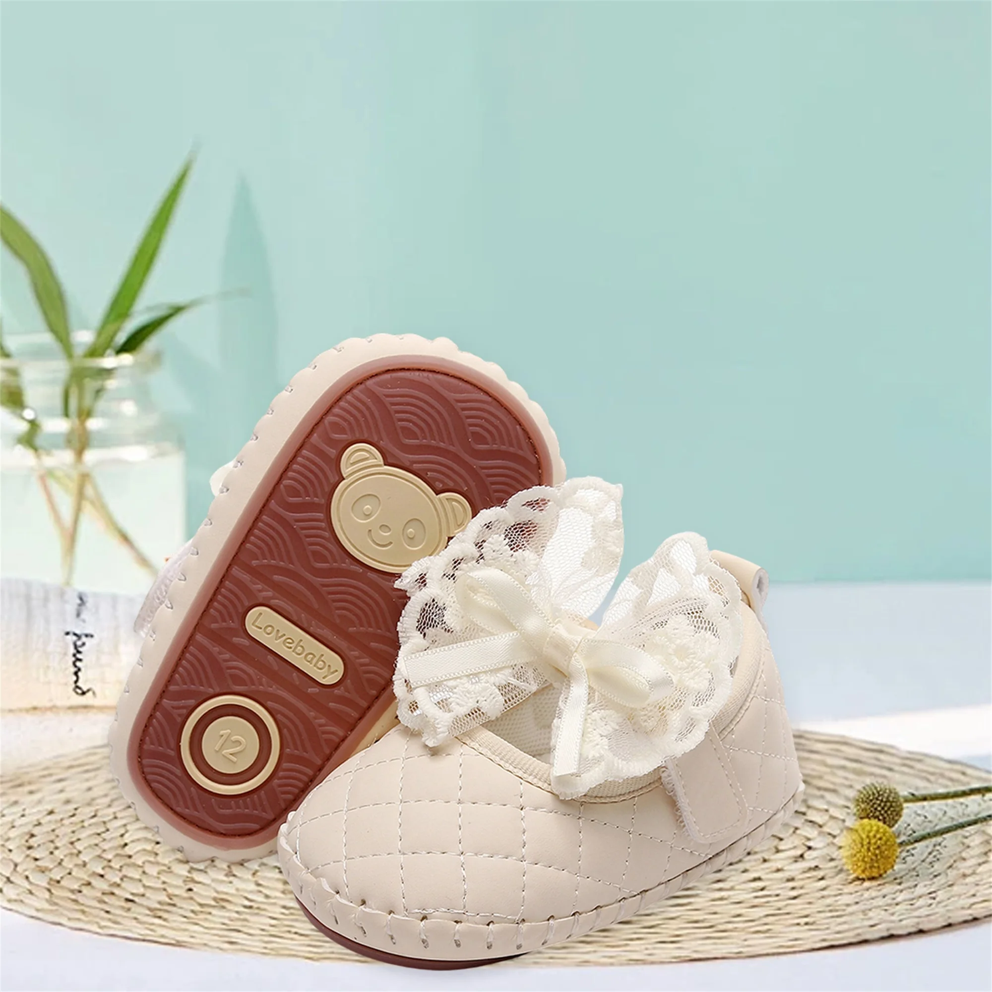 Zapatos de princesa para niñas, zapatos de primeros pasos con fondo antideslizante y lazo de cuero PU suave, zapatos para niños pequeños