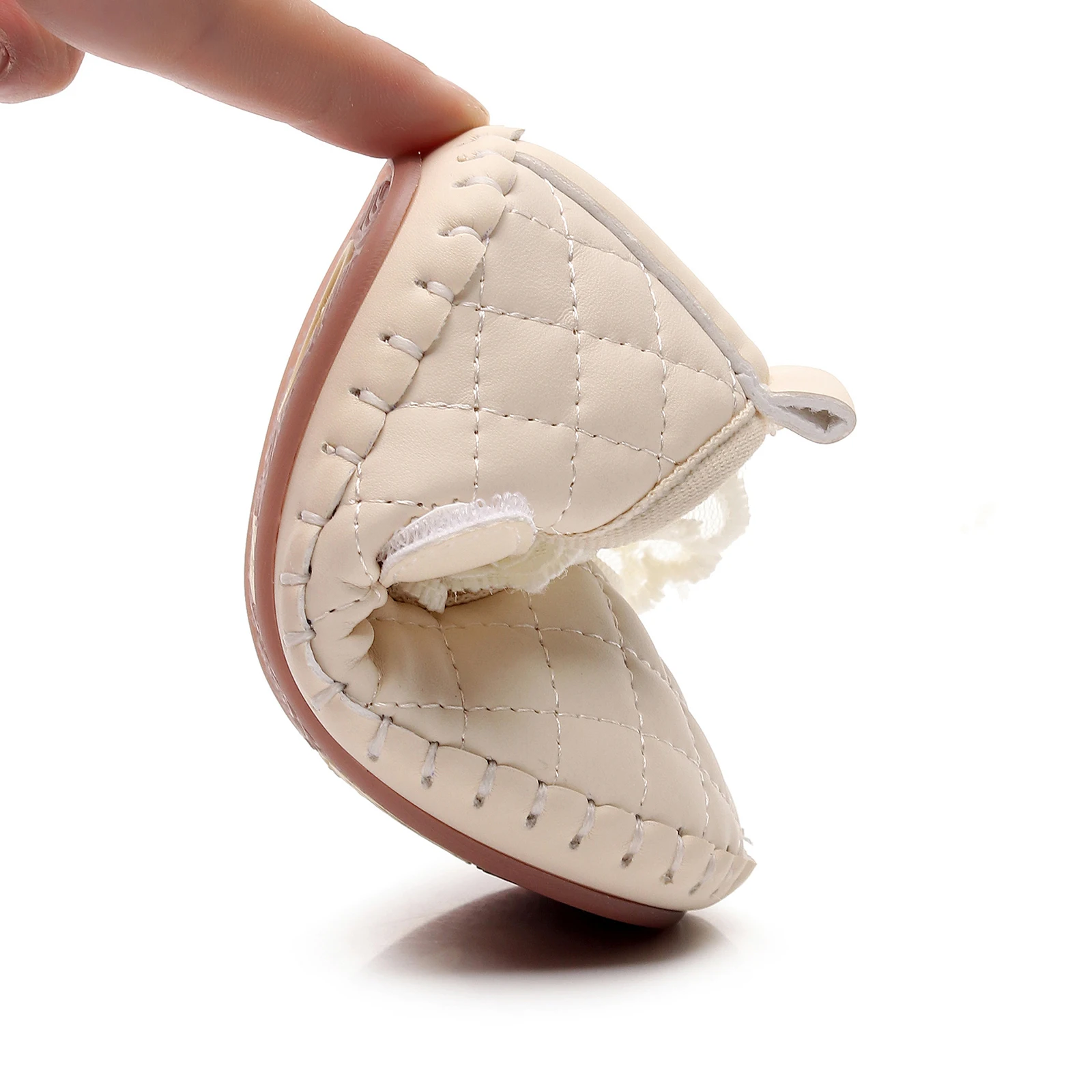Zapatos de princesa para niñas, zapatos de primeros pasos con fondo antideslizante y lazo de cuero PU suave, zapatos para niños pequeños