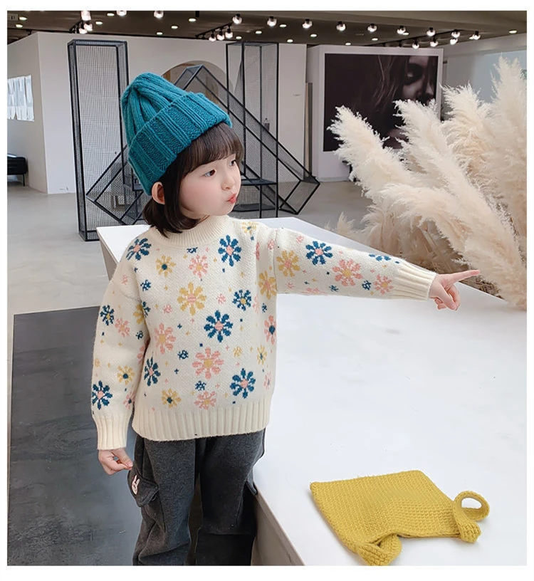 Comprar Suéter grueso con forro de felpa para niñas, suéter de cuello redondo para niños, estilo informal, suéter de bebé con patrón lindo, Otoño e Invierno