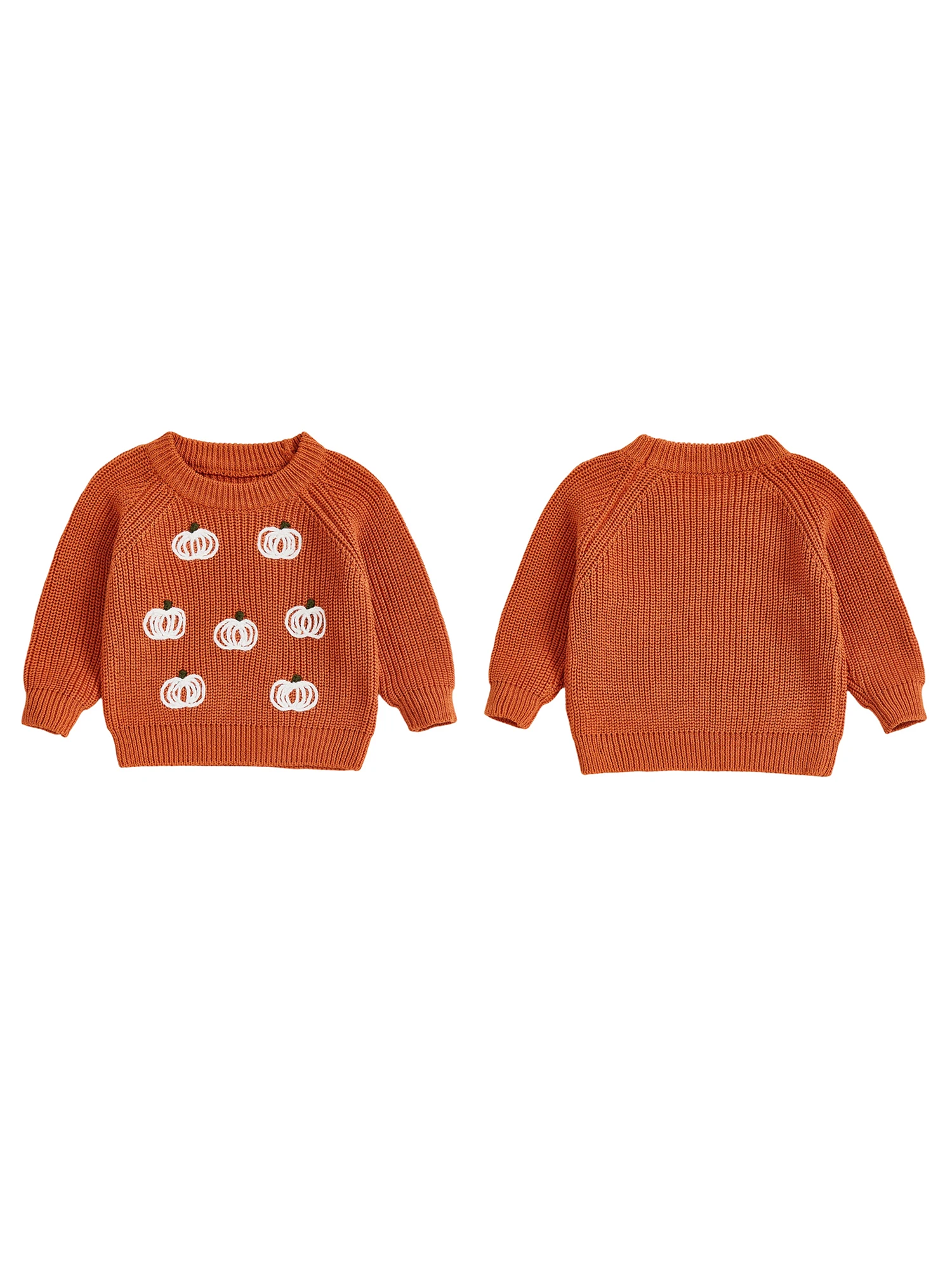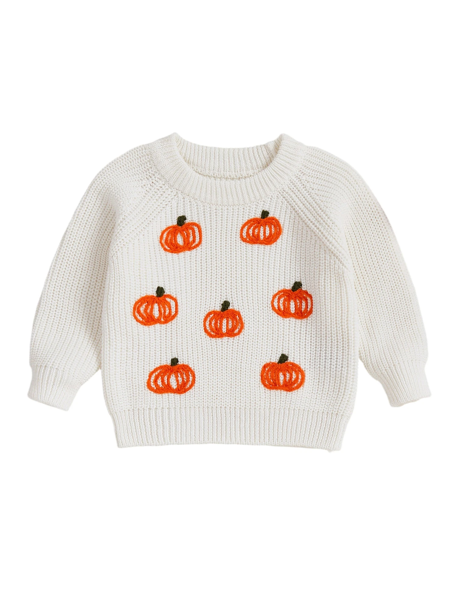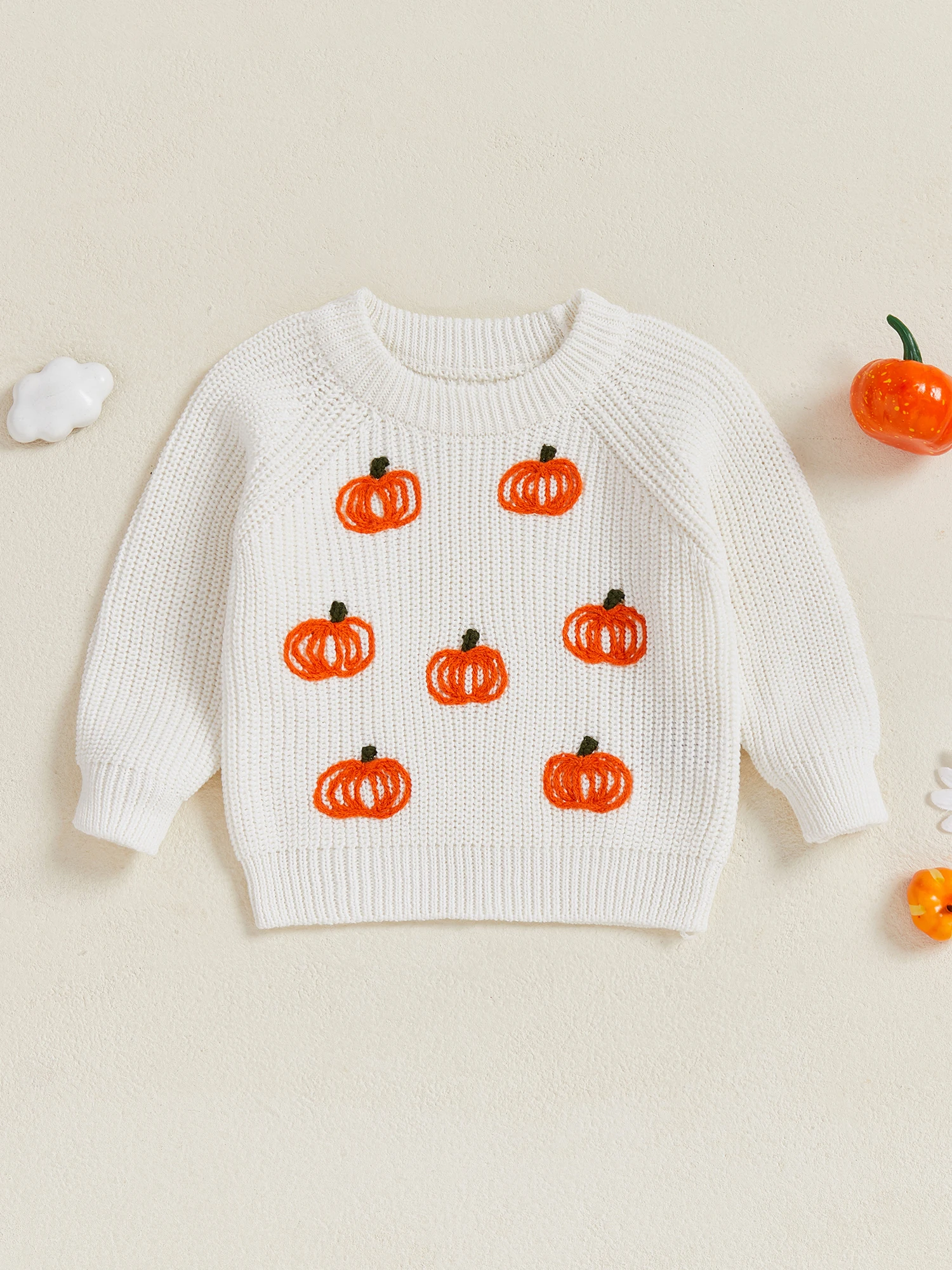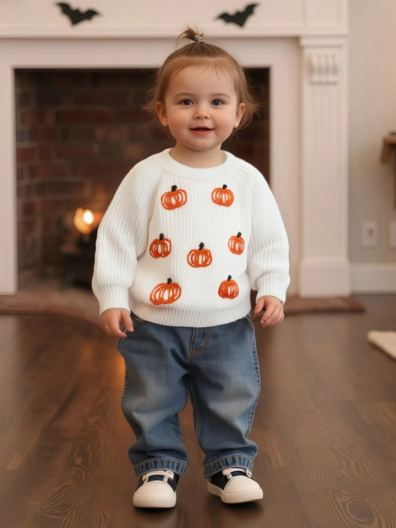 Comprar Suéter de Halloween para bebés y niños, Jersey informal con bordado de calabaza y cuello redondo, prendas de punto para niños pequeños, ropa cálida
