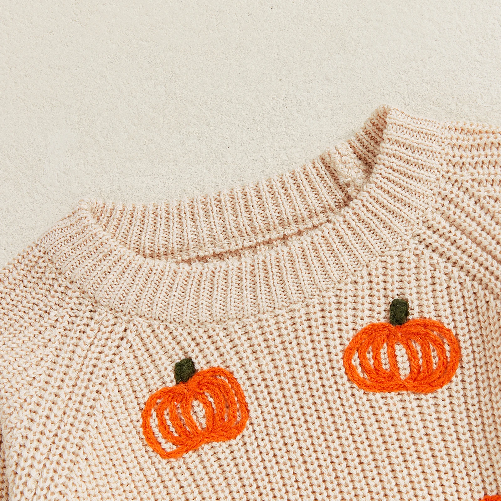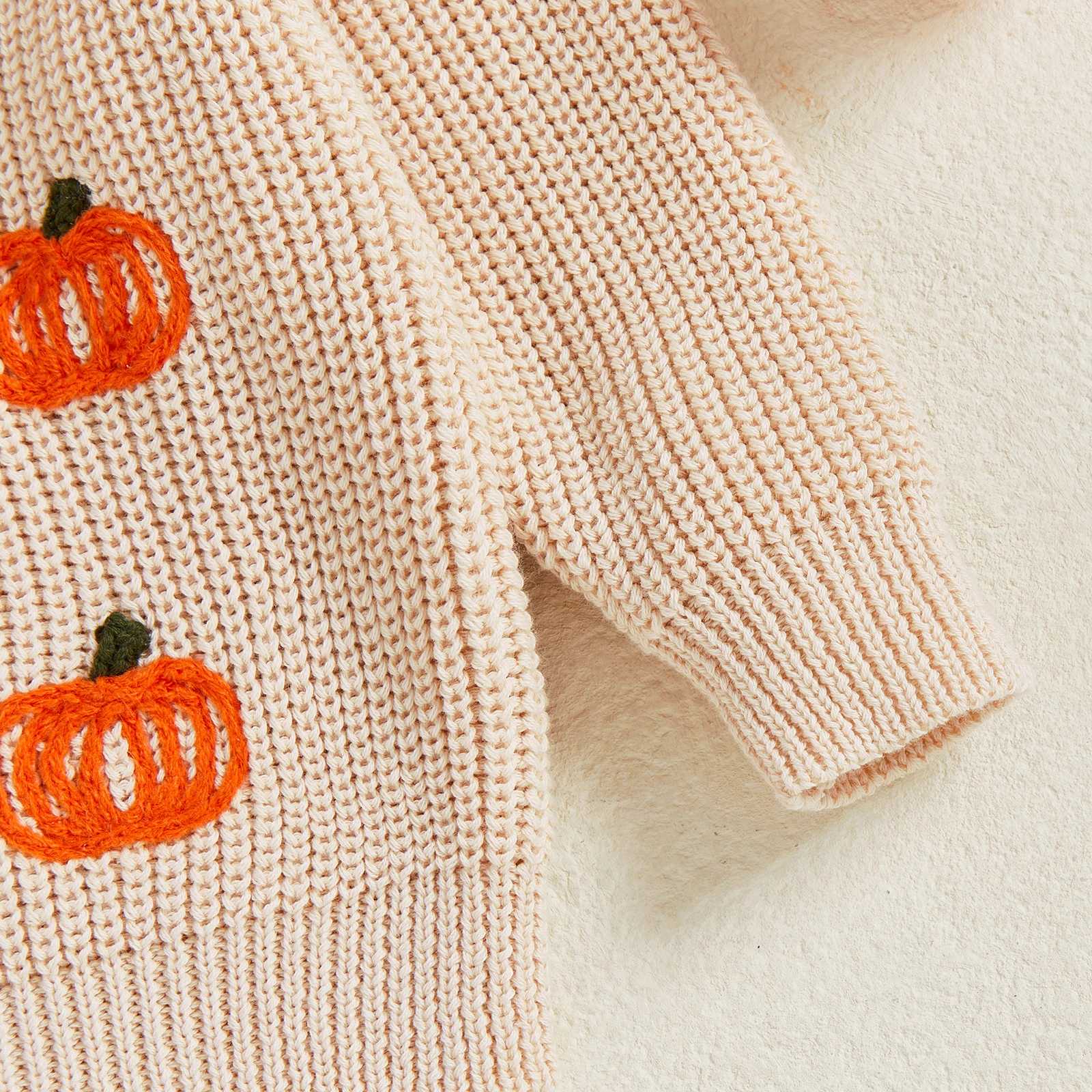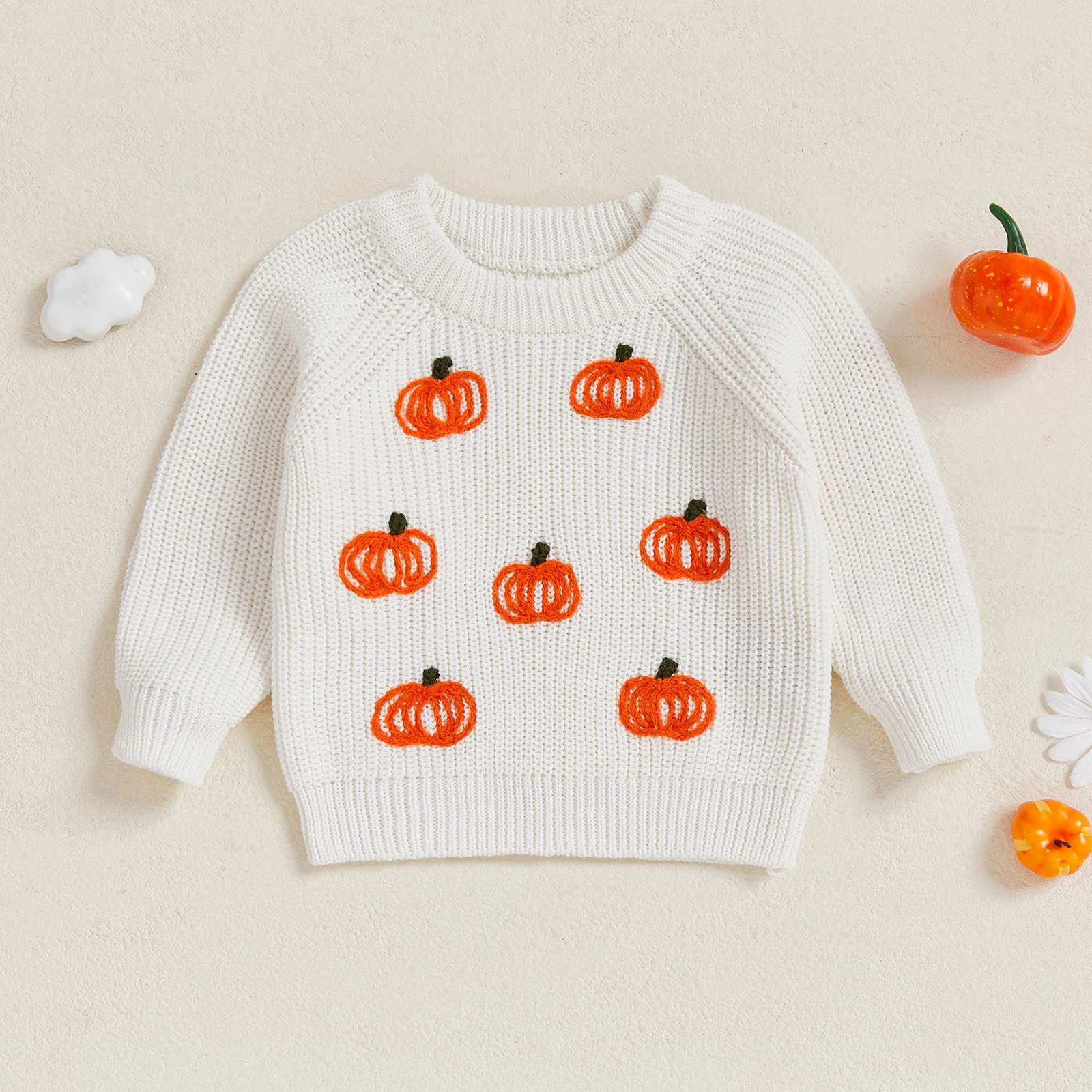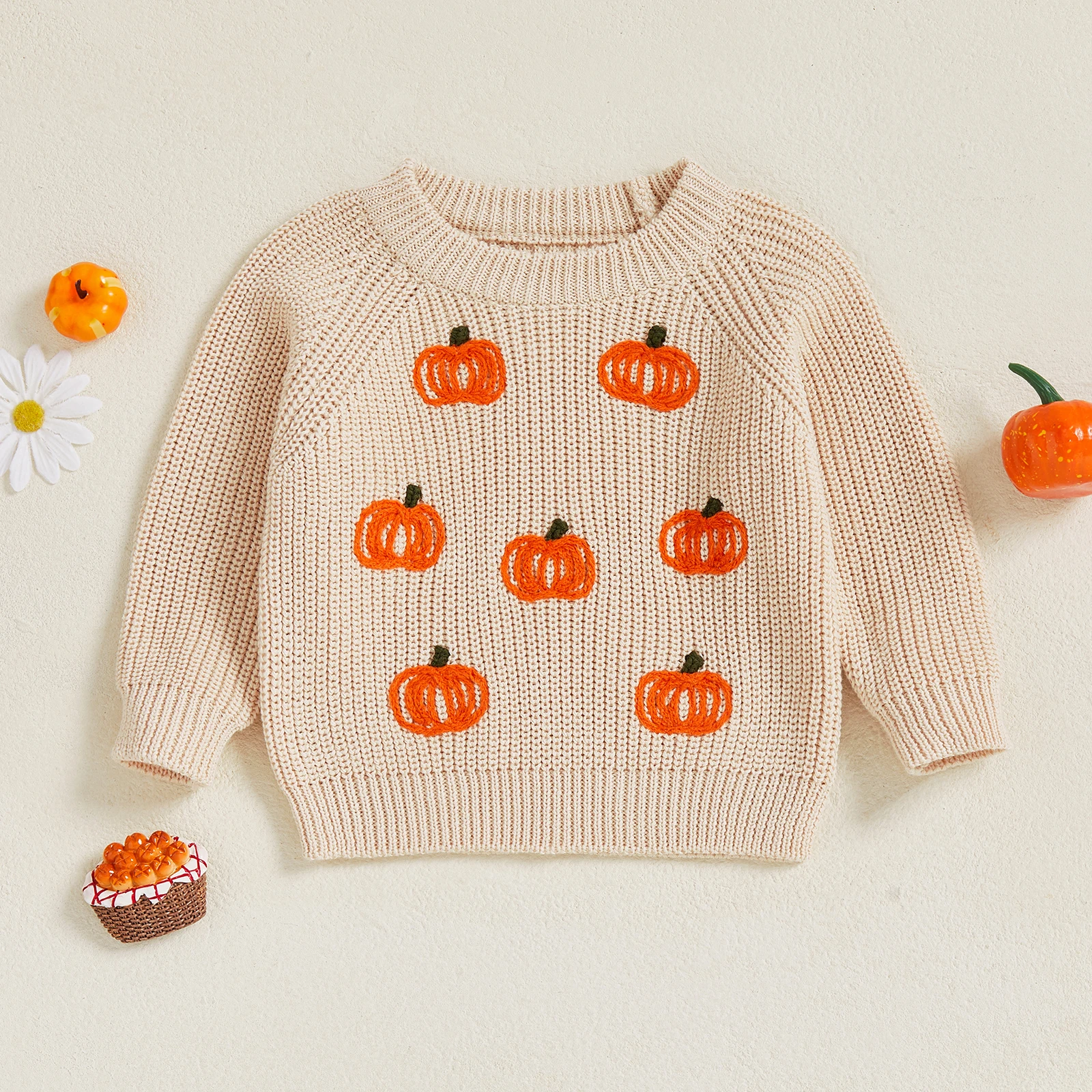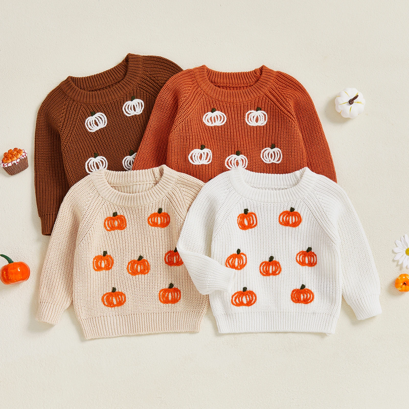 Comprar Suéter de Halloween para bebés y niños, Jersey informal con bordado de calabaza y cuello redondo, prendas de punto para niños pequeños, ropa cálida