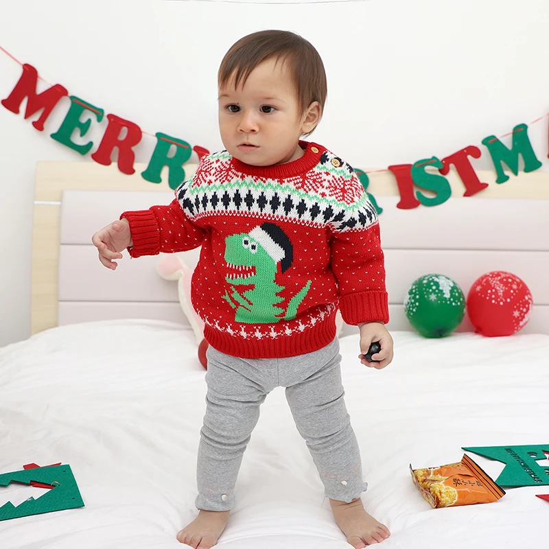 Comprar Suéter de manga larga con diseño de dinosaurio para bebé, suéter de manga larga para recién nacido, ropa de invierno para niño pequeño, Jersey de punto con diseño de copo de nieve