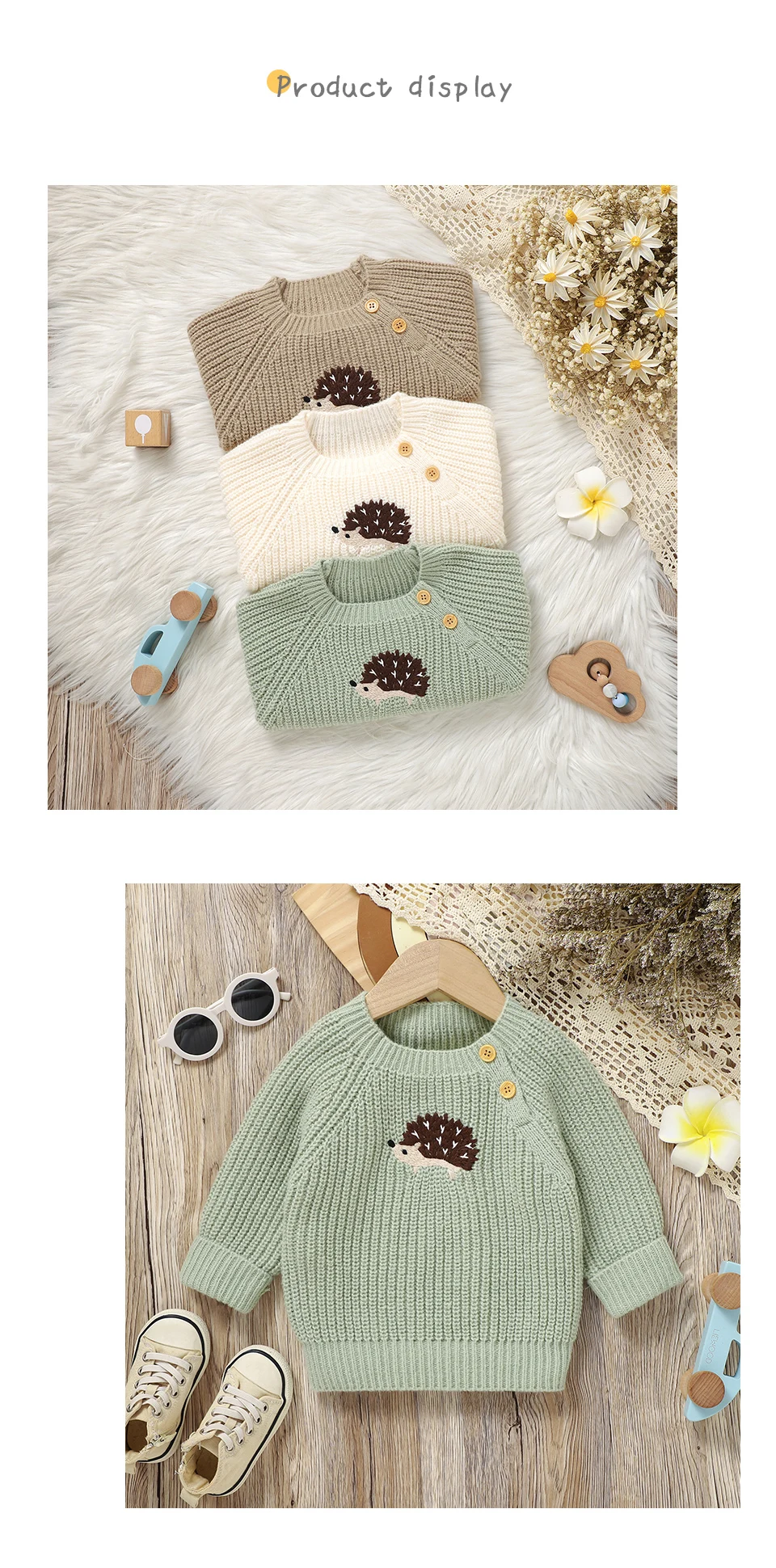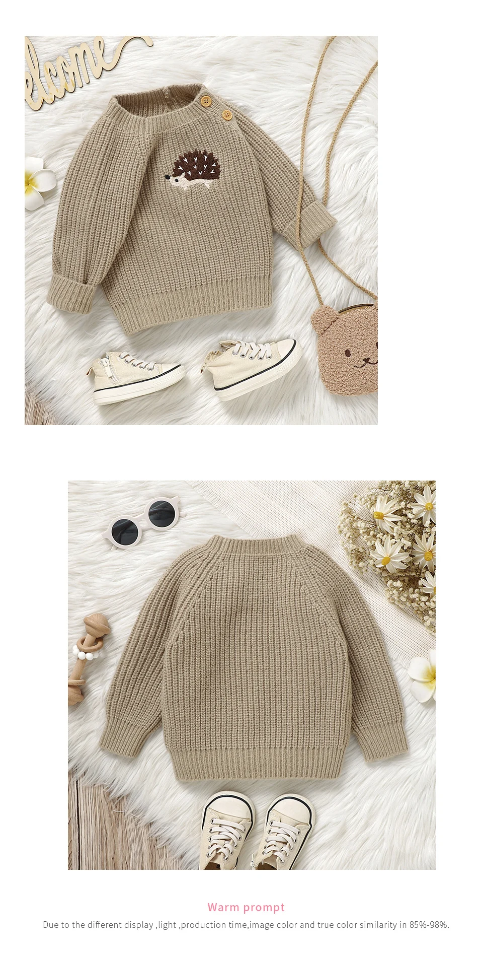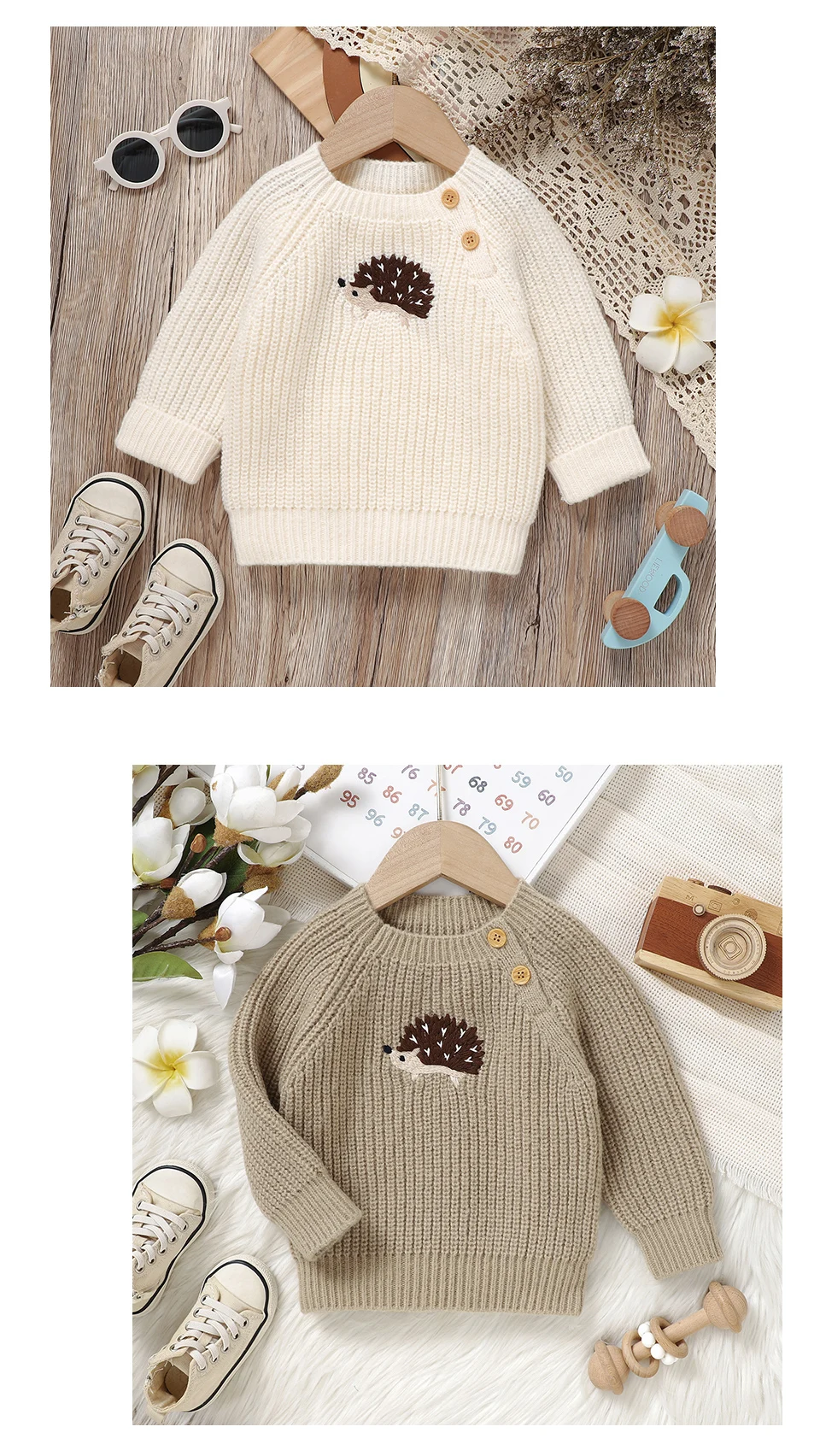 Suéter de punto para bebé recién nacido, jersey de invierno con cuello redondo y manga larga para niños y niñas, prendas de vestir informales, jersey para niños pequeños