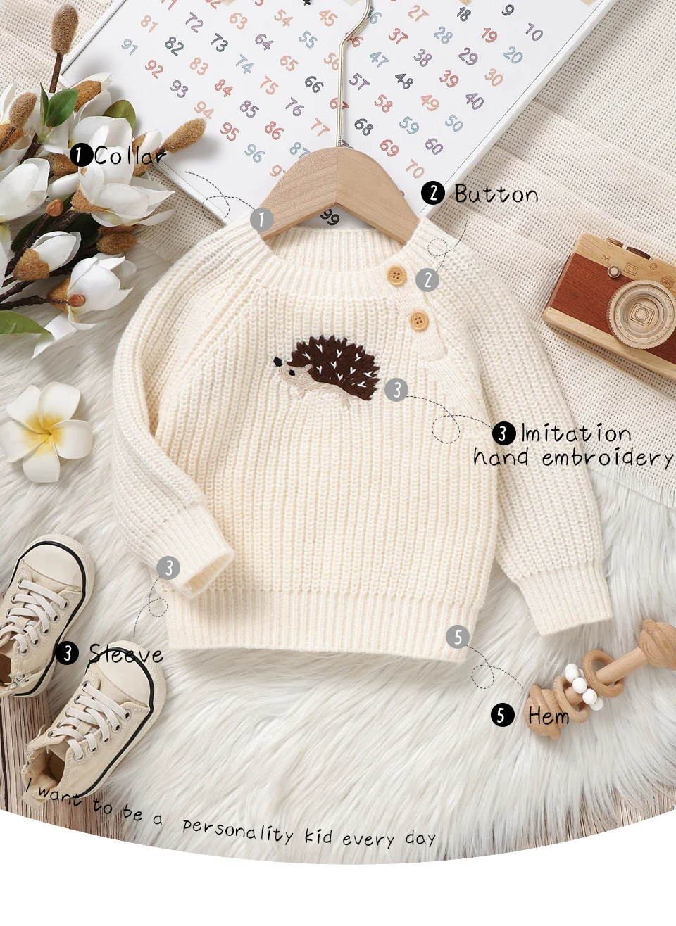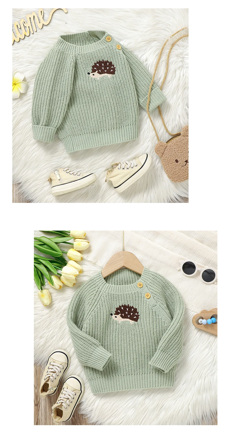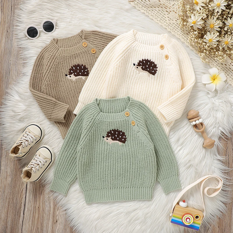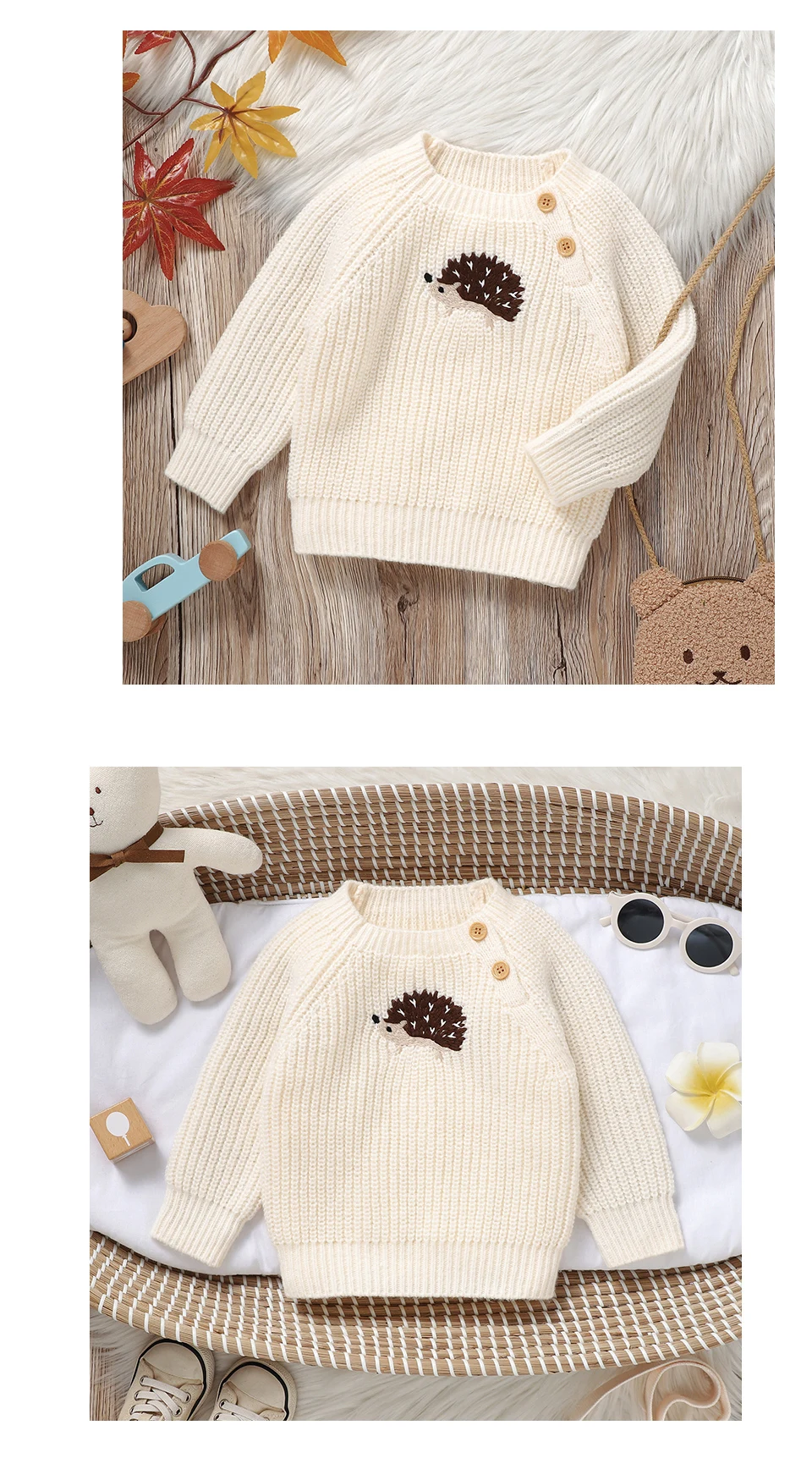 Suéter de punto para bebé recién nacido, jersey de invierno con cuello redondo y manga larga para niños y niñas, prendas de vestir informales, jersey para niños pequeños