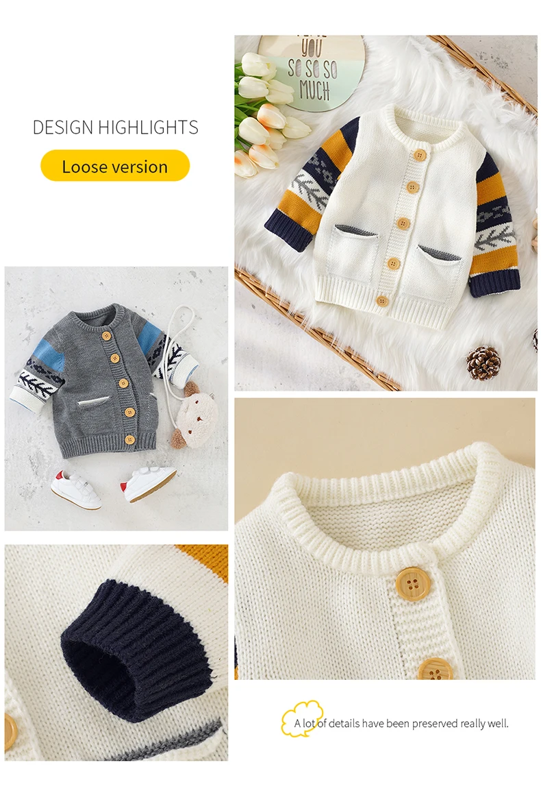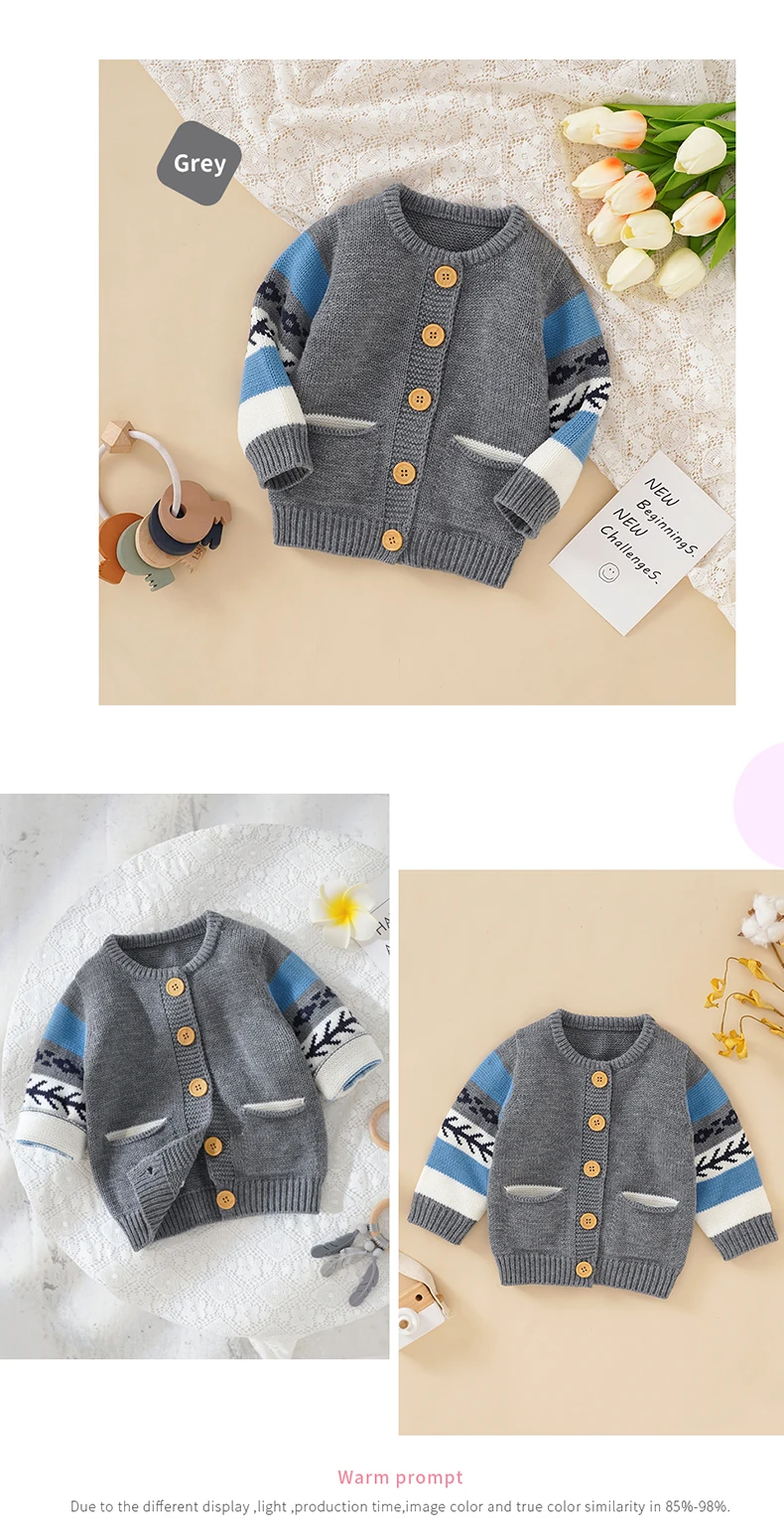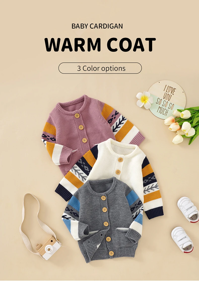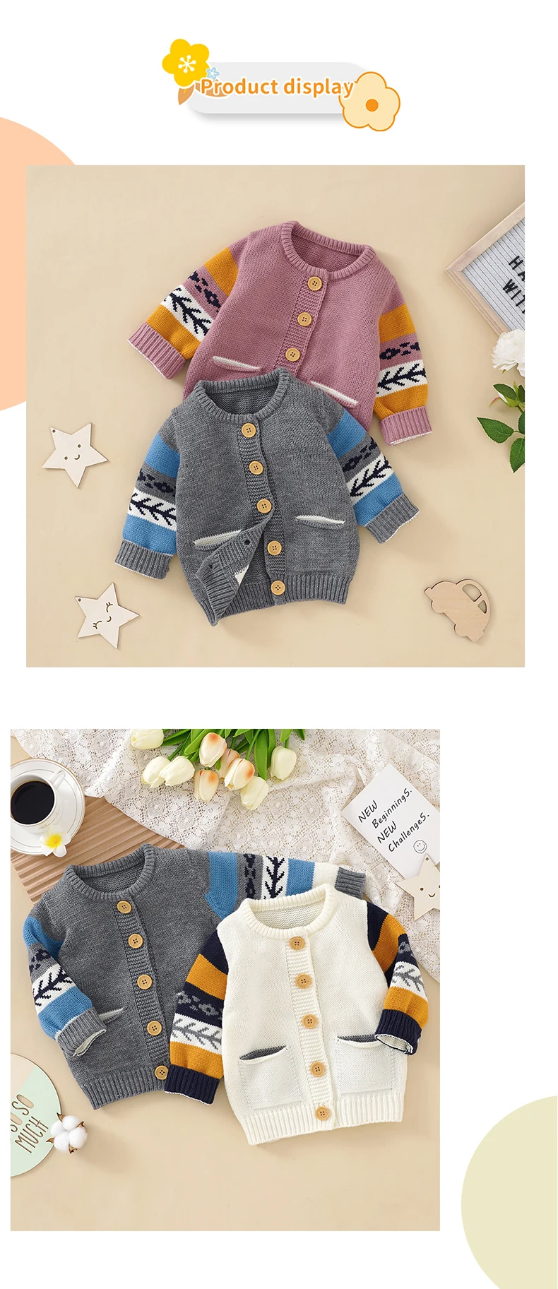 Suéter de punto para bebé recién nacido, ropa para niños pequeños de 0 a 18M, Tops, chaqueta a rayas a la moda, cárdigan de manga larga para niño y niña, otoño
