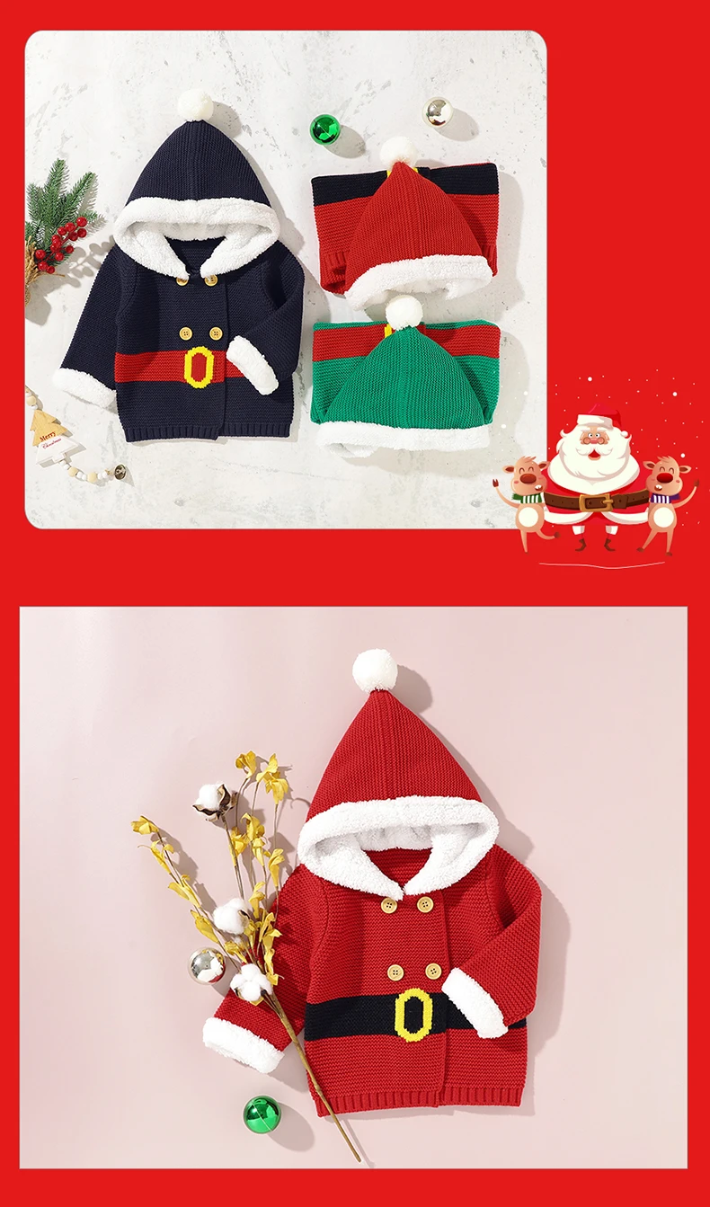Comprar Suéter de punto para bebé recién nacido, Tops con capucha, bonito Pompón, ropa de Navidad cálida de manga larga para invierno de 0 a 18M