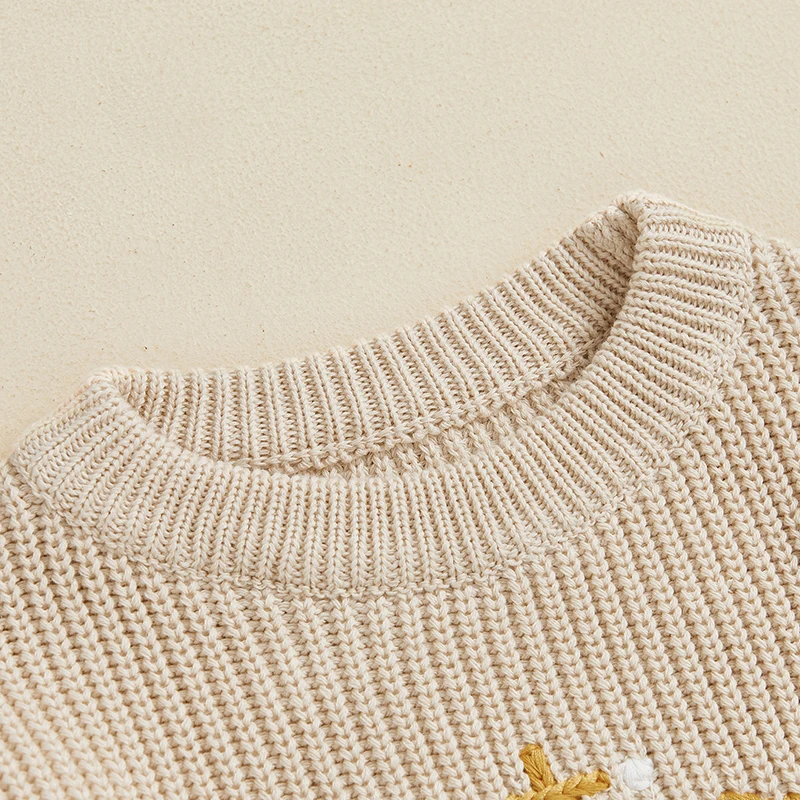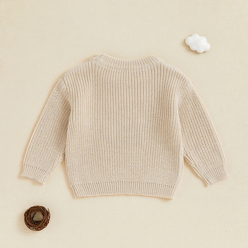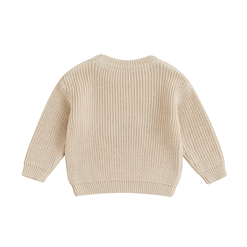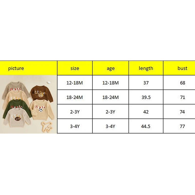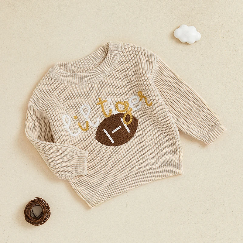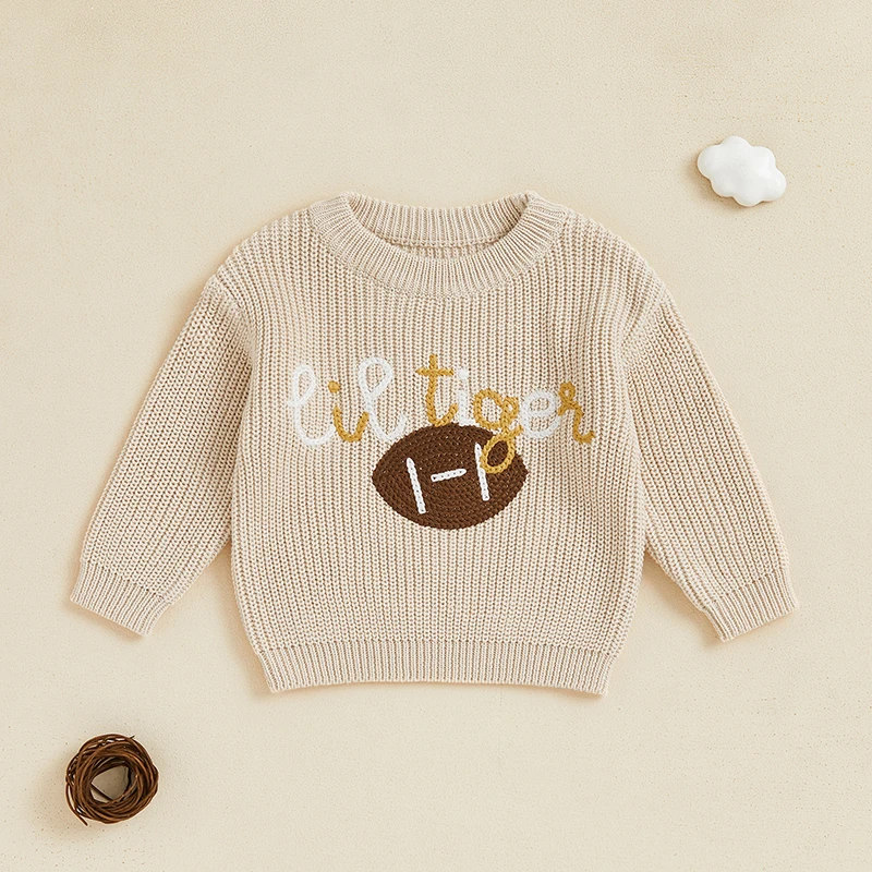 Suéter de otoño para niño y niña, suéter de punto de manga larga con bordado de fútbol/rugby y cuello redondo