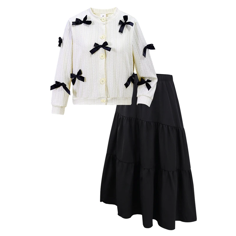 Comprar Suéter de punto para niña, abrigo con falda, suéter cálido para niño, vestido informal de princesa de Color puro
