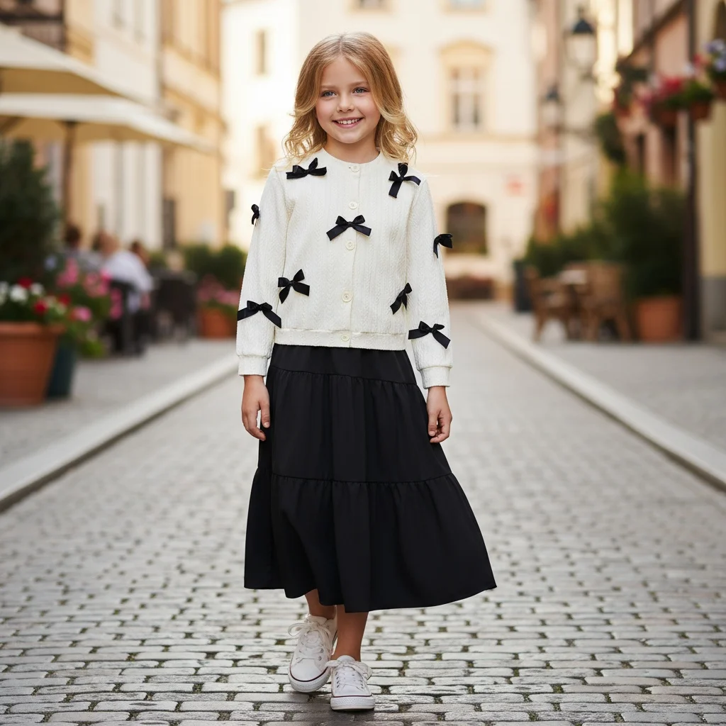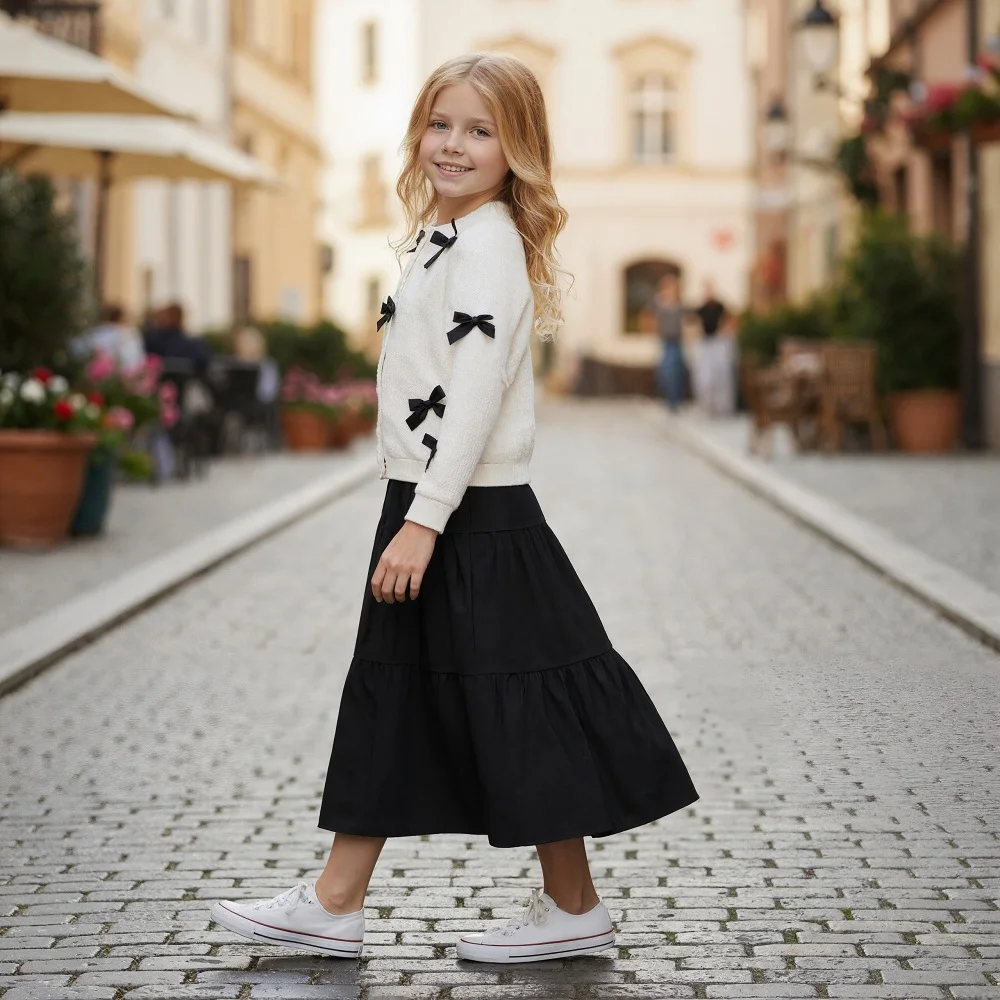 Comprar Suéter de punto para niña, abrigo con falda, suéter cálido para niño, vestido informal de princesa de Color puro