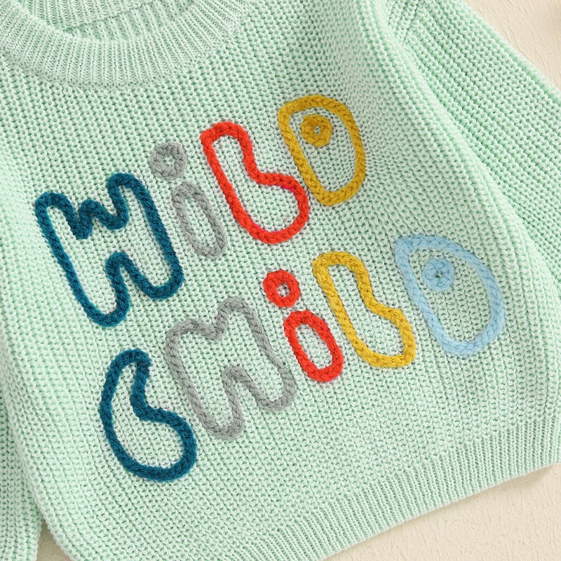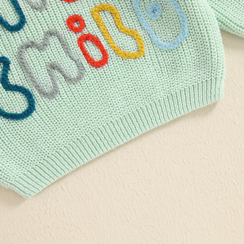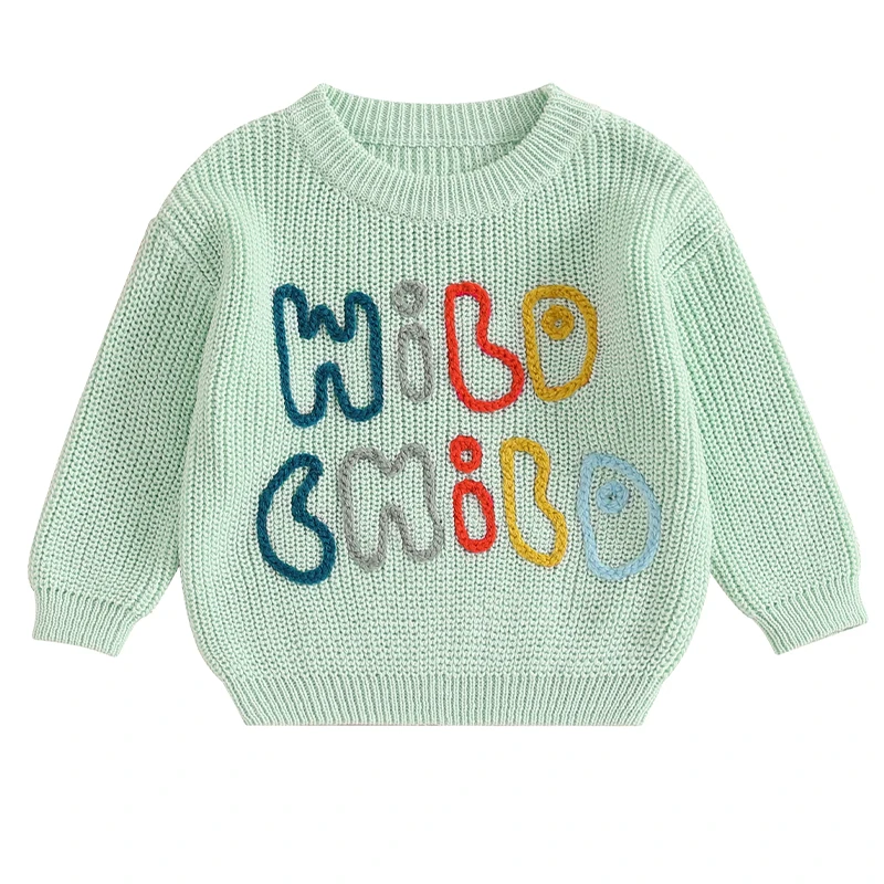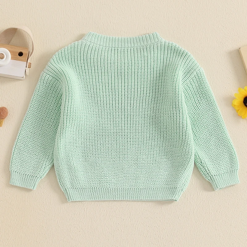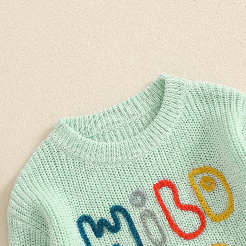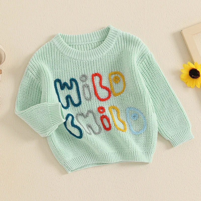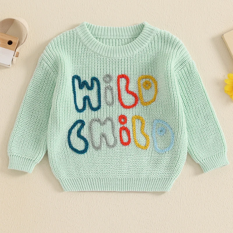 Comprar Suéter de punto de otoño para bebés y niños de 0 a 3 años, jersey de manga larga con cuello redondo y Bordado de letras, Tops de punto