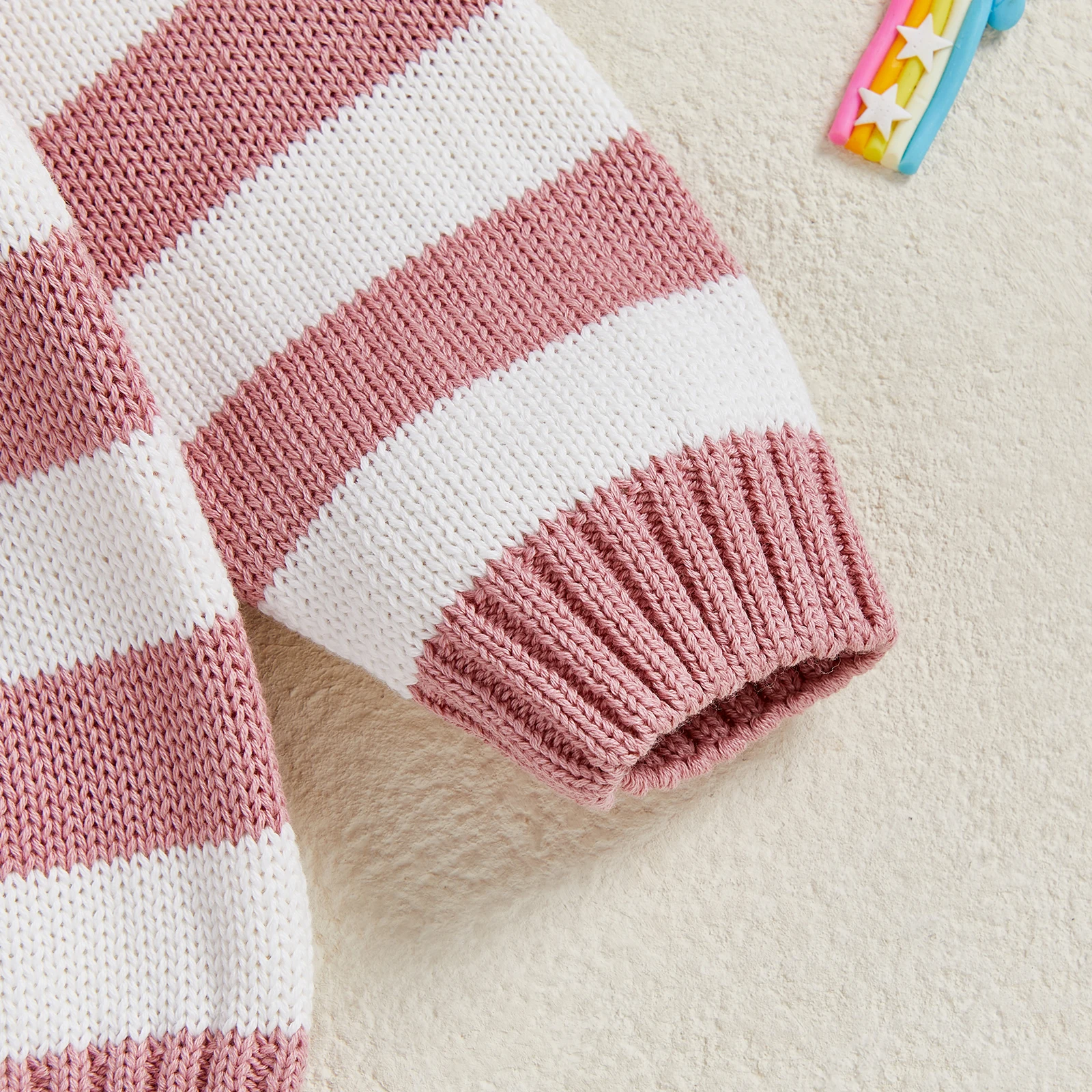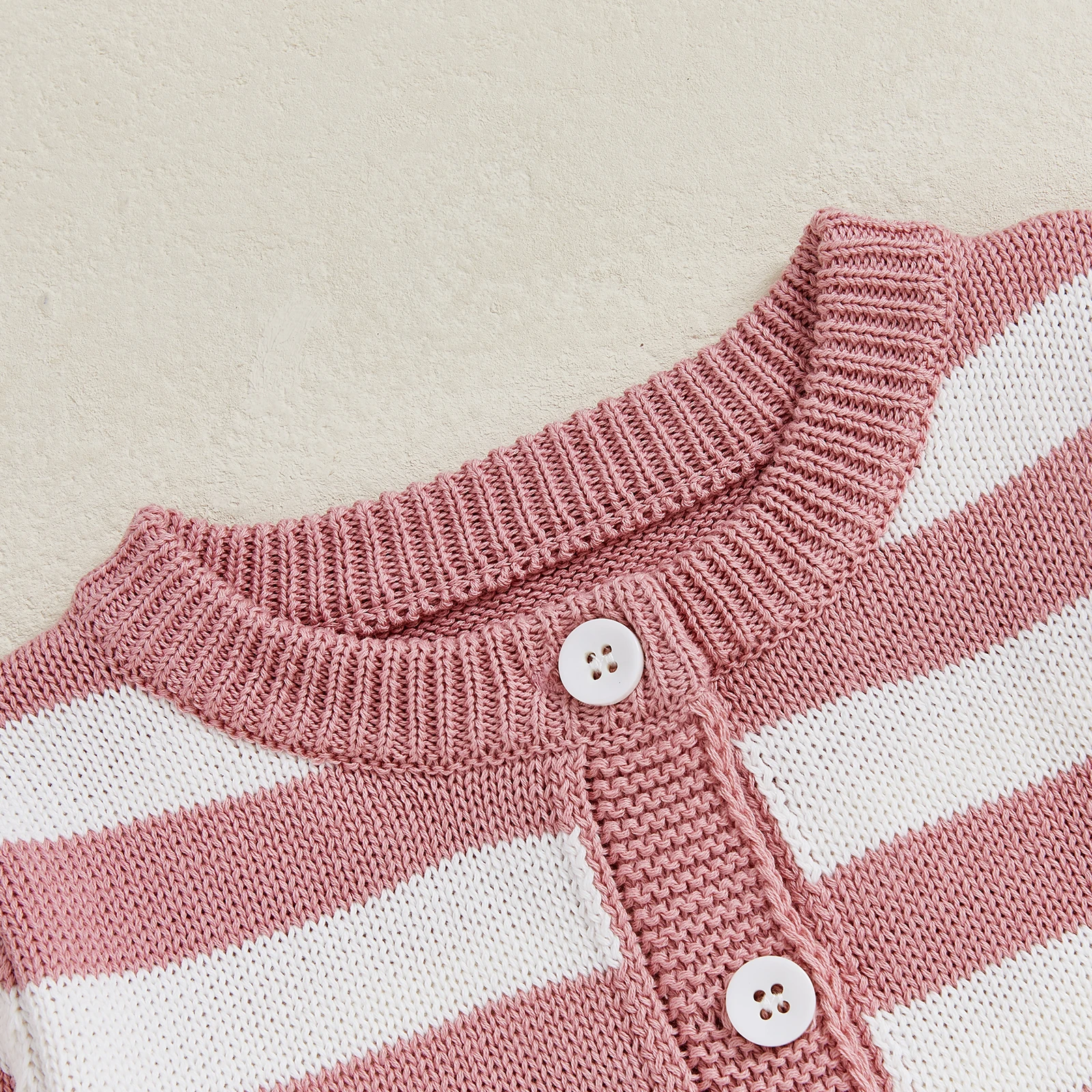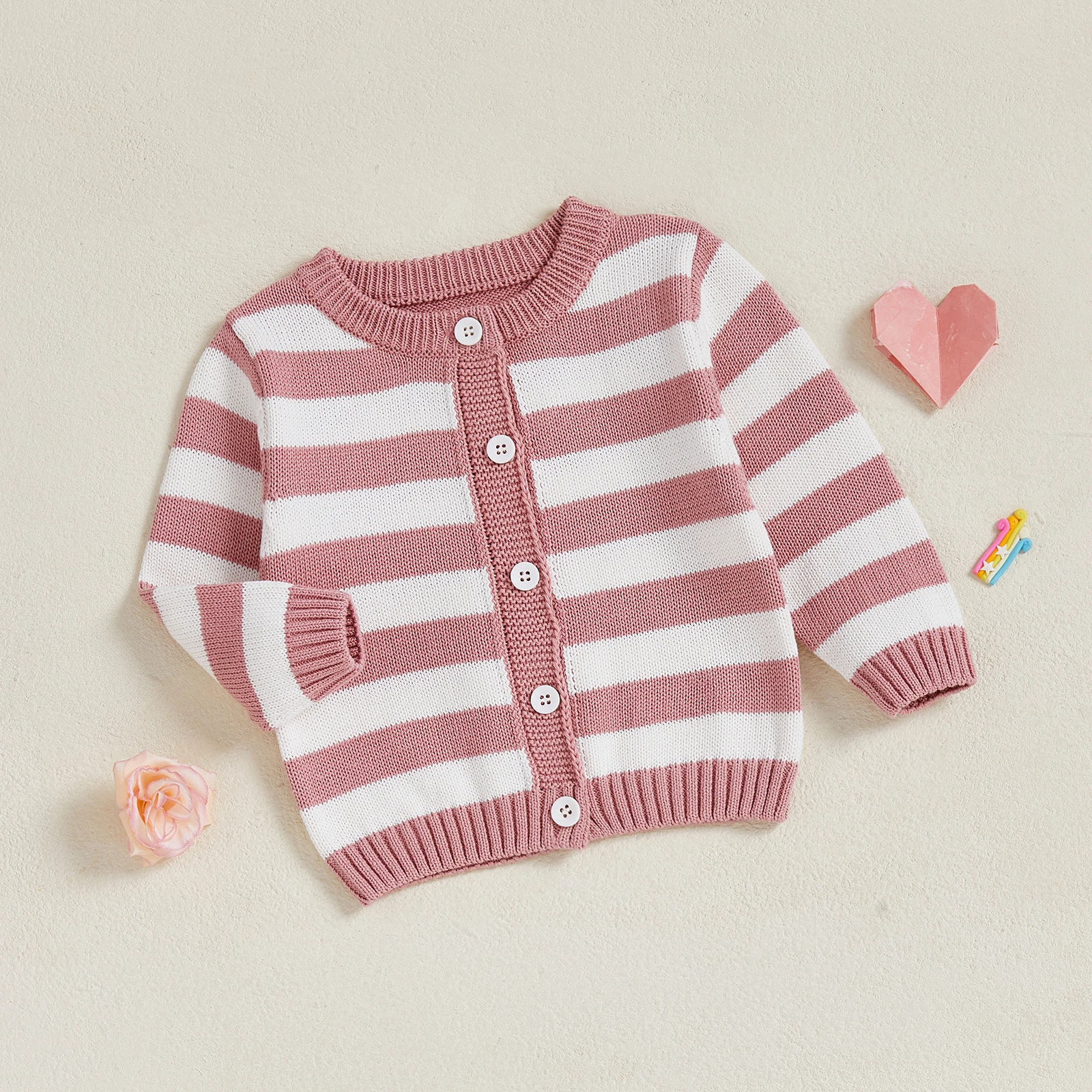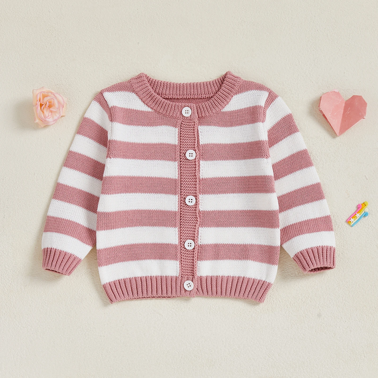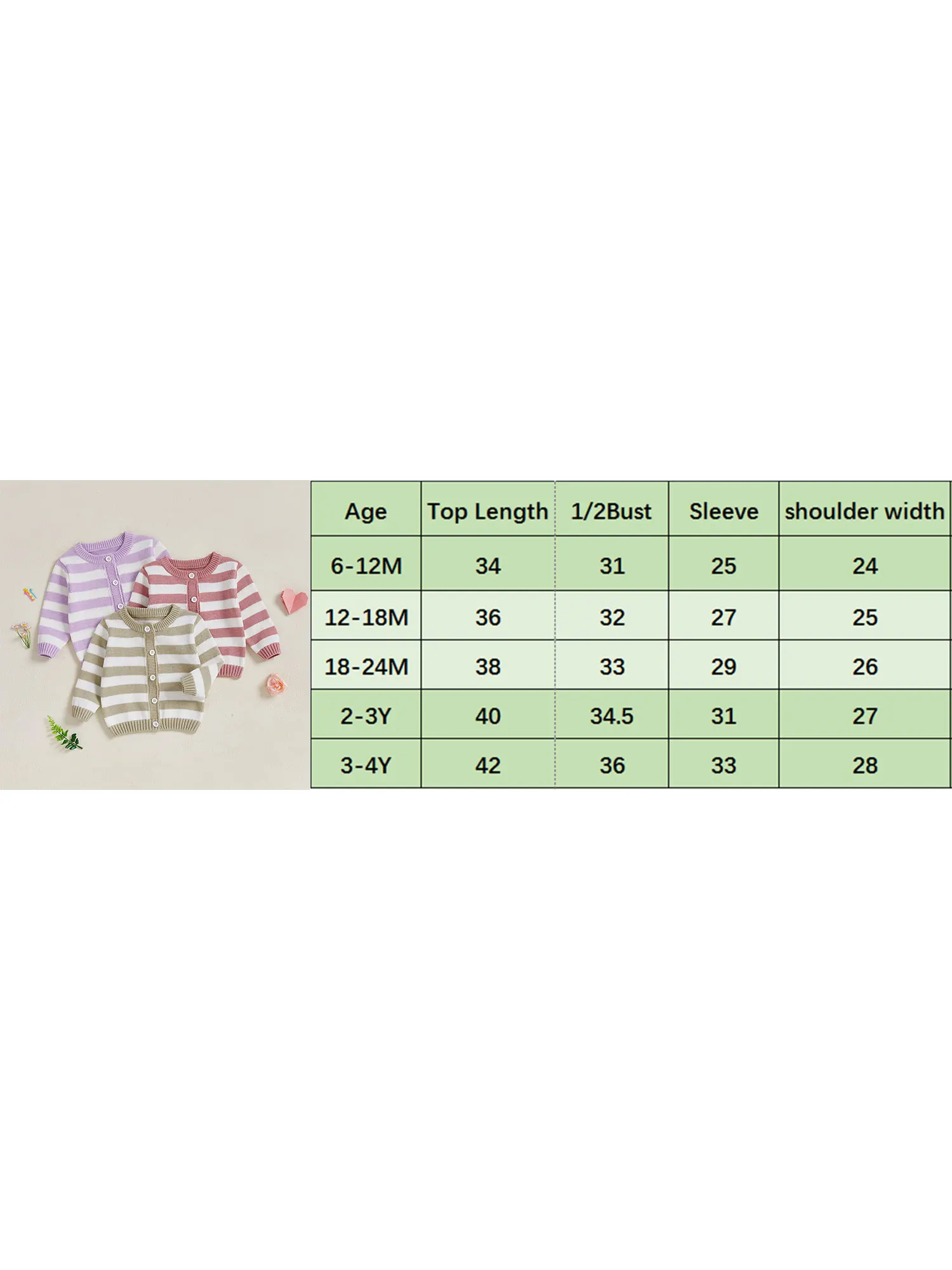Comprar Suéter de punto de otoño para niñas, cárdigan de manga larga con cuello redondo y botones, prendas de punto a rayas