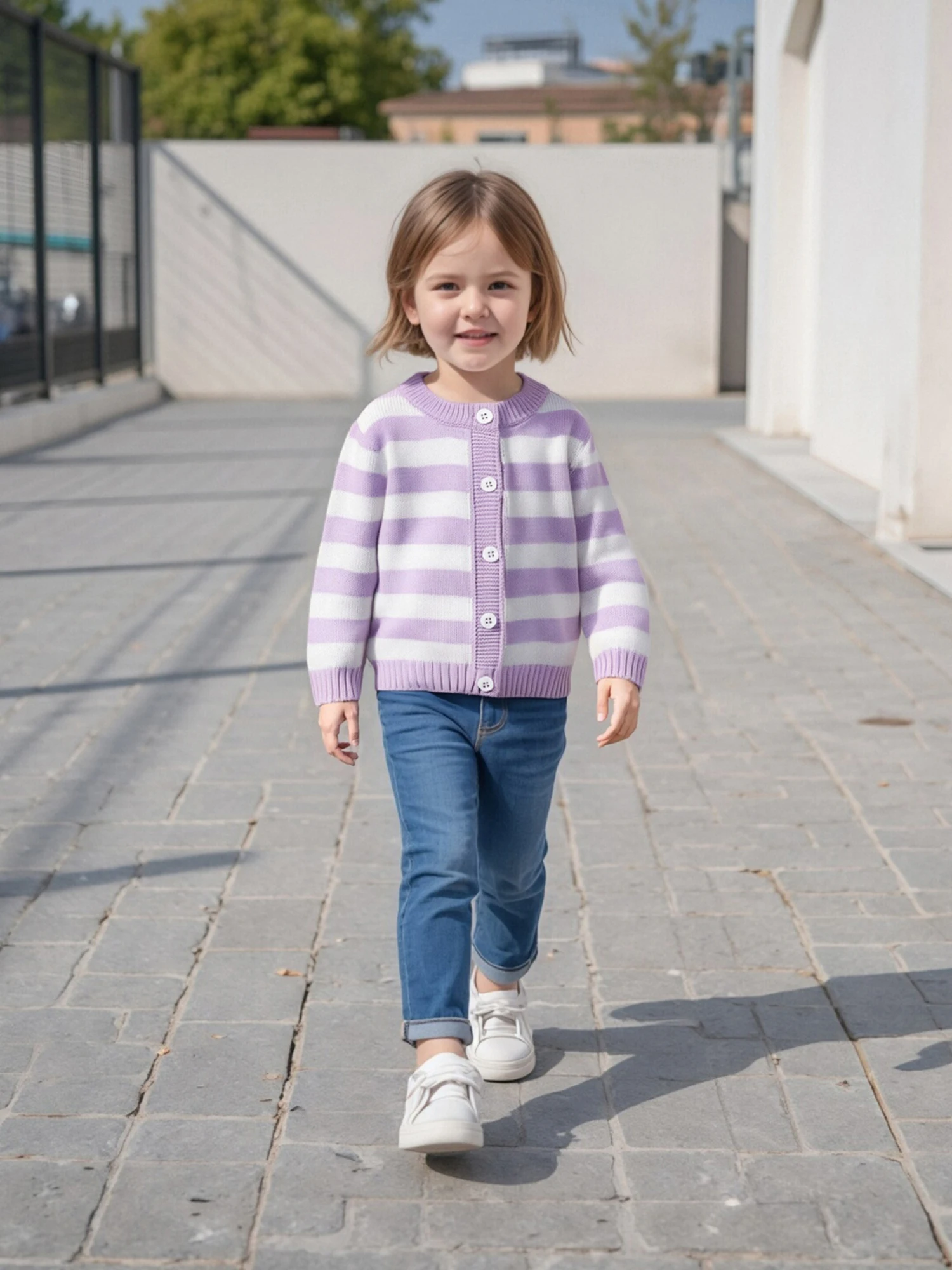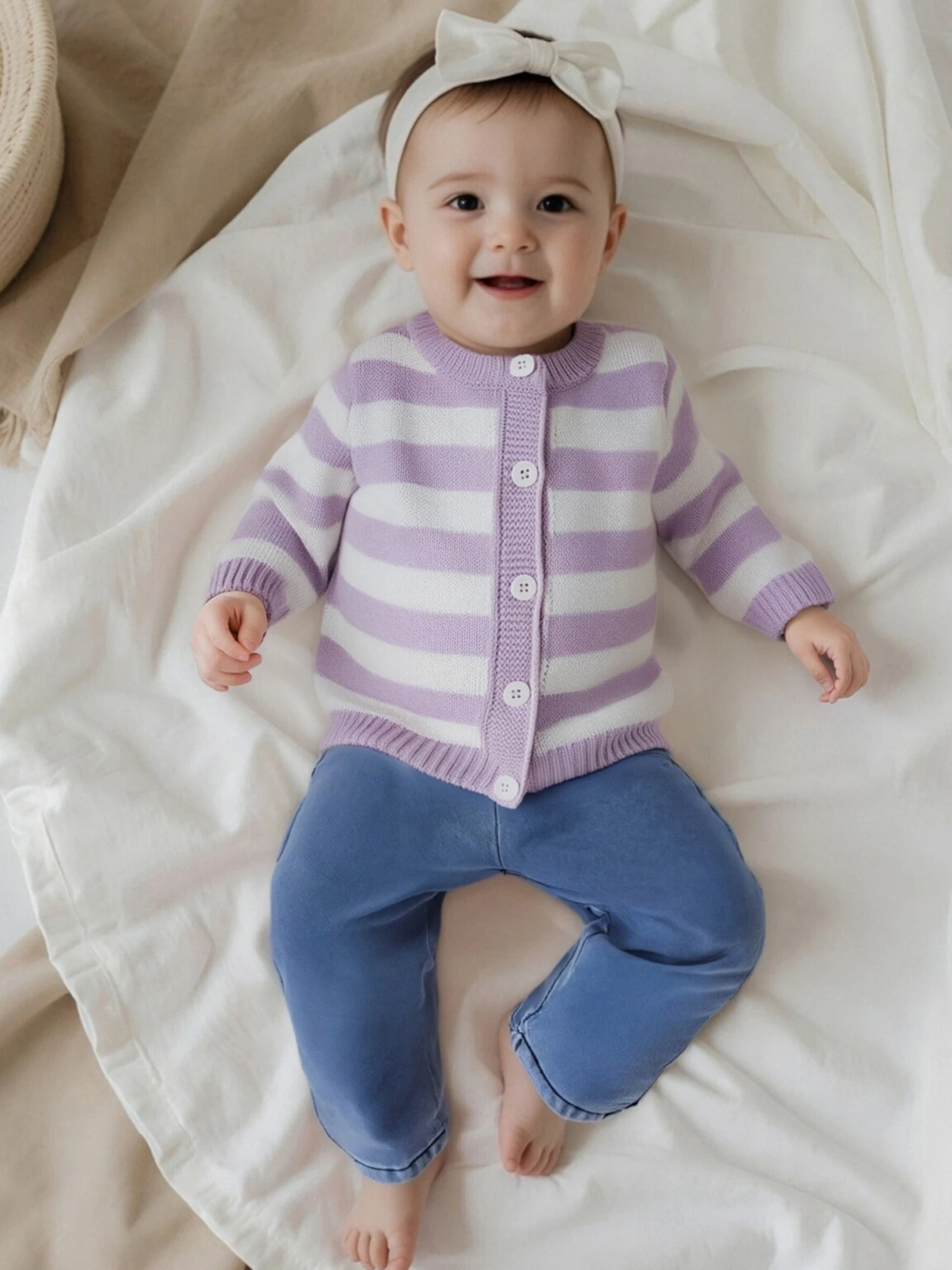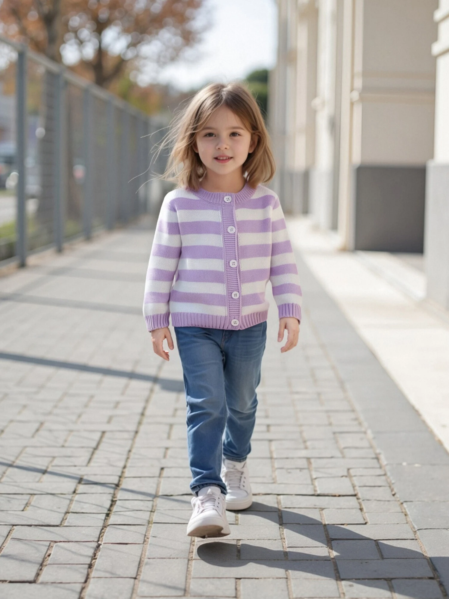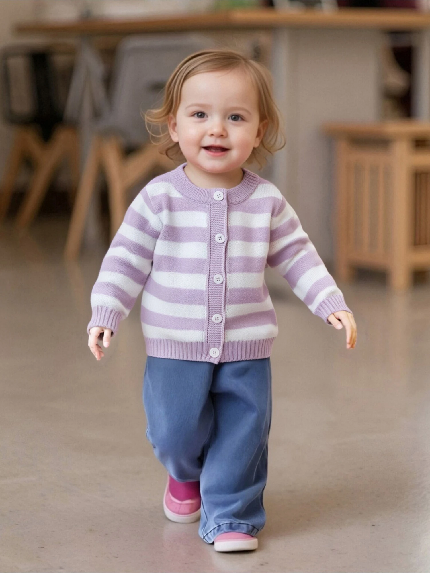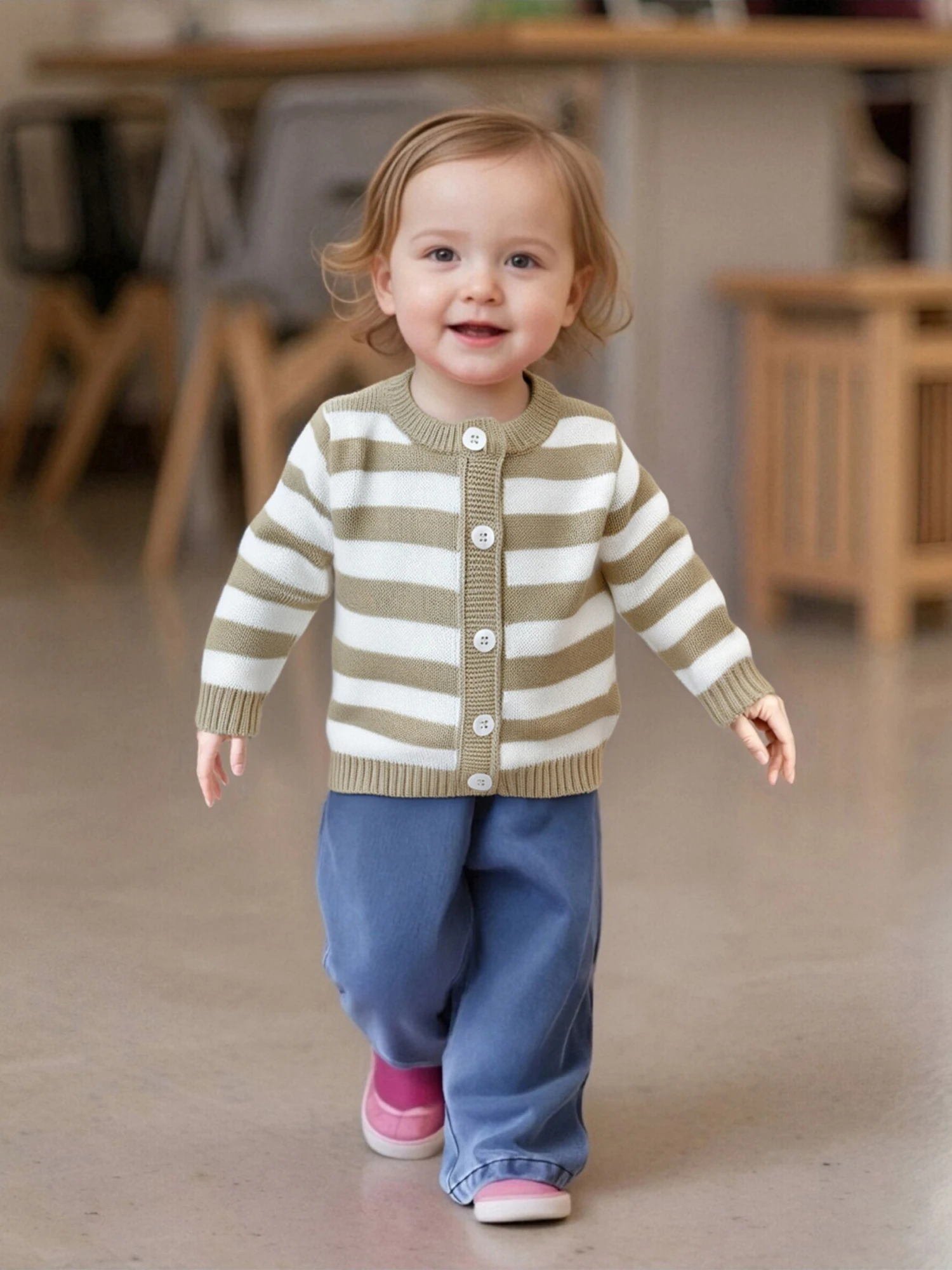 Comprar Suéter de punto de otoño para niñas, cárdigan de manga larga con cuello redondo y botones, prendas de punto a rayas