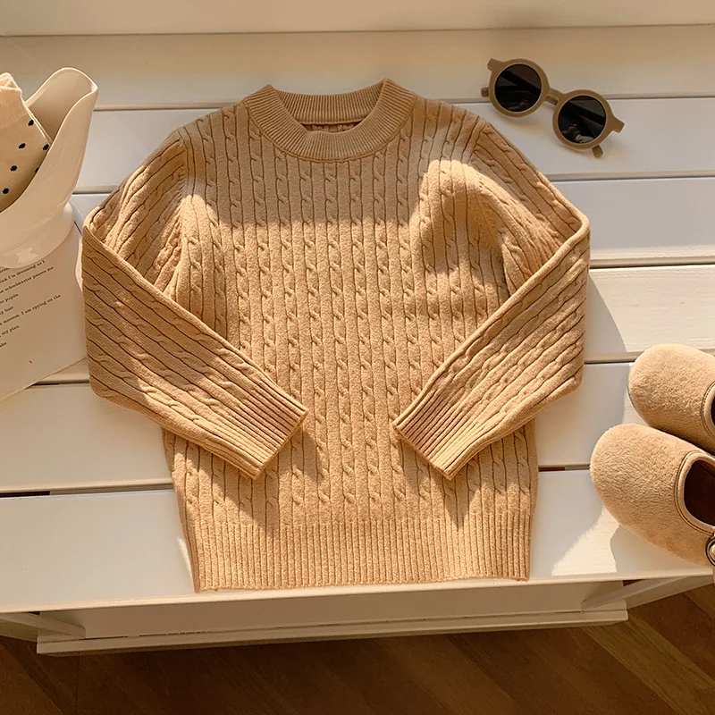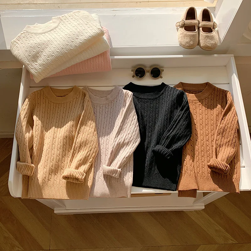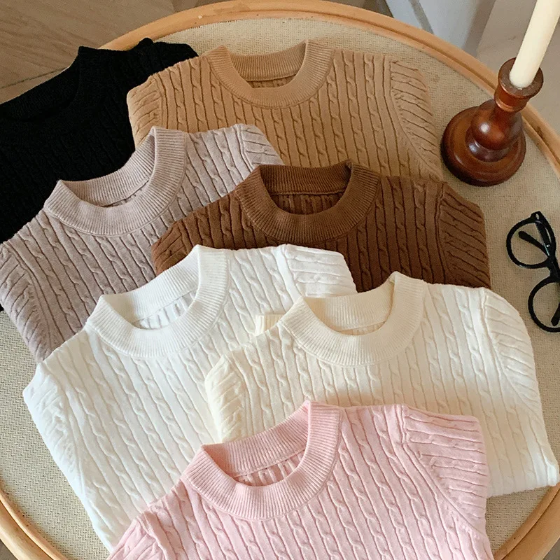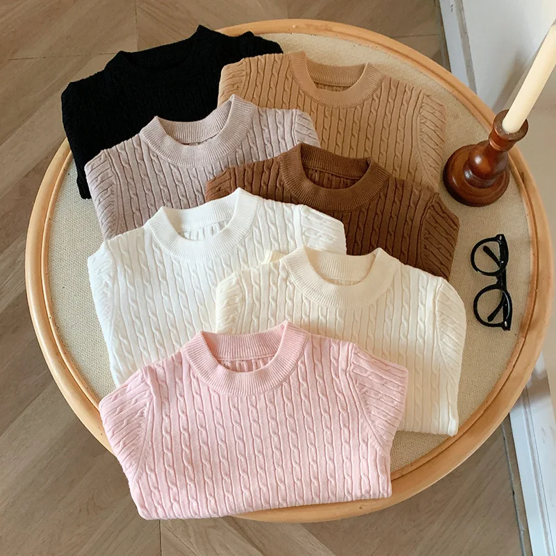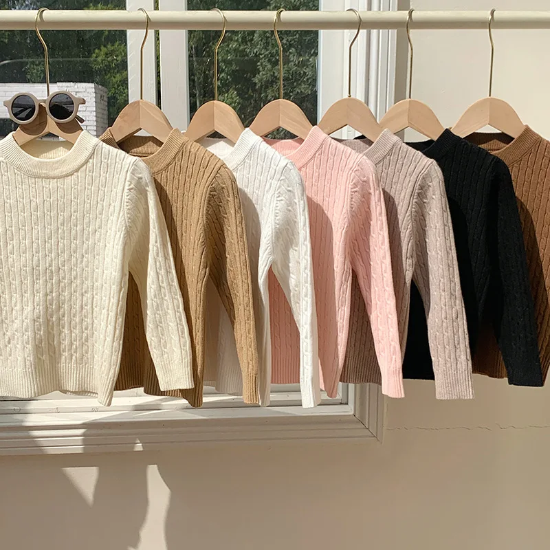 Suéter suelto de punto para niños, camisa Base de manga larga torcida, nuevo estilo de otoño, ropa interior de moda, Top con cuello tipo Polo para invierno