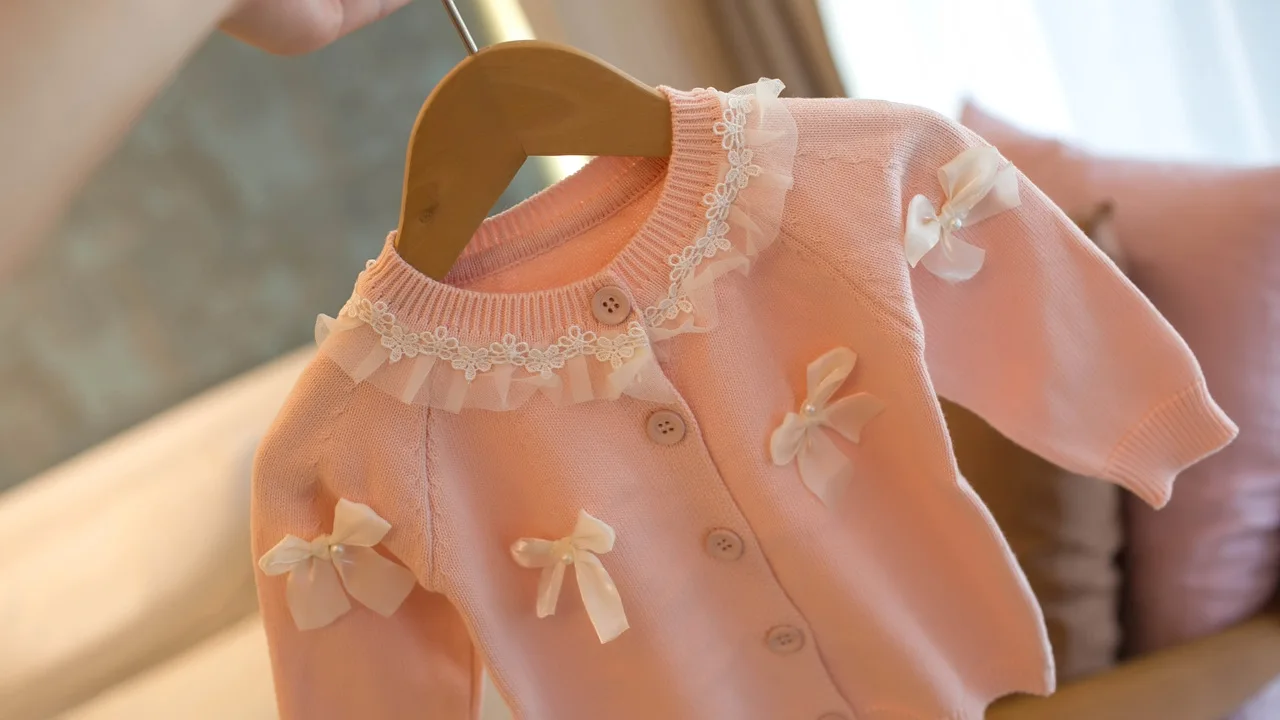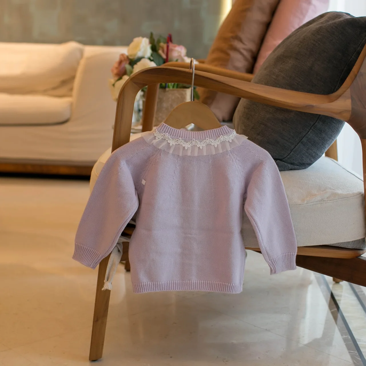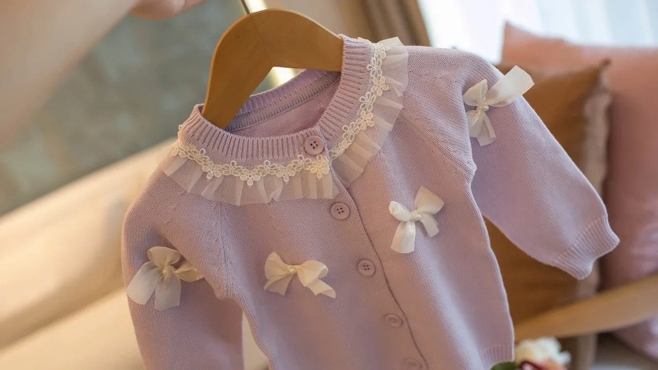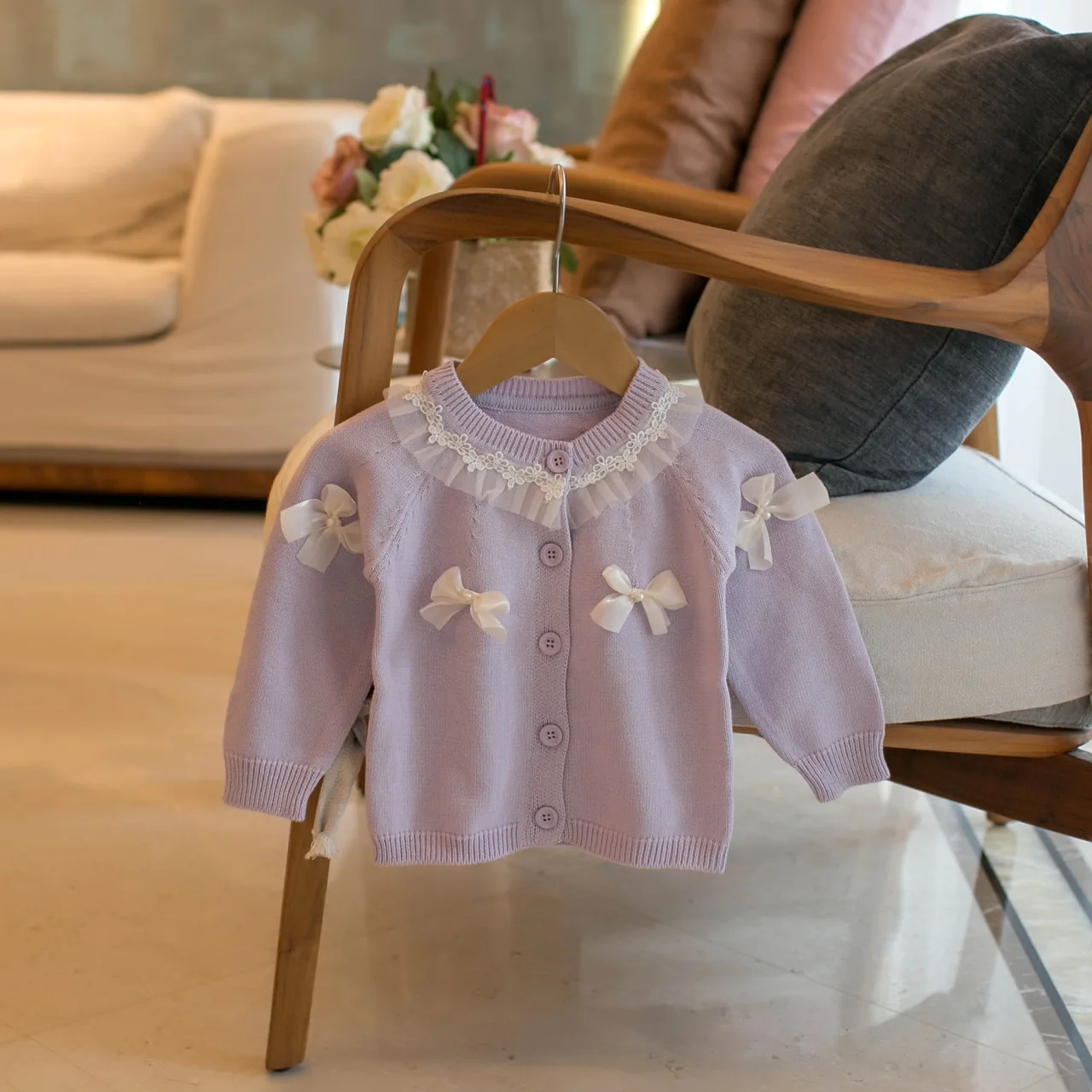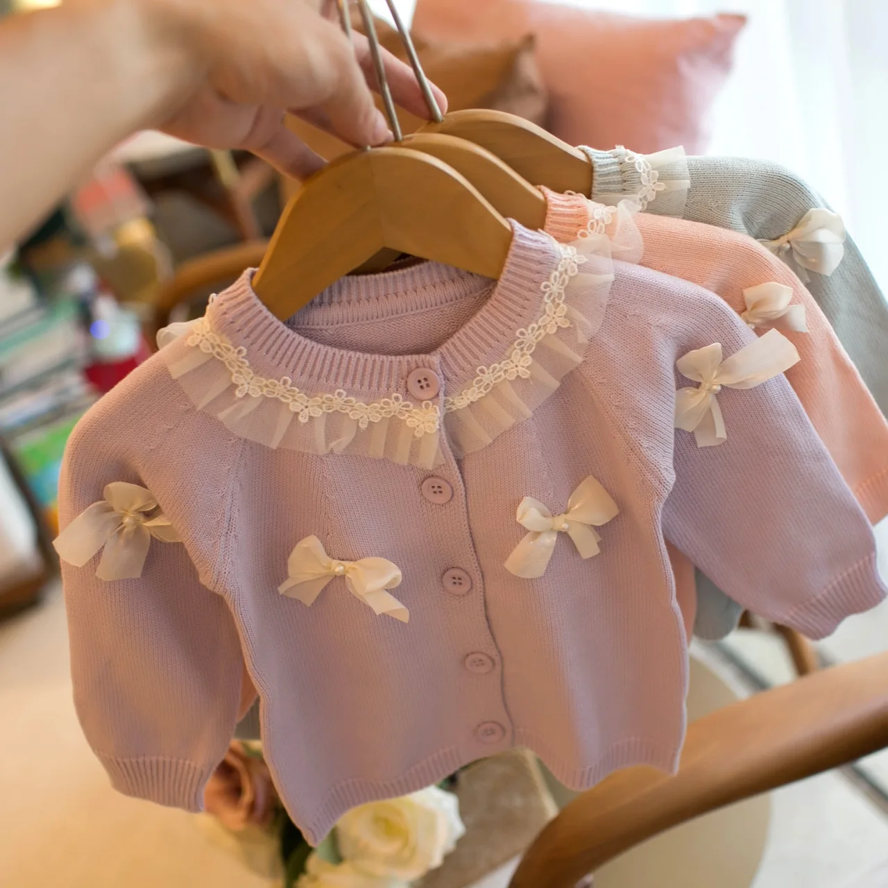 Suéteres para niños, cárdigans de punto calados para niñas, suéteres con volantes para niñas, traje de punto para chicas de moda