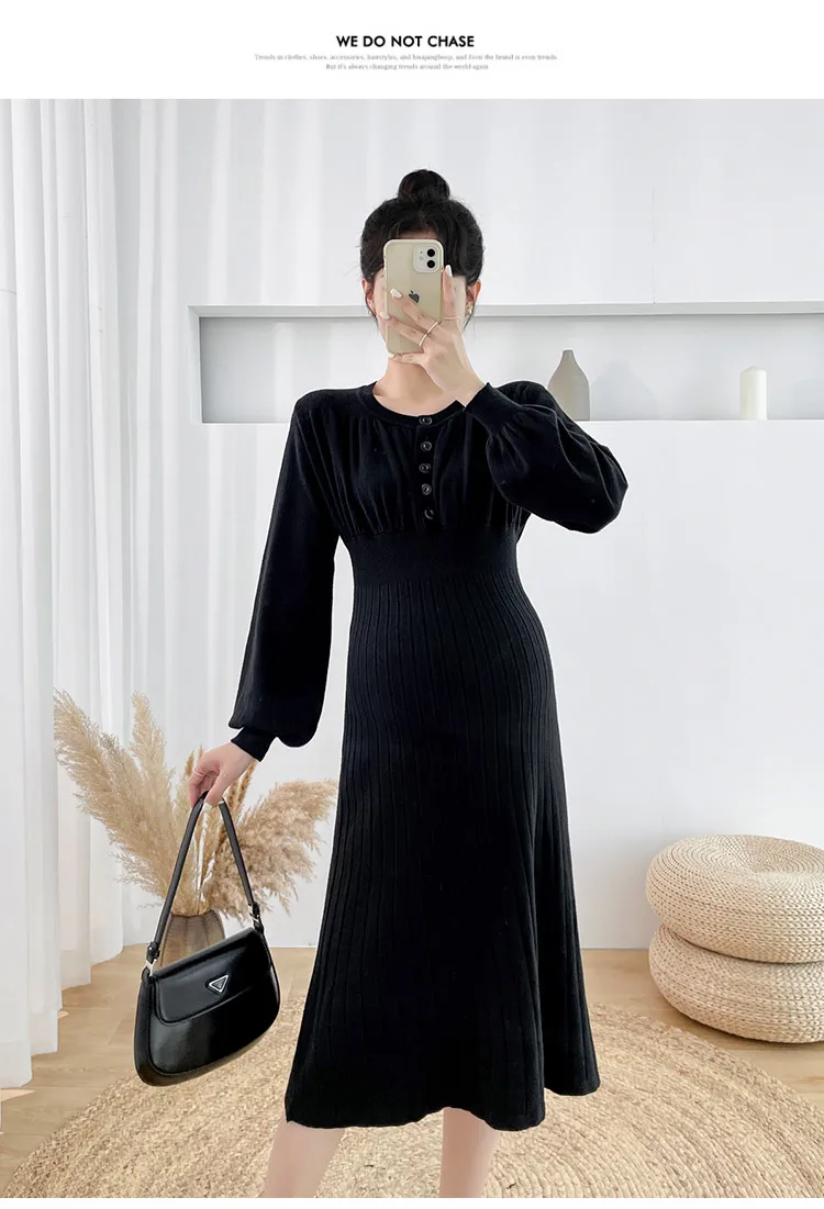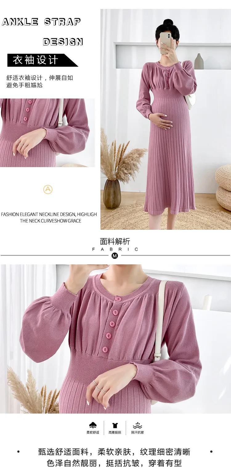 Comprar Suéteres de punto de moda coreana para mujeres embarazadas, de una línea vestido elegante, ropa de embarazo, otoño e invierno, #1001