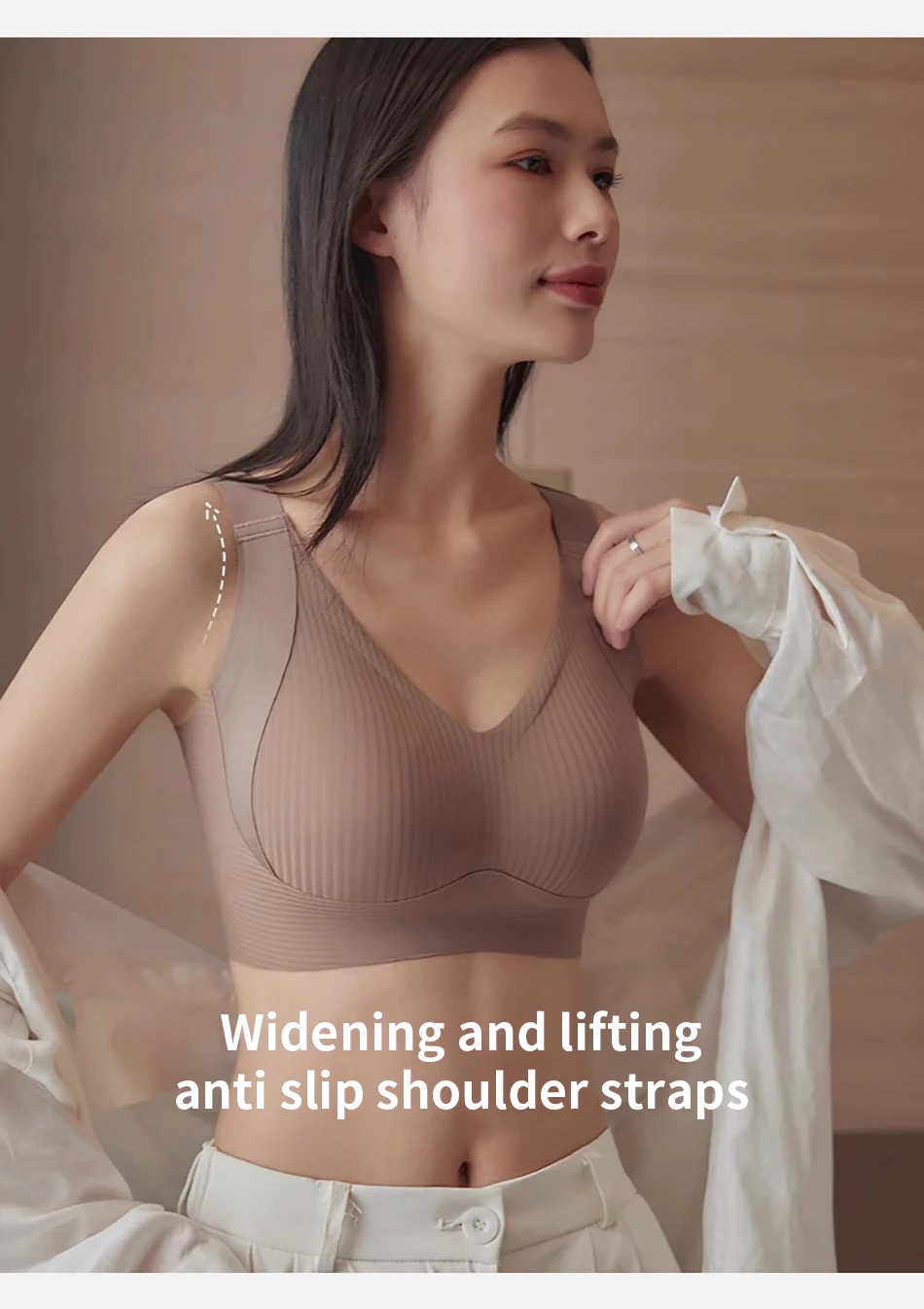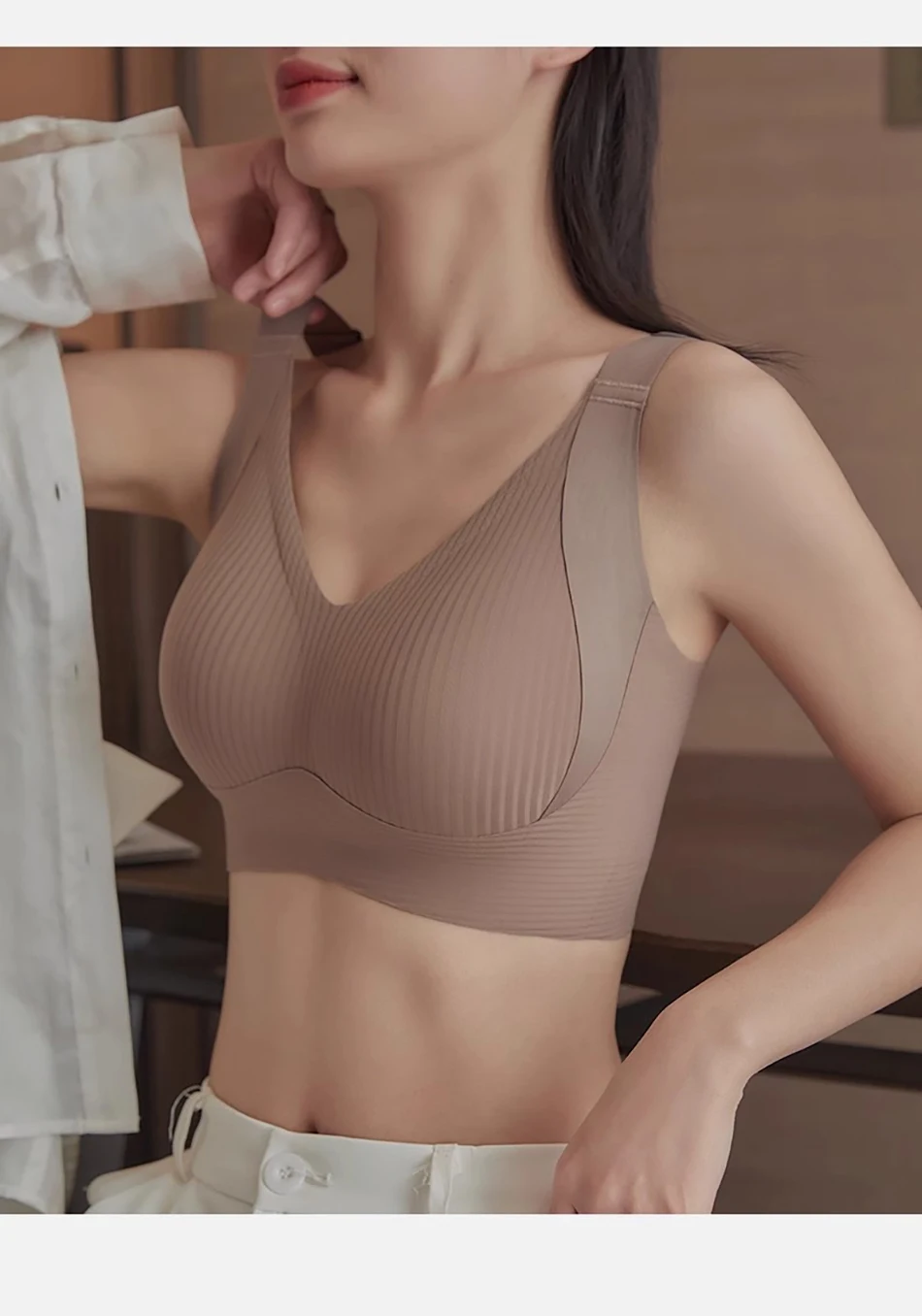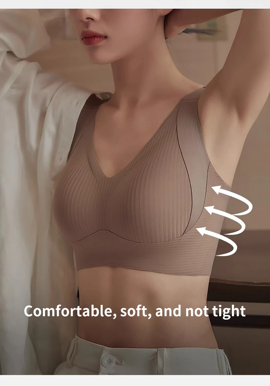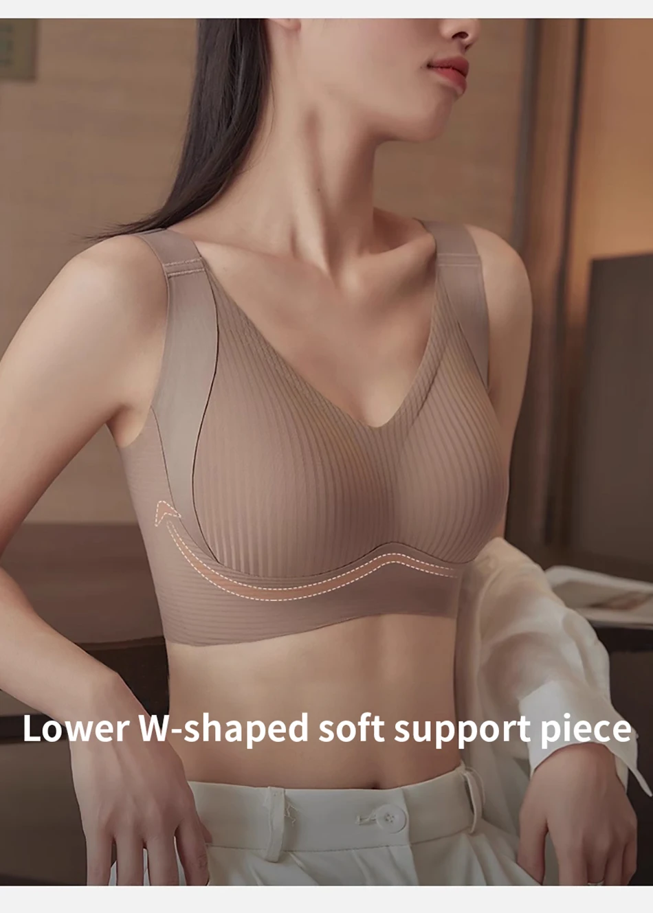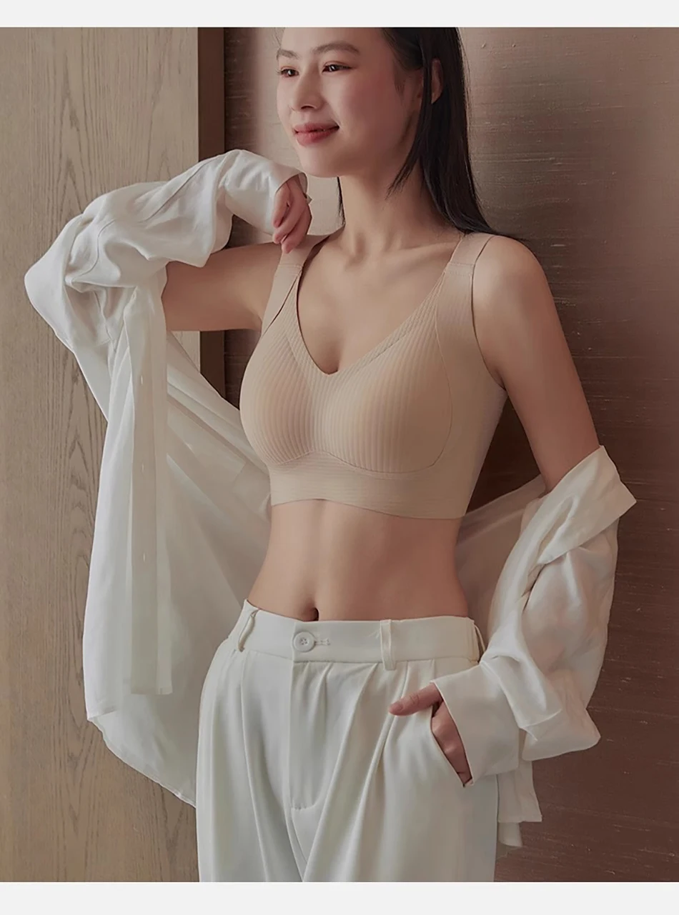 Nombre: Ropa diaria para mujer Copa completa de alto soporte Sin rastro Sujetador con aros de color sólido Bustos grandes Ropa de maternidad Bralette cómodo