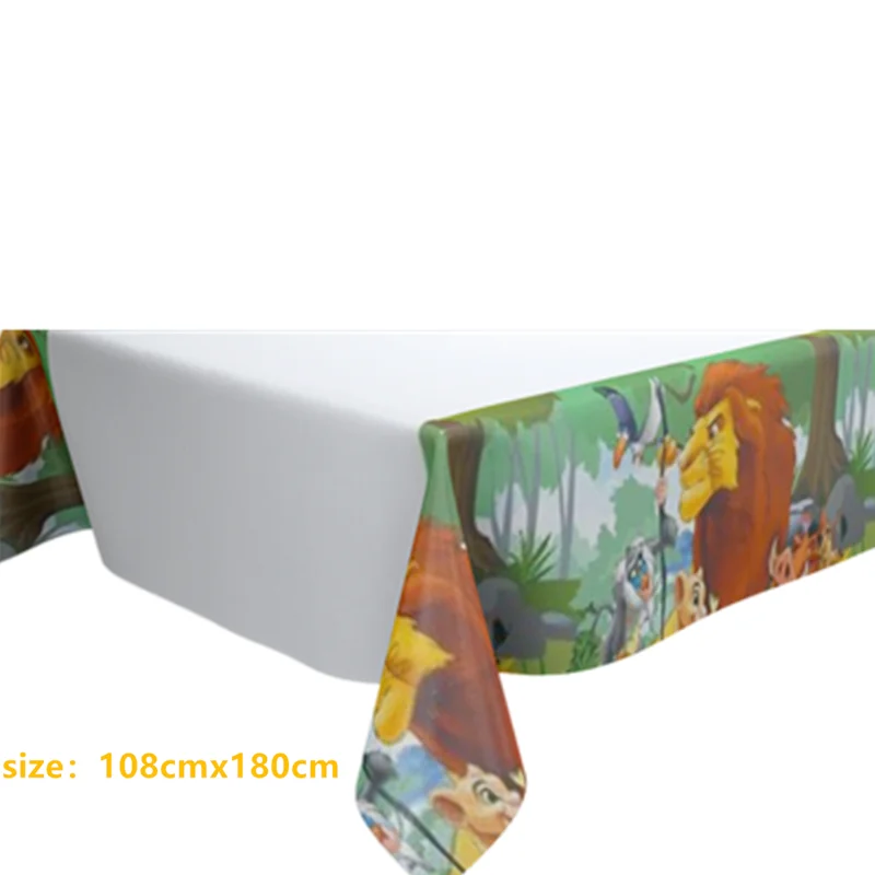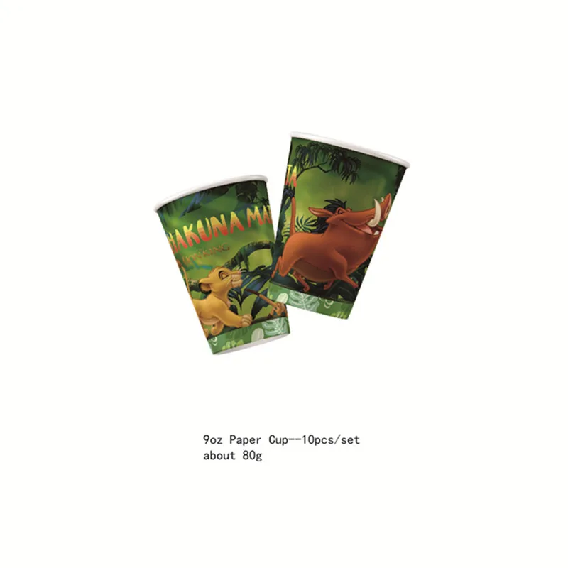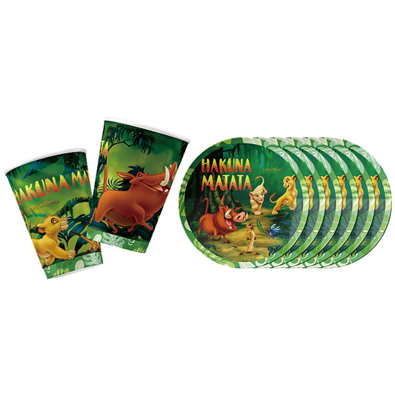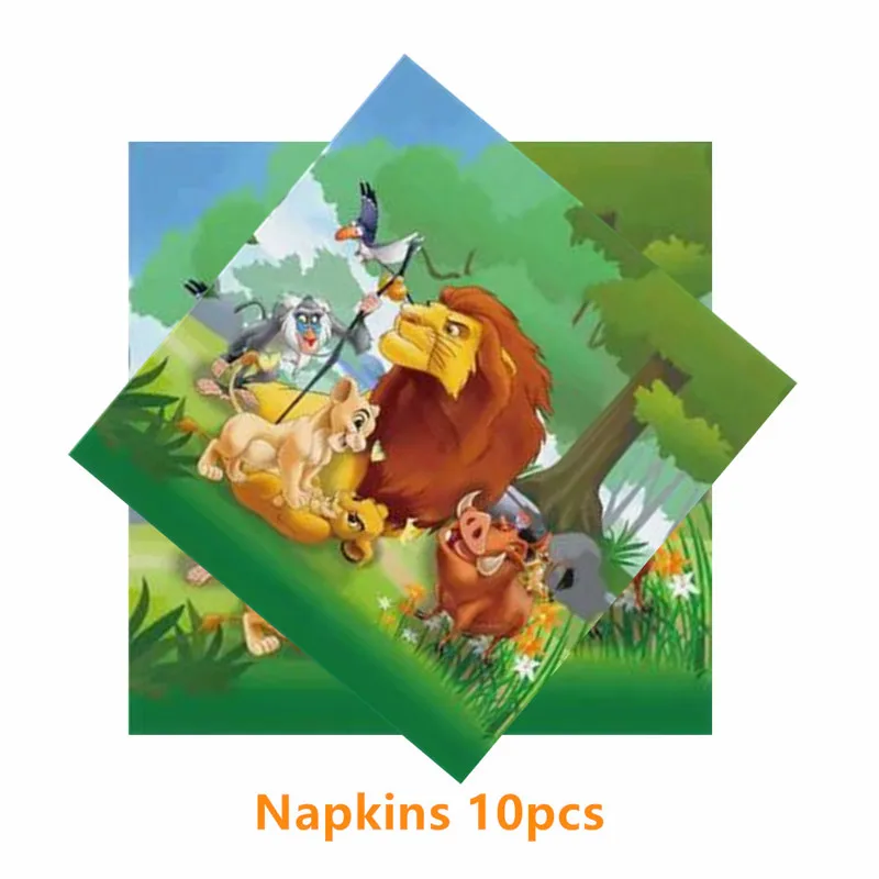 Comprar Suministros de decoración de fiesta de cumpleaños con temática del Rey León, platos, taza, bandera, servilletas, vajilla desechable, juego de suministros, juguetes para niños, regalos