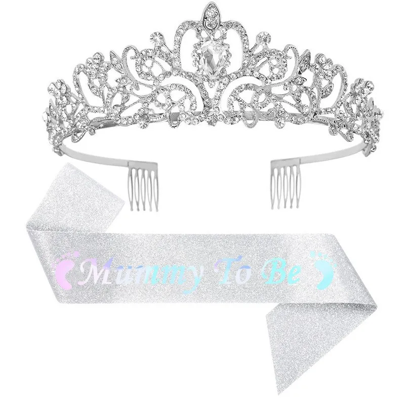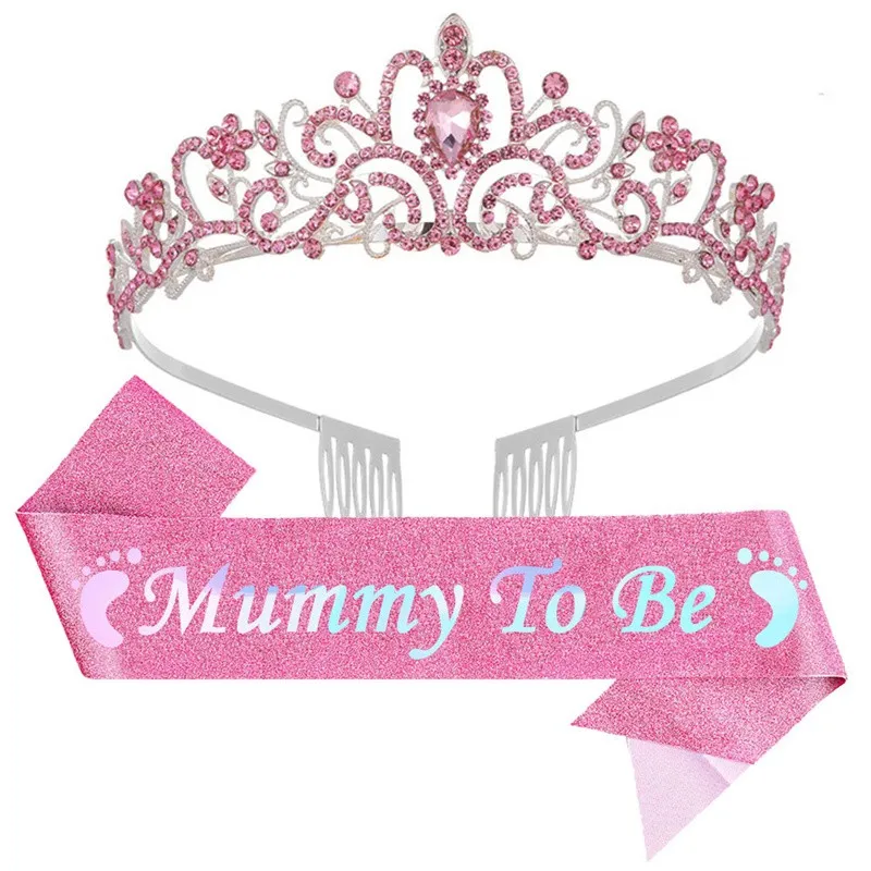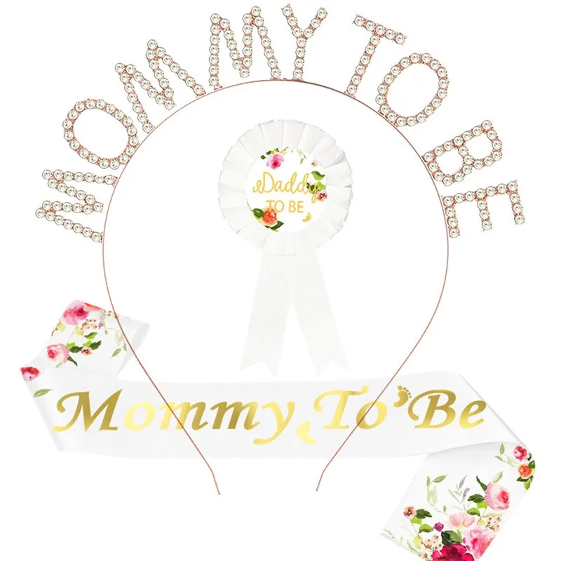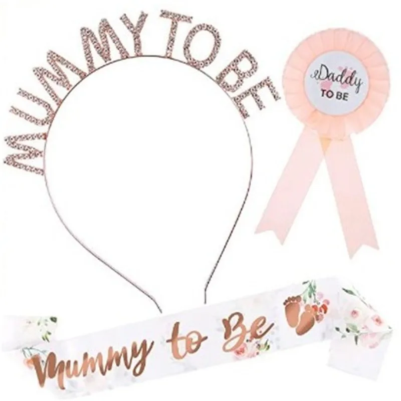 Suministros para fiesta de Baby Shower, insignia de mamá para ser papá, diadema y faja para hombro, decoraciones para fiesta de revelación de género, 2/3 Uds.