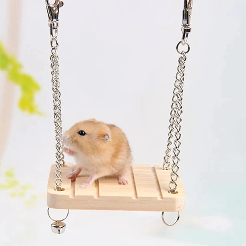 Comprar Suministros de juguetes de hámster, Columpio de madera, hamaca de campana, estación de loro para mascotas pequeñas, puente colgante suspendido