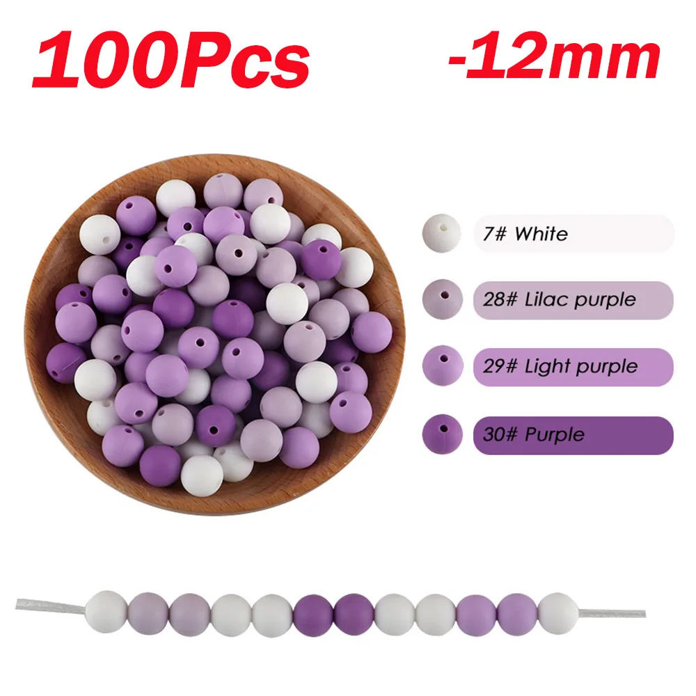 Sunrony 100 Uds cuentas redondas de silicona de 12mm para hacer joyería a granel DIY chupete de bebé cadena pulsera collar accesorios de joyería