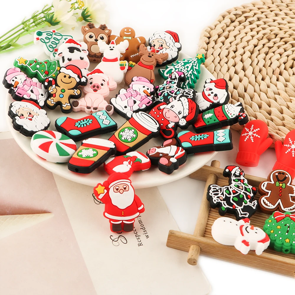 Kovict 1 Juego de cuentas de sílice de animales de dibujos animados de estilo navideño para DIY llavero pluma collar pulsera accesorios de joyería