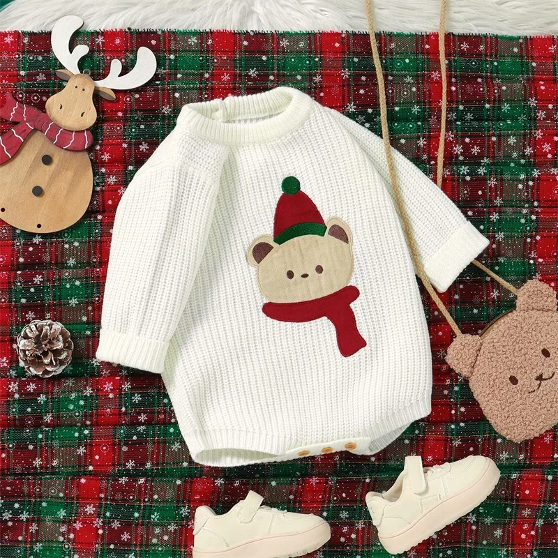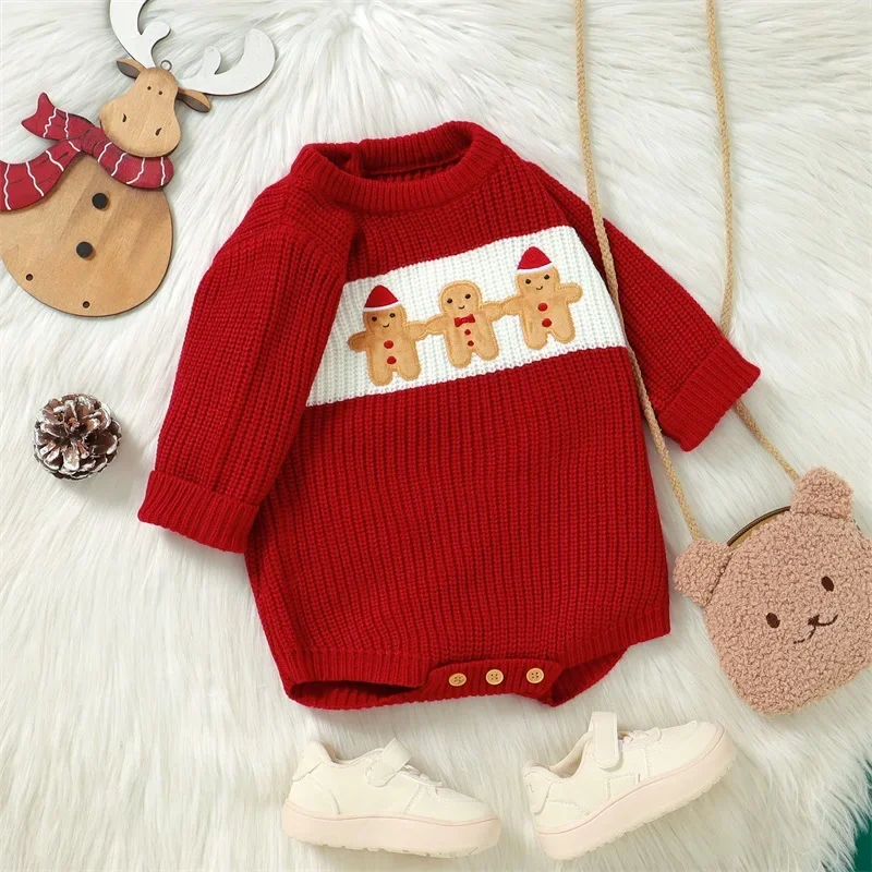 Especificación: Edad recomendada: 1-3 meses, 3-6 meses, 6-9 meses, 9-12 meses, 12-18 meses Materiales: 100% acrílico Patrón: bordado de Papá Noel/bordado de muñeco de nieve/bordado de hombre de jengibre Color: verde/rojo/blanco/multicolor Género: Unisex
