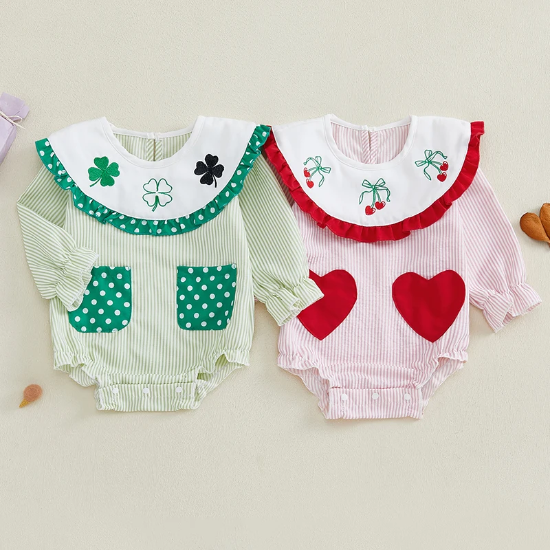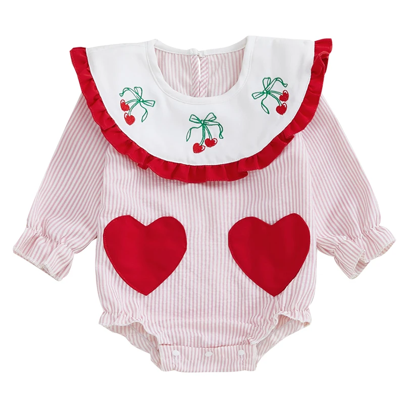 Mameluco de burbujas para niña, mono con estampado de rayas y cuello de muñeca de manga larga, ropa para recién nacido