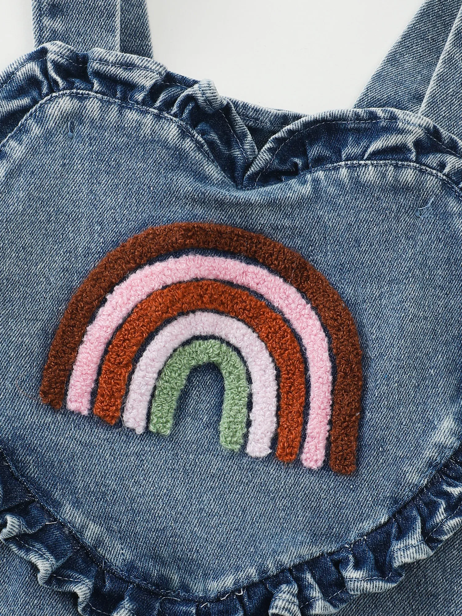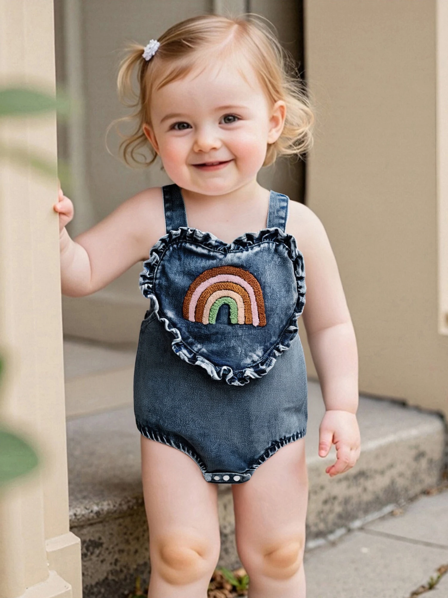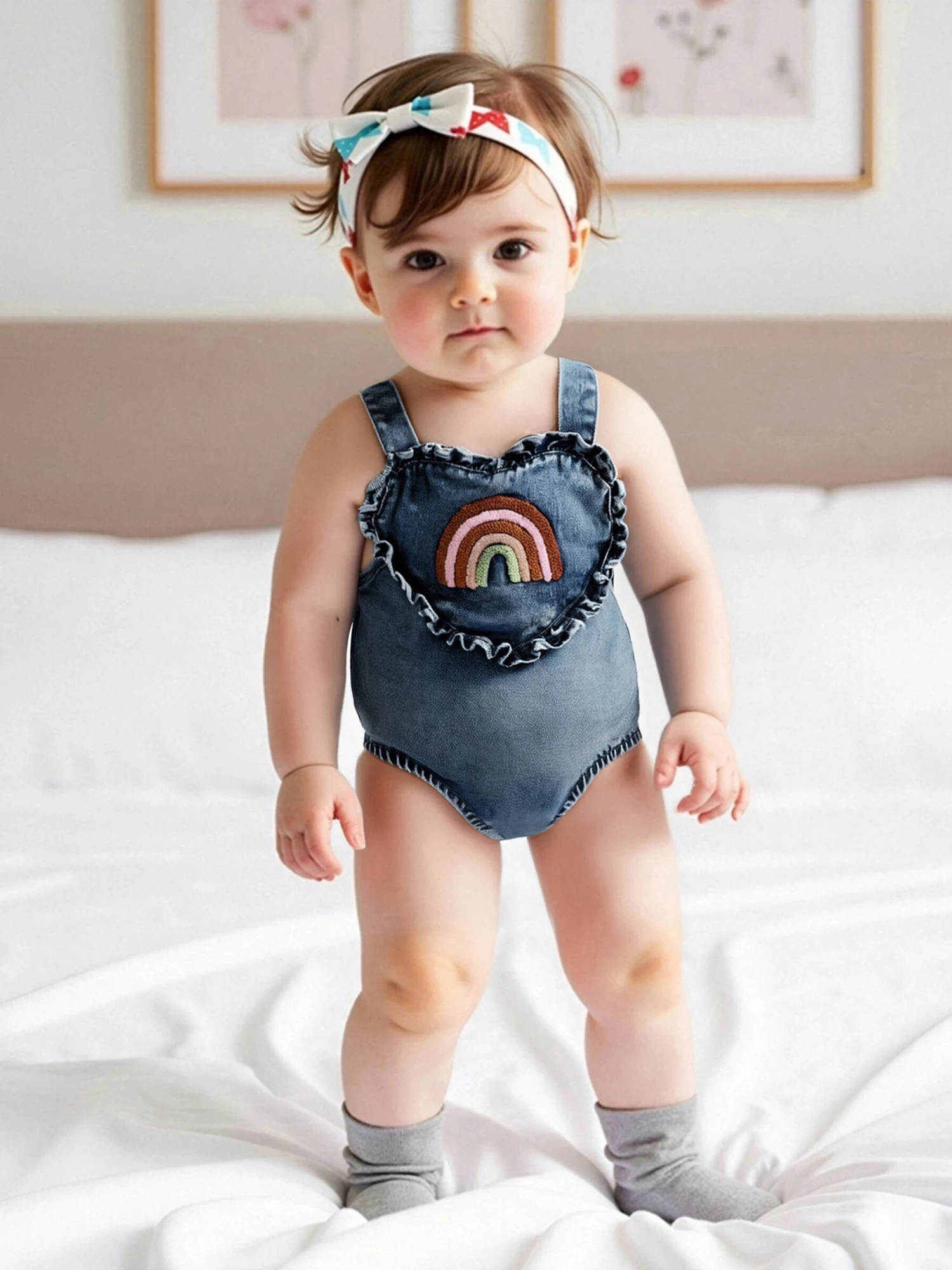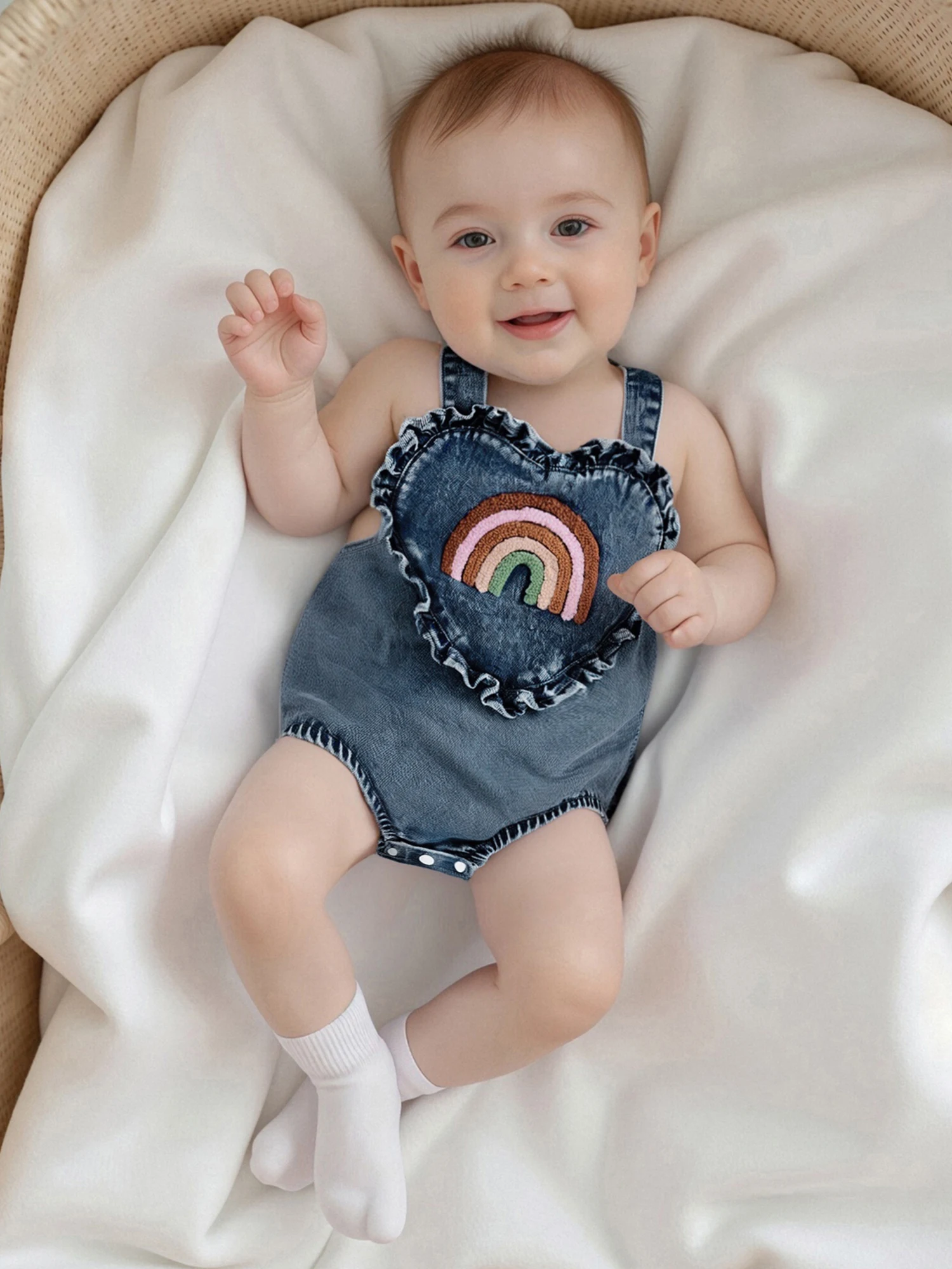 Mameluco vaquero para niña sin mangas con bordado de arco iris y tirantes mono mono para recién nacido