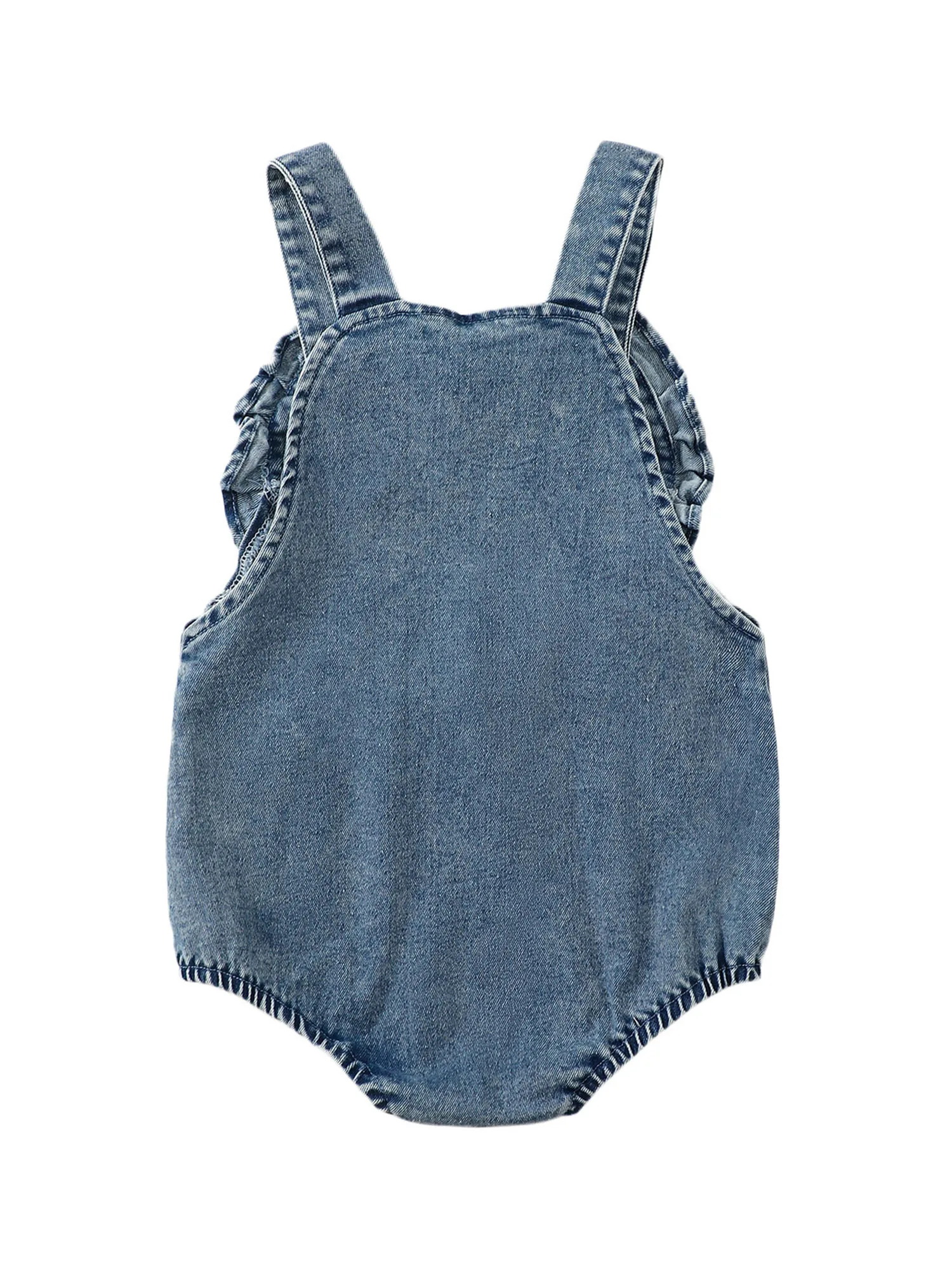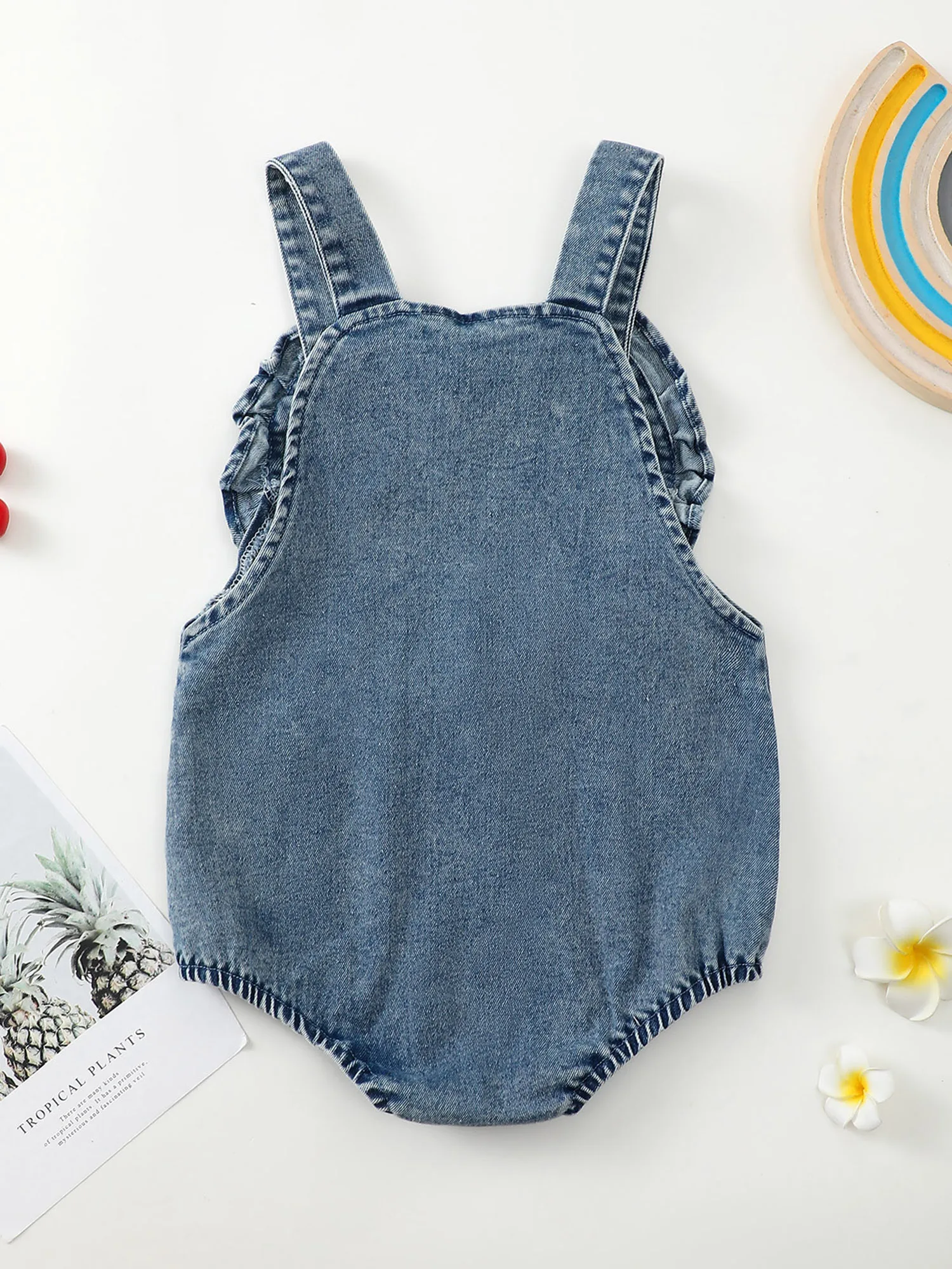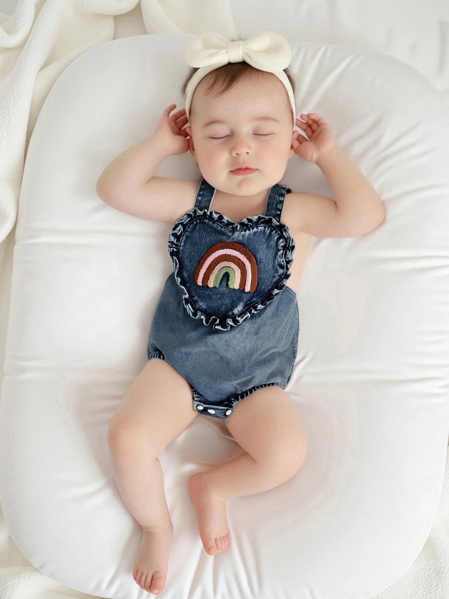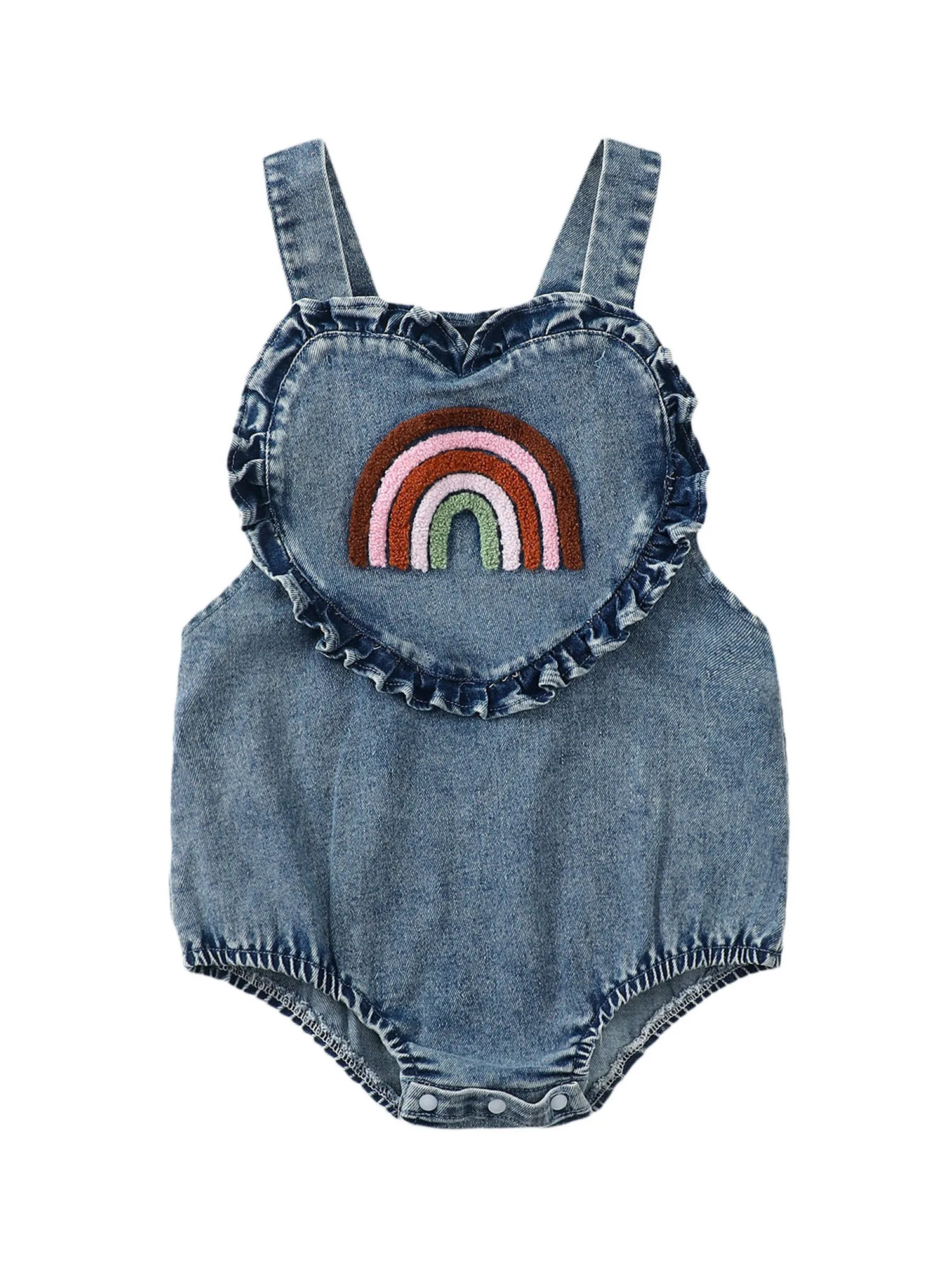 Mameluco vaquero para niña sin mangas con bordado de arco iris y tirantes mono mono para recién nacido