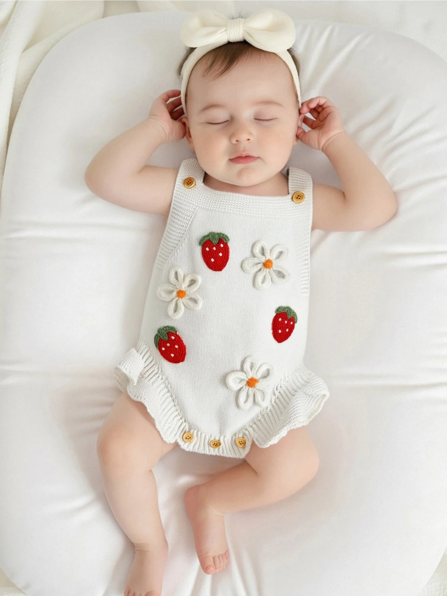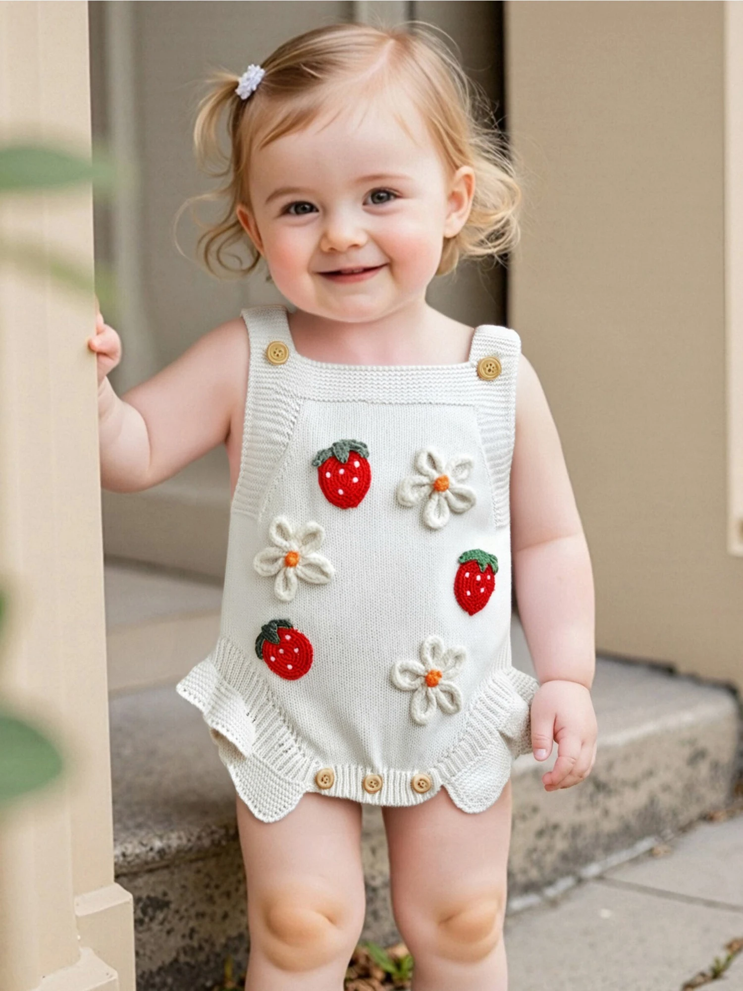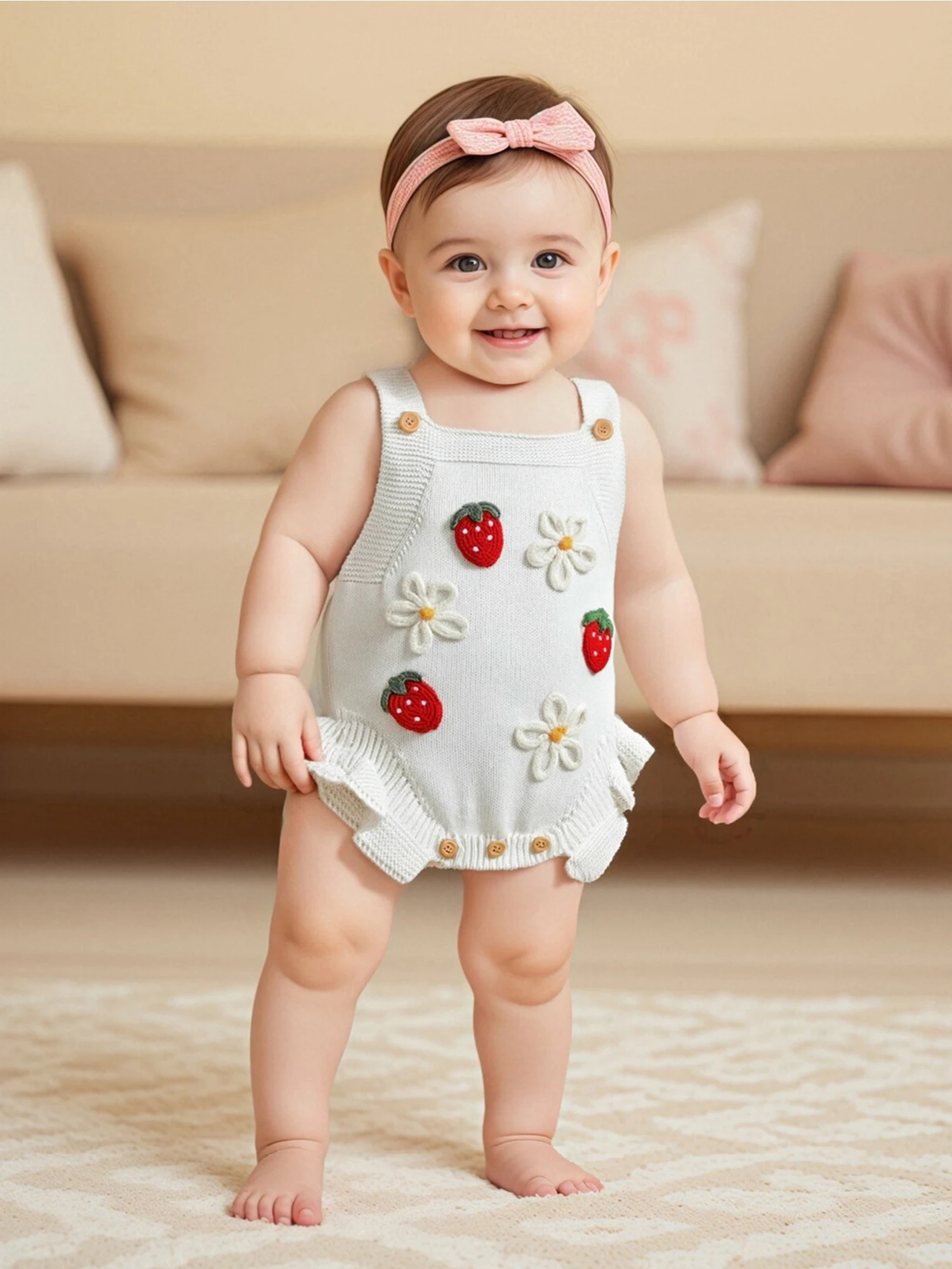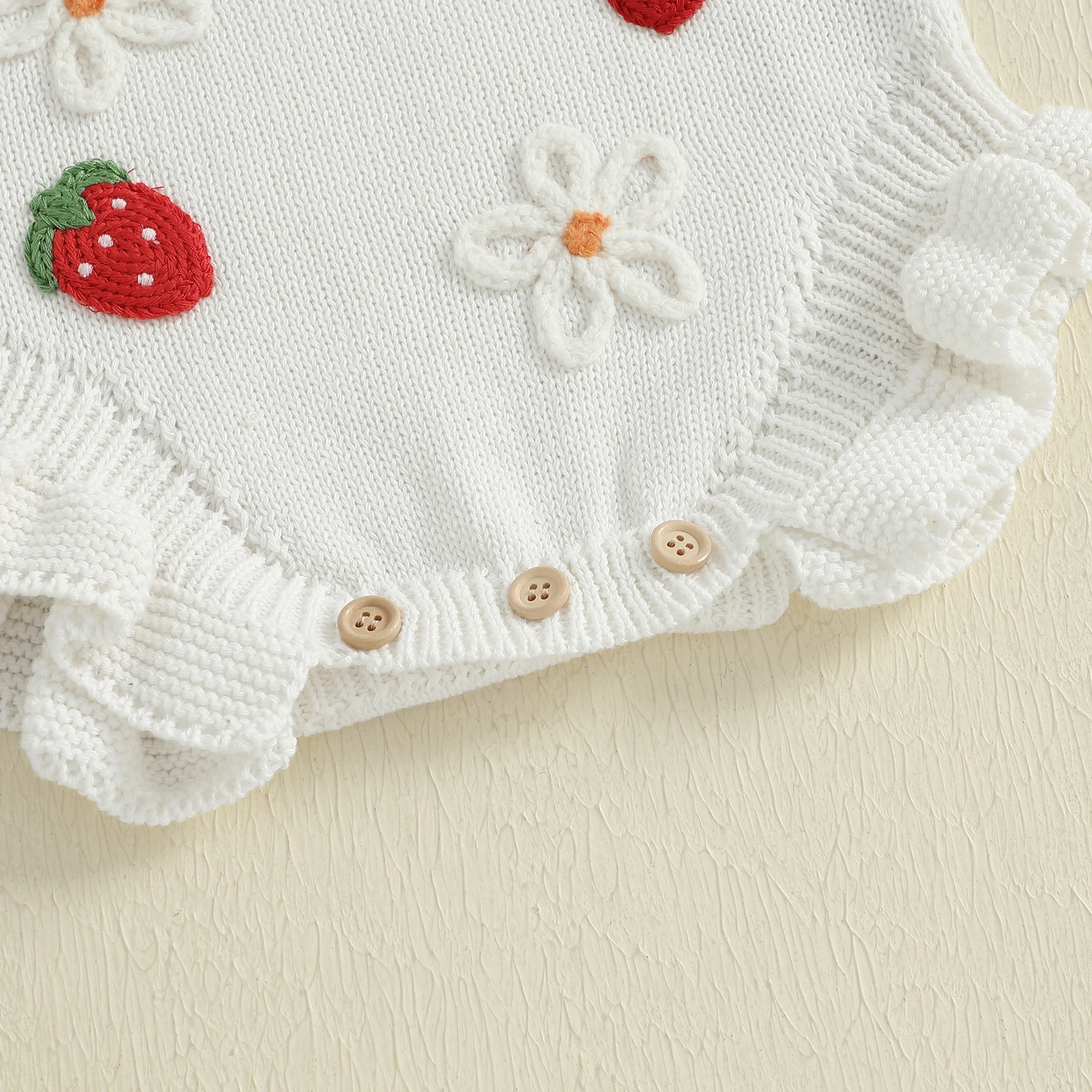 Comprar SUNSIOM 0-24 meses bebé niña mameluco de punto flor de ganchillo fresa sin mangas cuello cuadrado mono suéter mono
