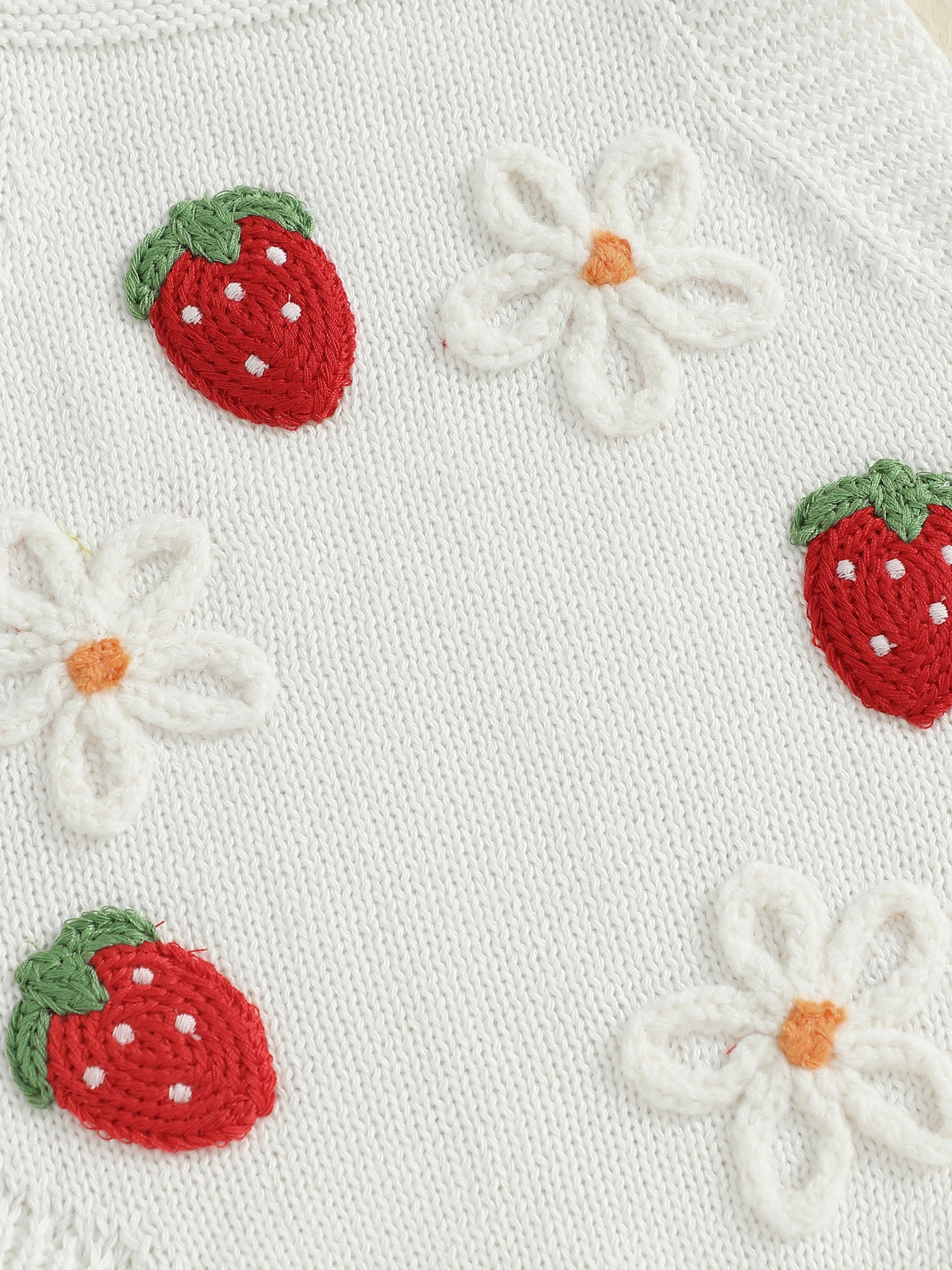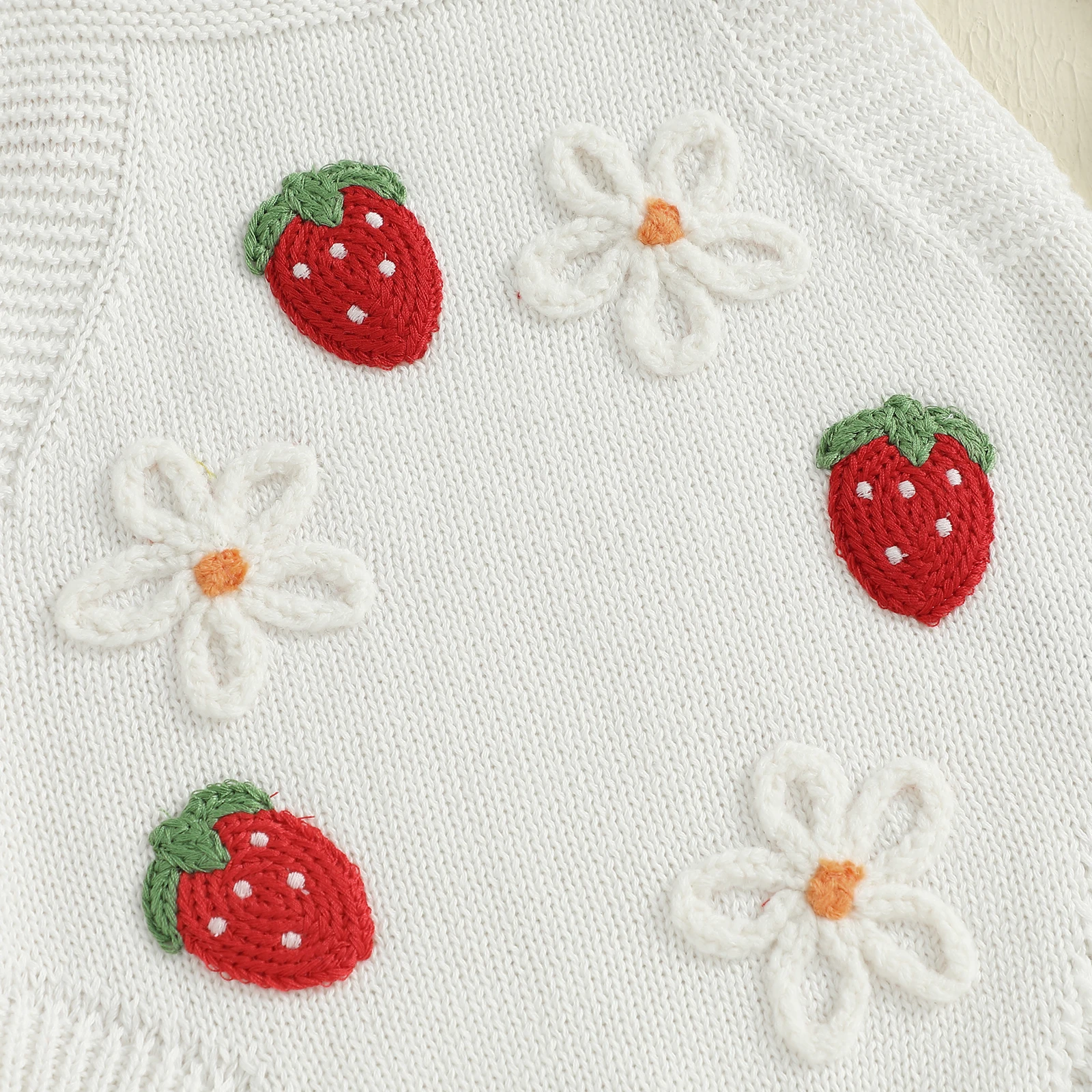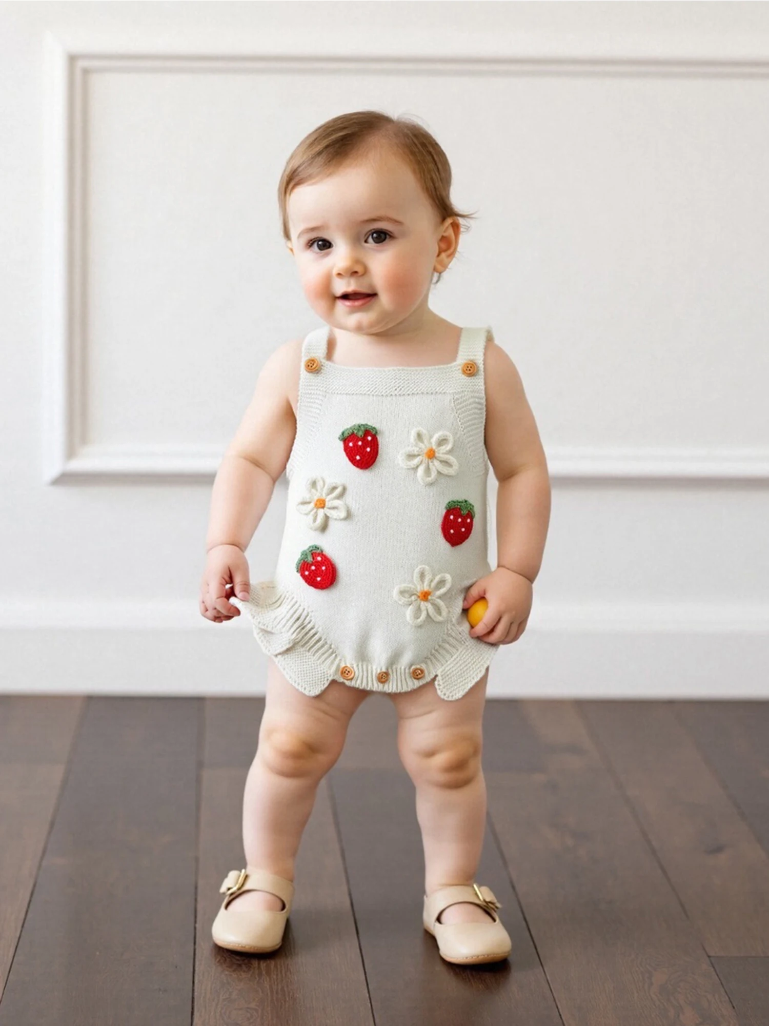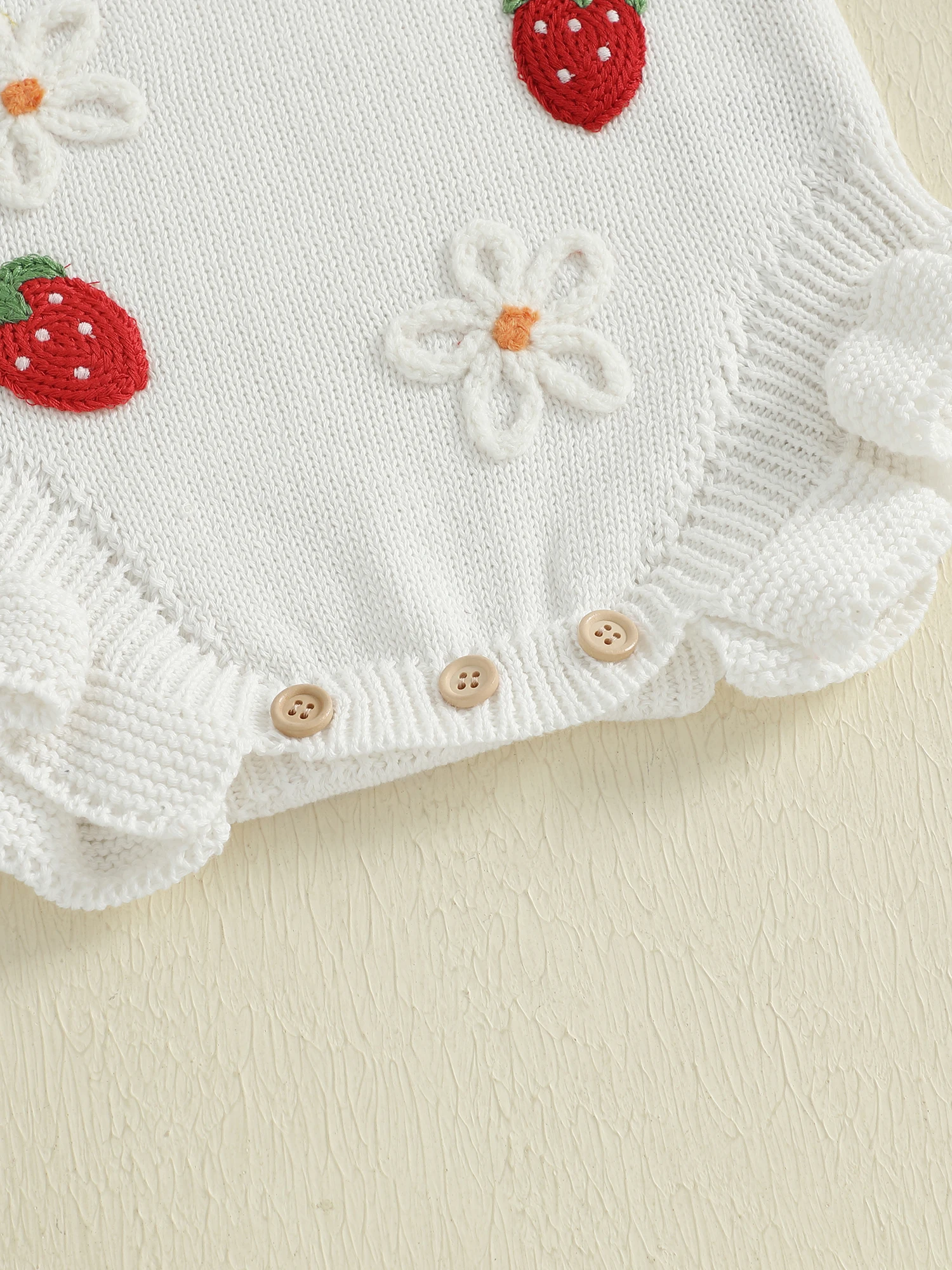 Comprar SUNSIOM 0-24 meses bebé niña mameluco de punto flor de ganchillo fresa sin mangas cuello cuadrado mono suéter mono