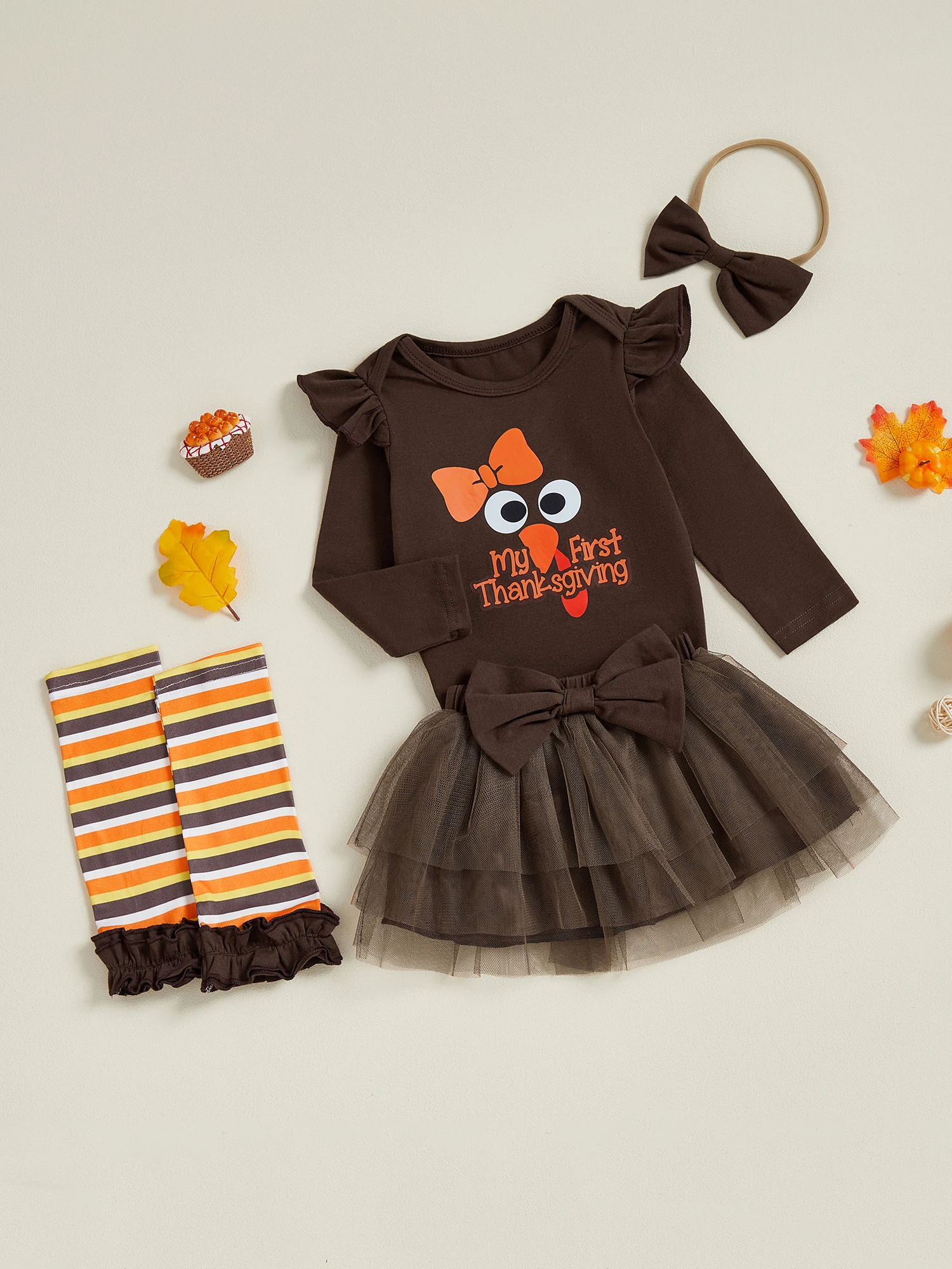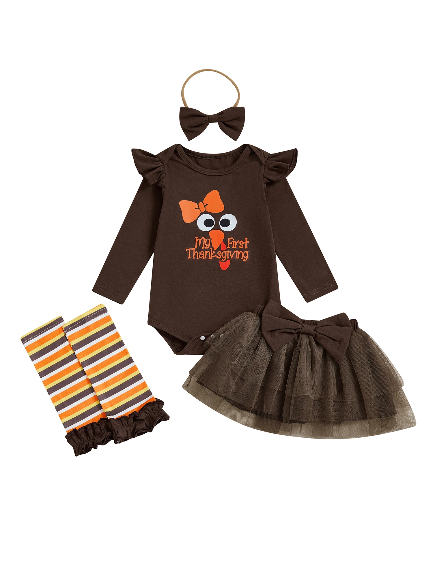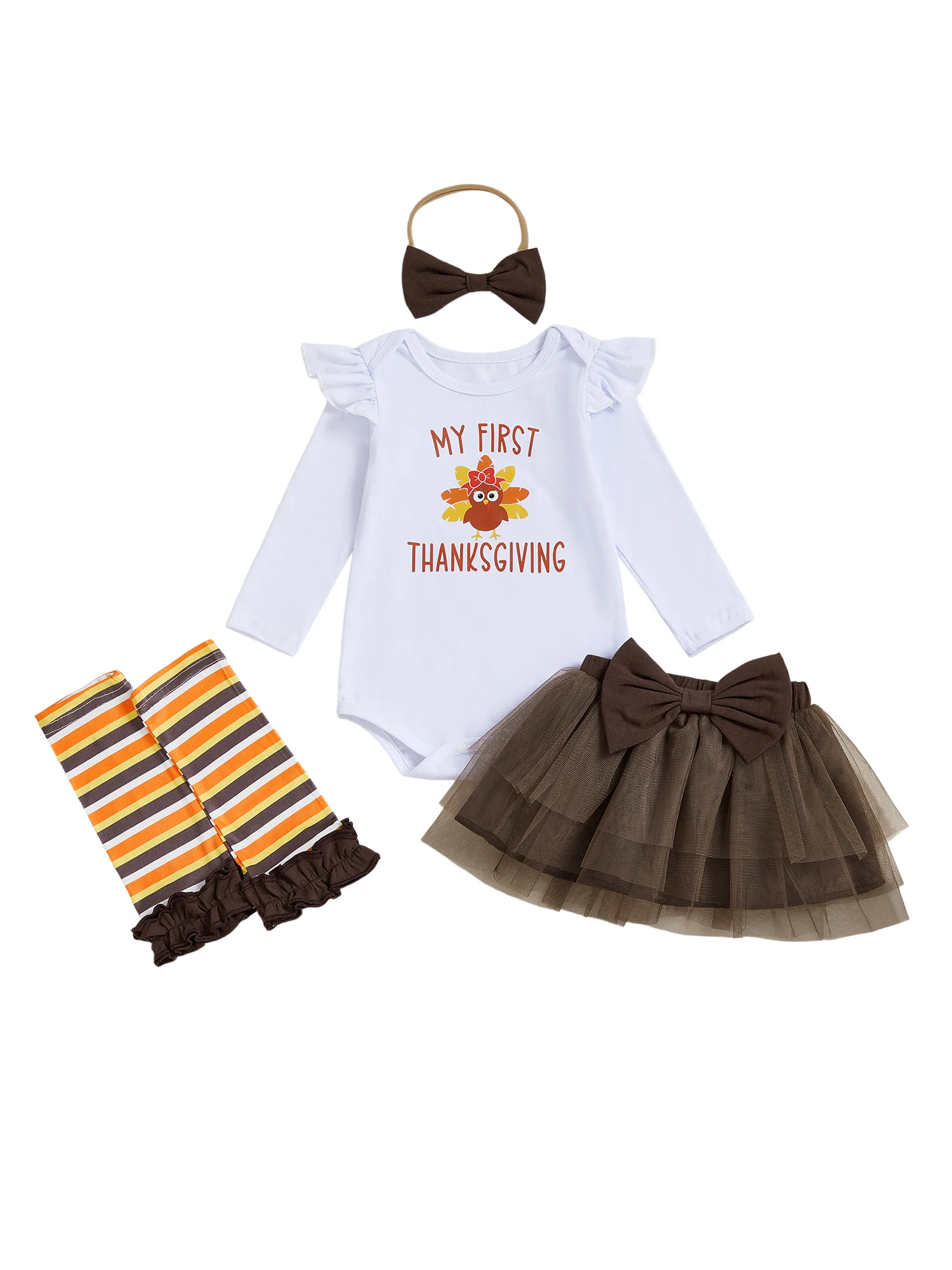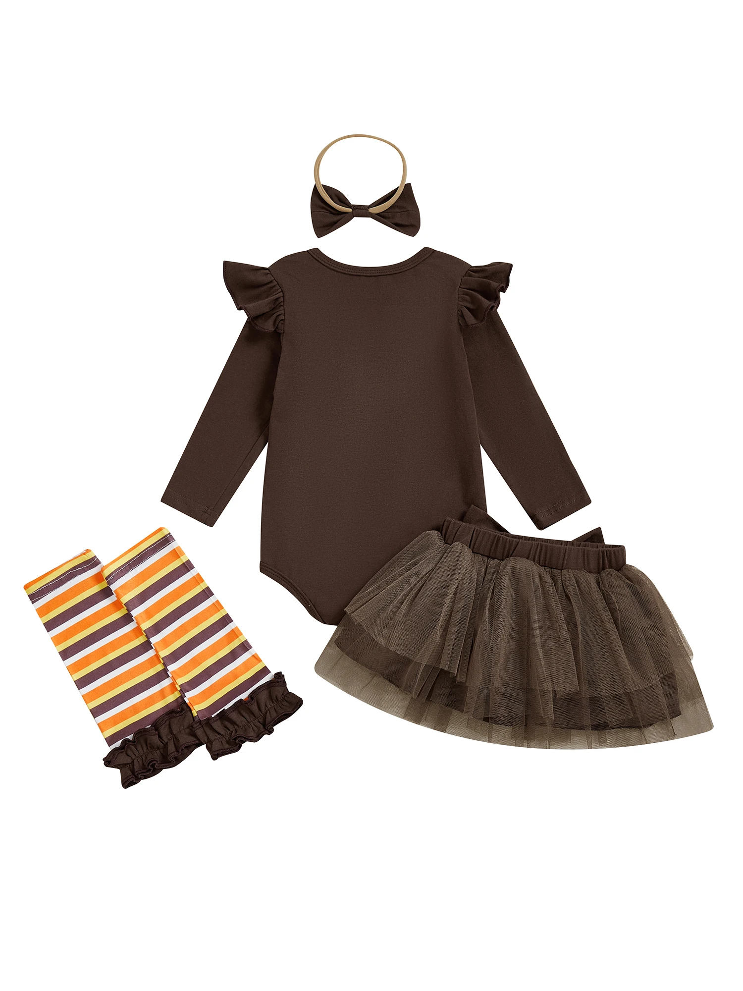 Comprar SUNSIOM, 4 Uds., traje de Acción de Gracias para niña, pelele de manga larga + falda de tul + diadema + calentadores de piernas, conjunto de ropa infantil