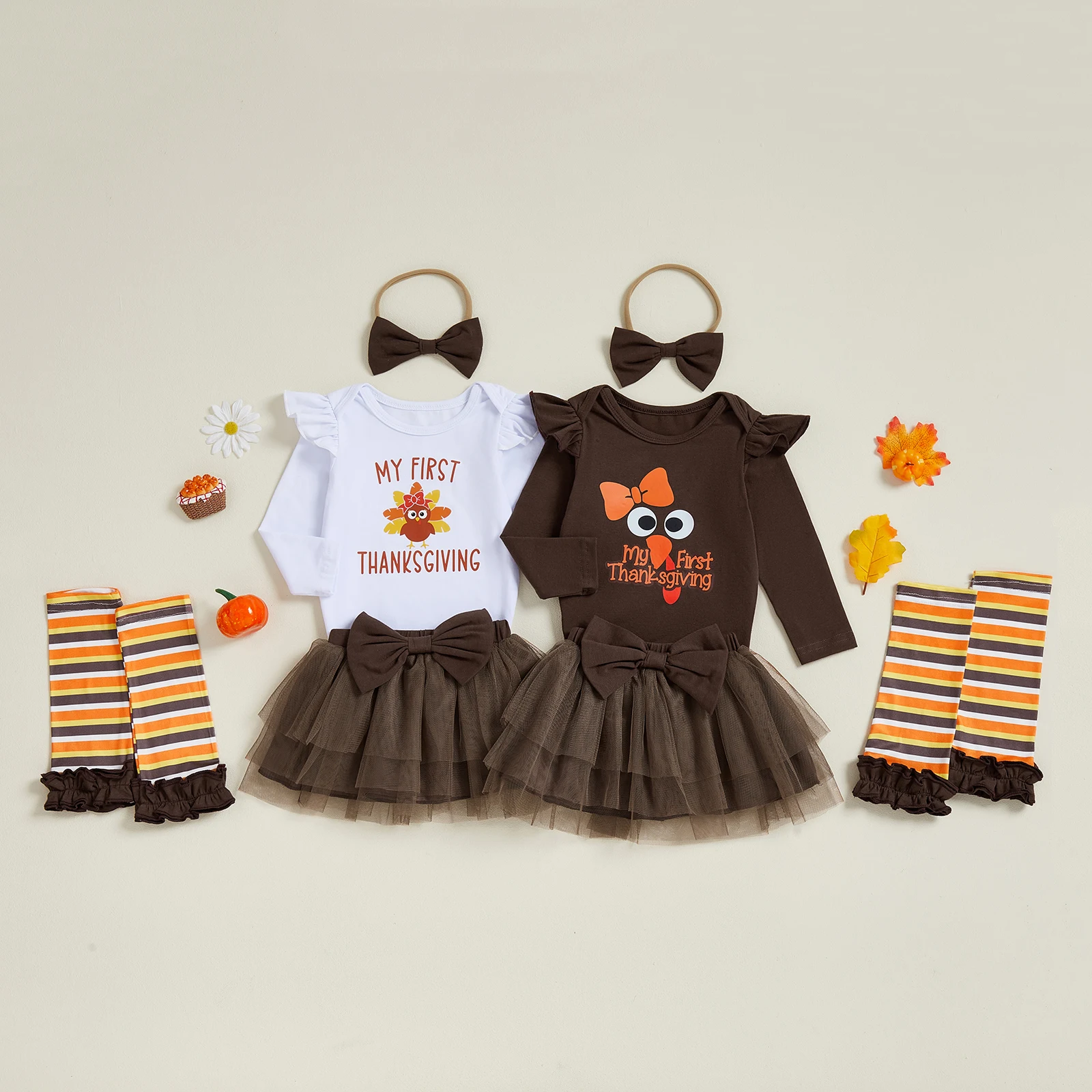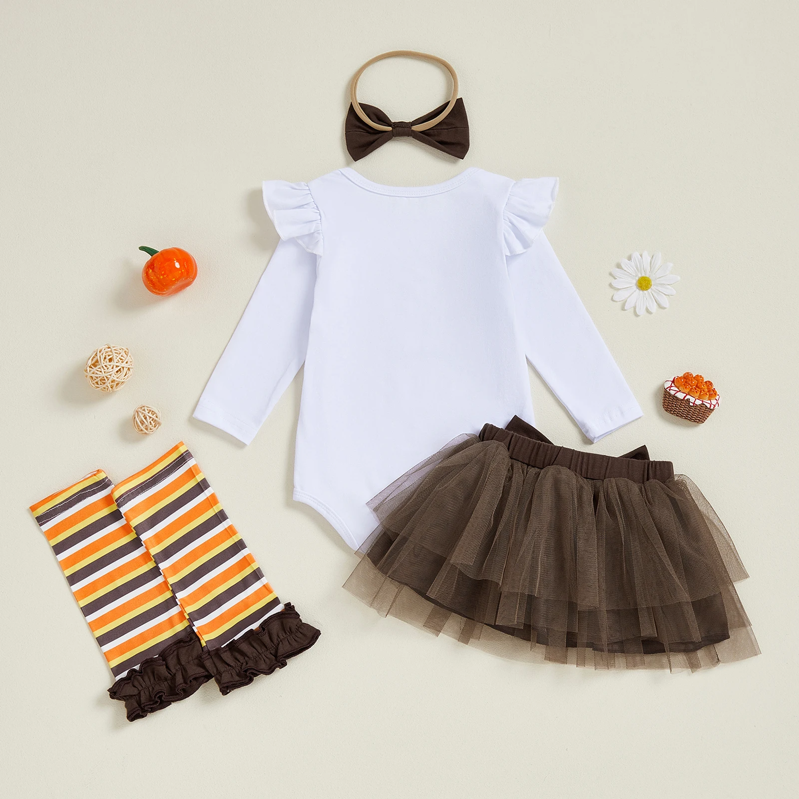 Comprar SUNSIOM, 4 Uds., traje de Acción de Gracias para niña, pelele de manga larga + falda de tul + diadema + calentadores de piernas, conjunto de ropa infantil