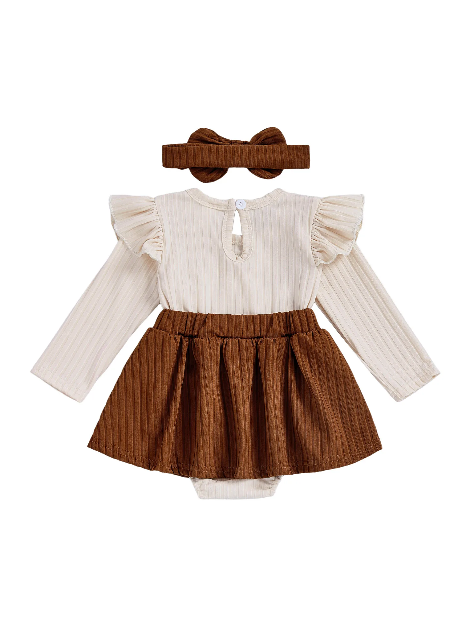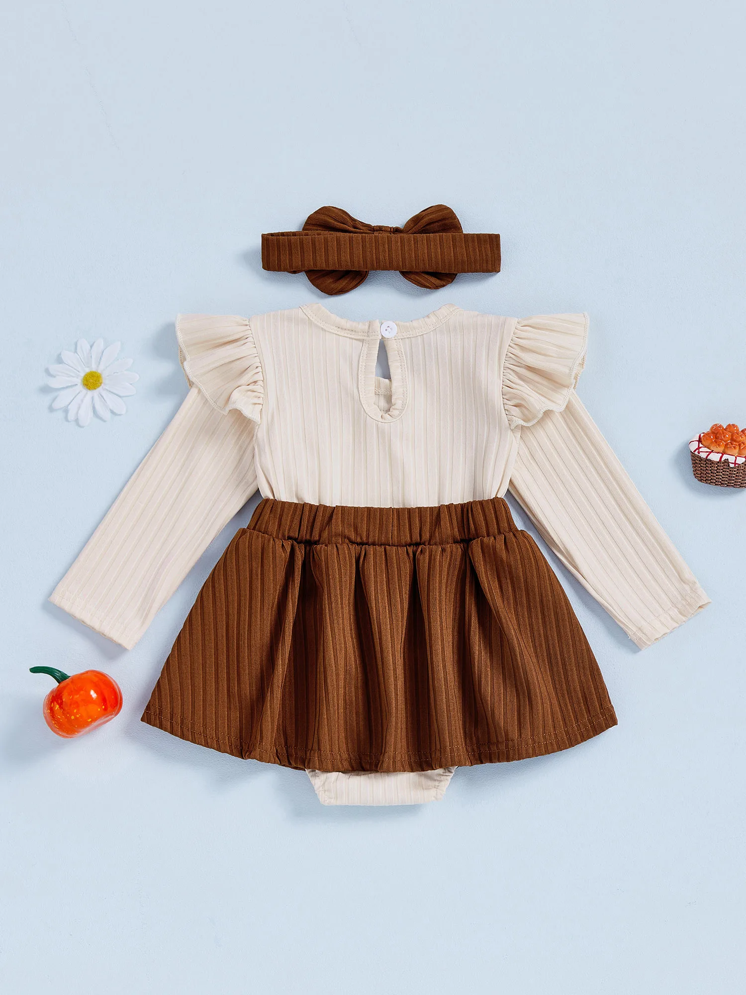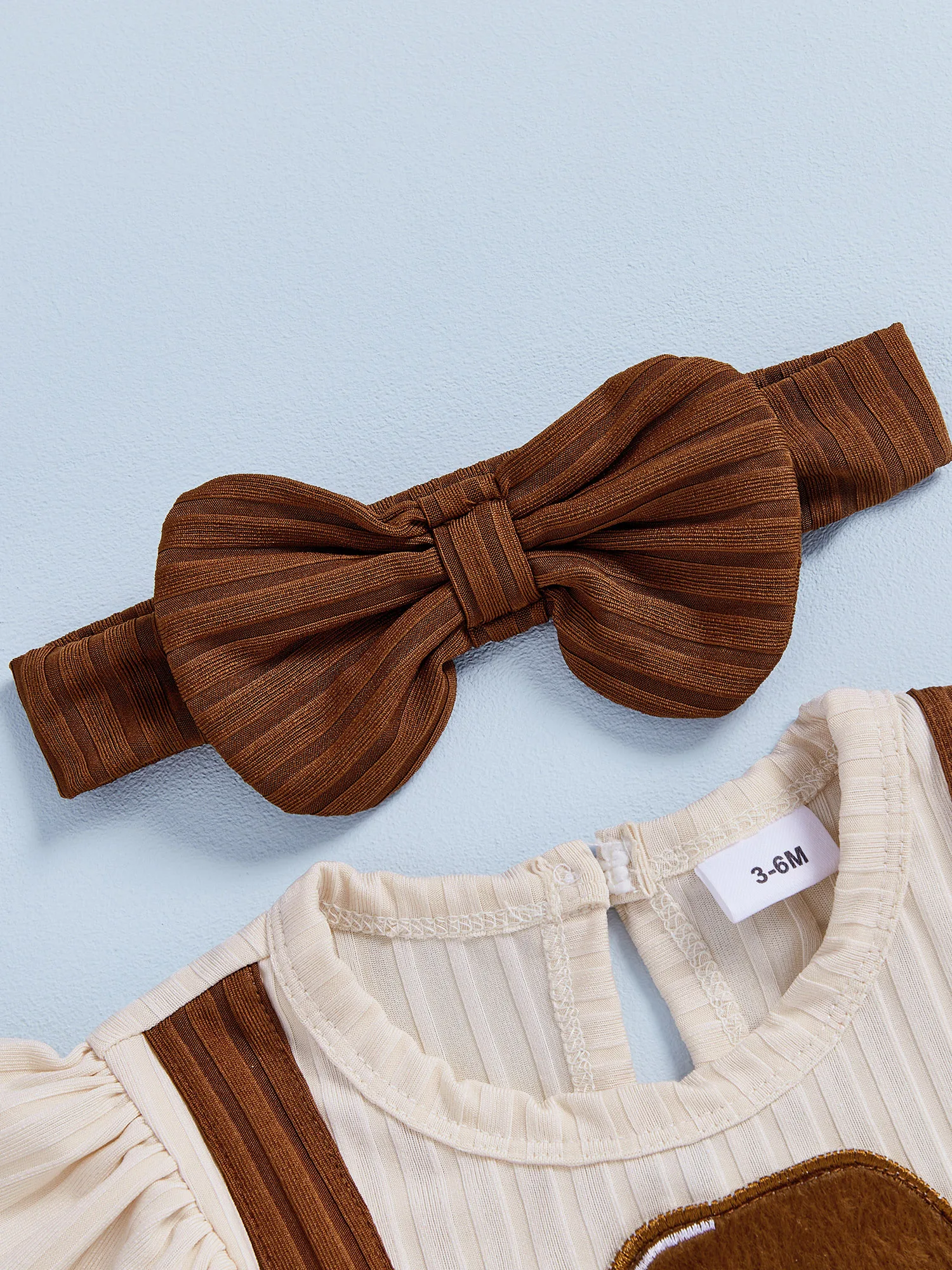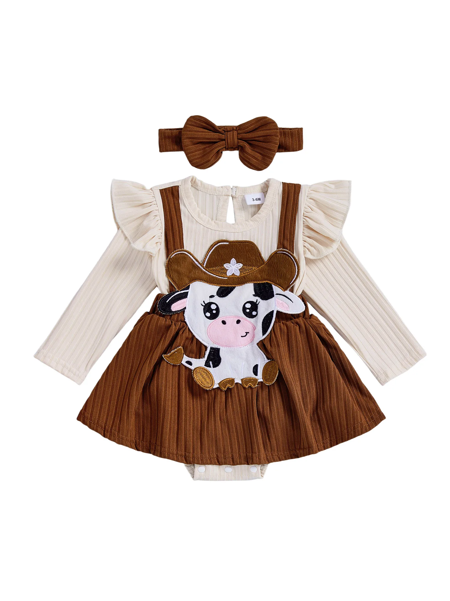 Conjunto de 2 piezas de trajes de otoño para niñas, mameluco bordado de vaca de manga larga con diadema, ropa occidental para recién nacidos