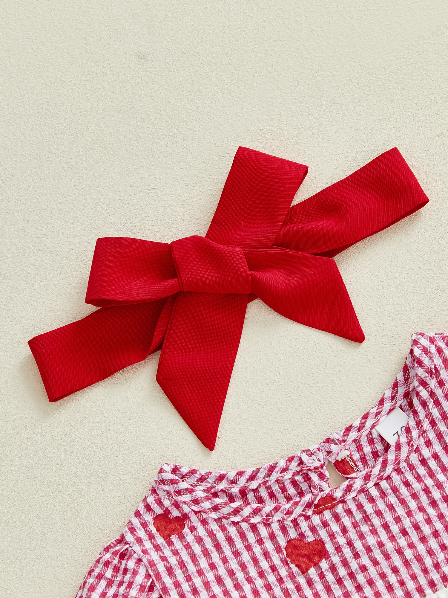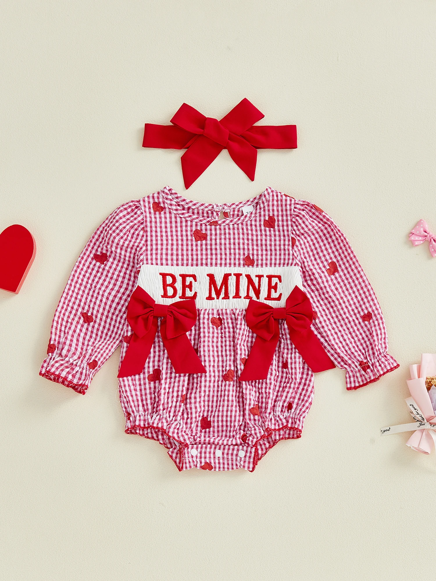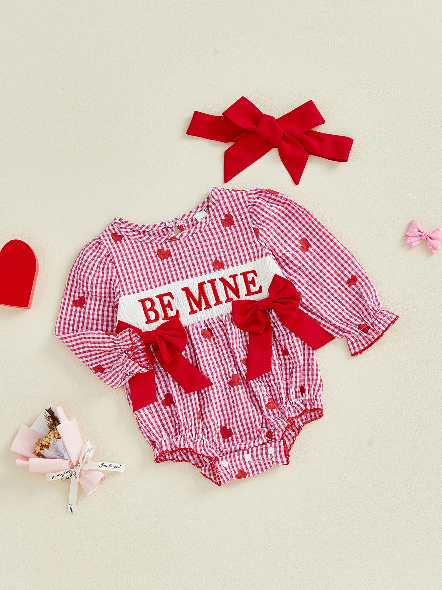 Conjunto de mameluco bordado de corazón de manga larga para el día de San Valentín para niña con diadema, ropa para recién nacido