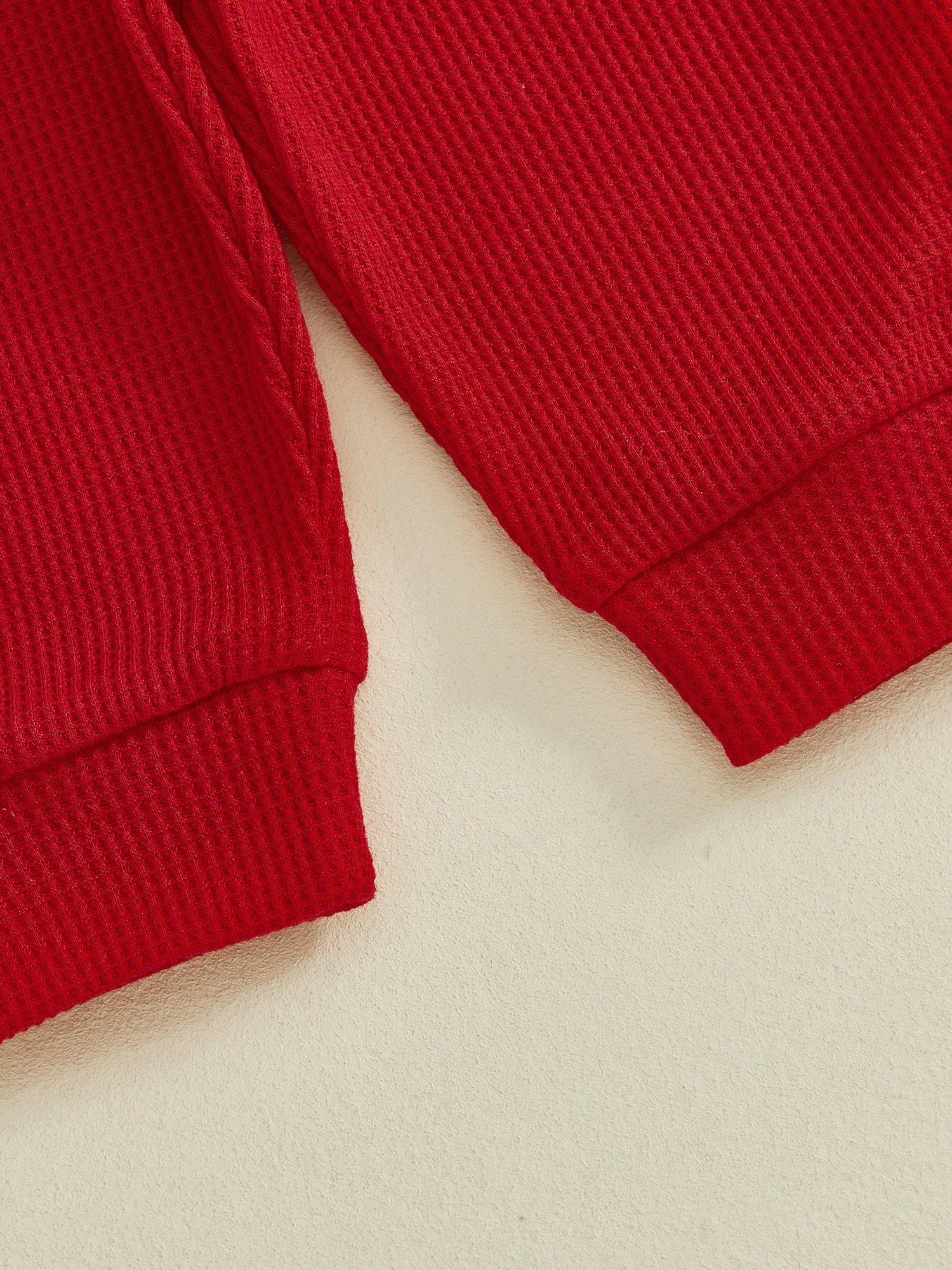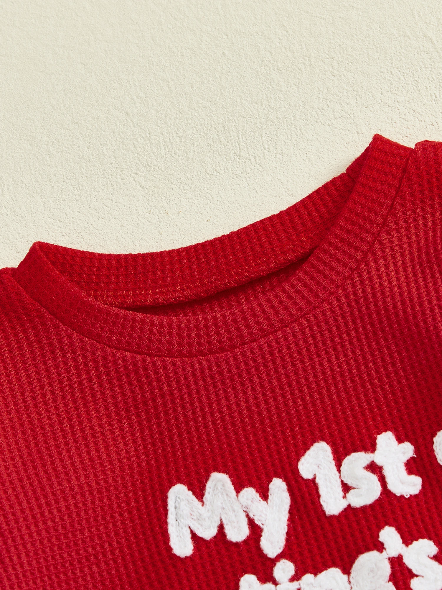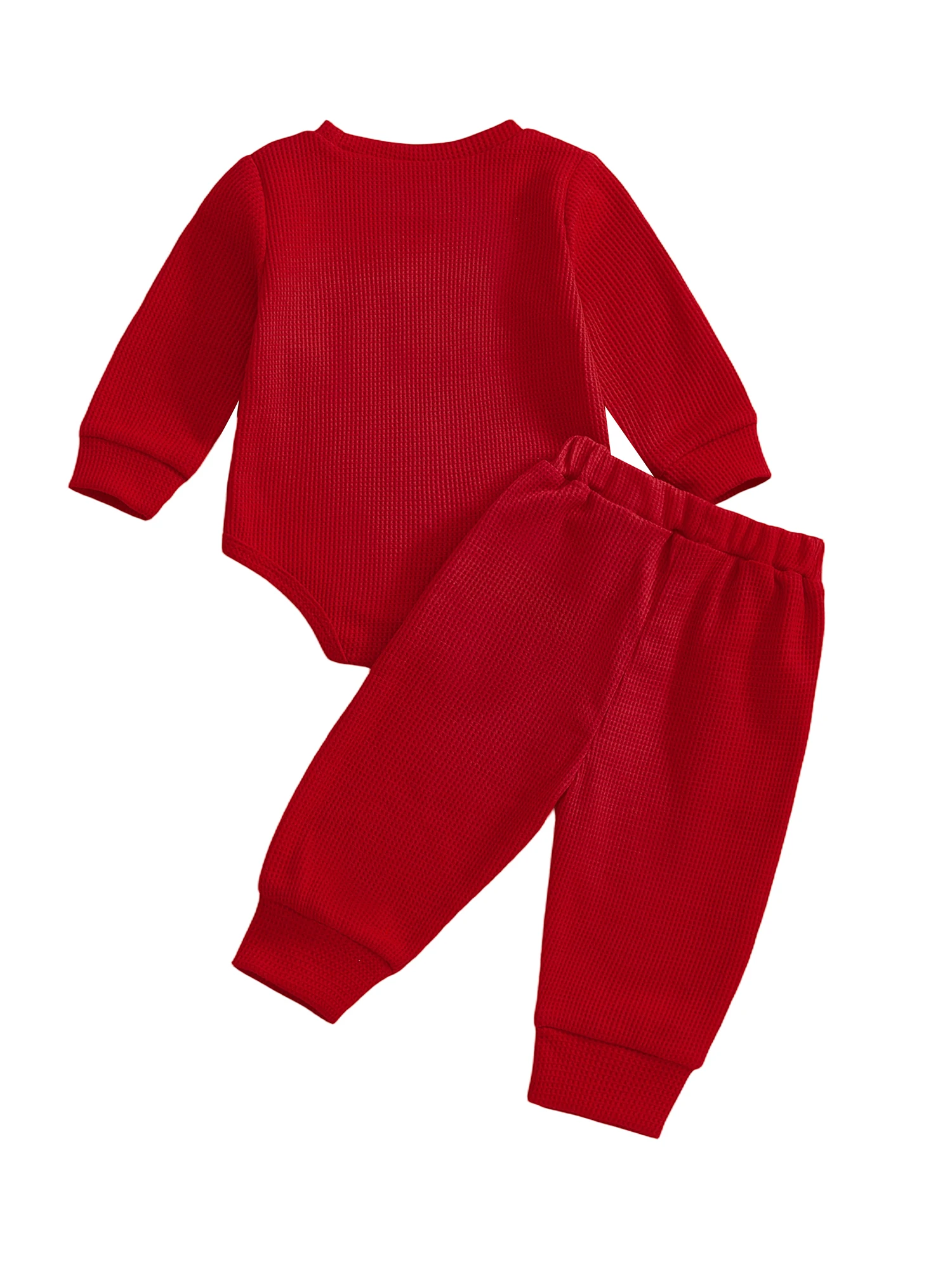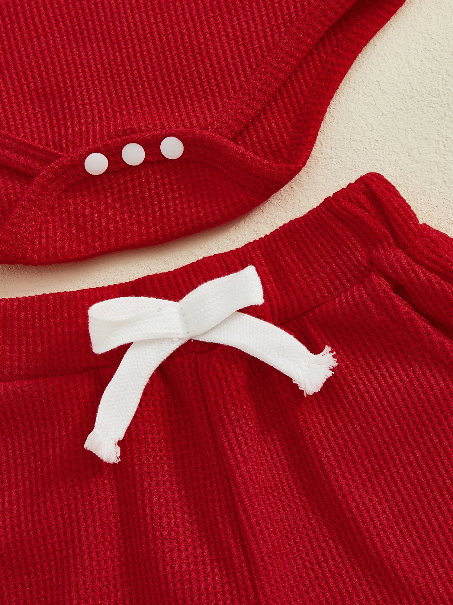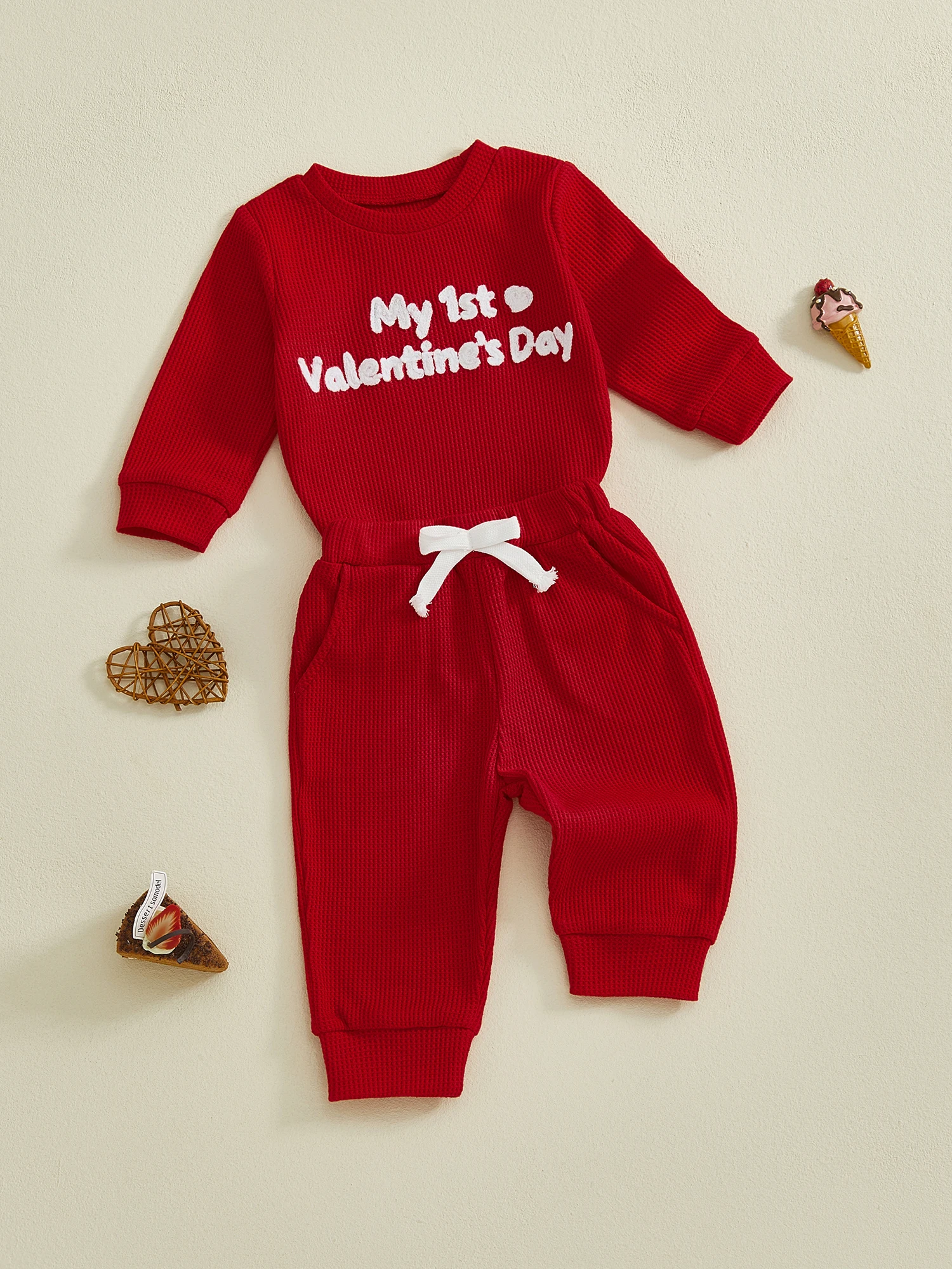 Conjunto de pantalones con cordón para mameluco bordado de letras y cuello redondo de manga larga para el día de San Valentín para bebés