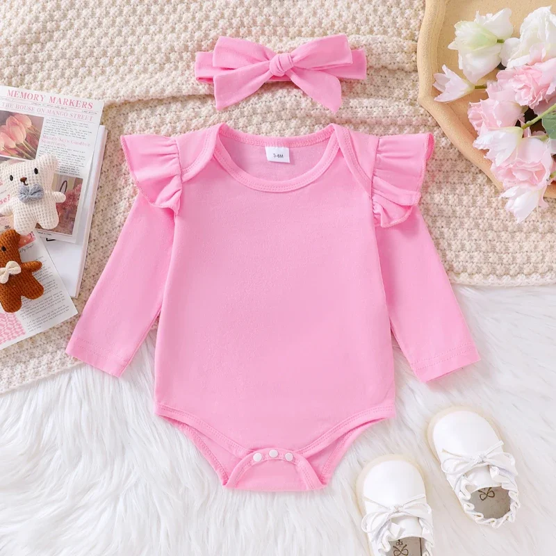 Trajes de otoño para niña, Pelele de Color sólido, estampado de vaca, volantes, falda con tirantes, diadema, conjunto de ropa de 3 piezas