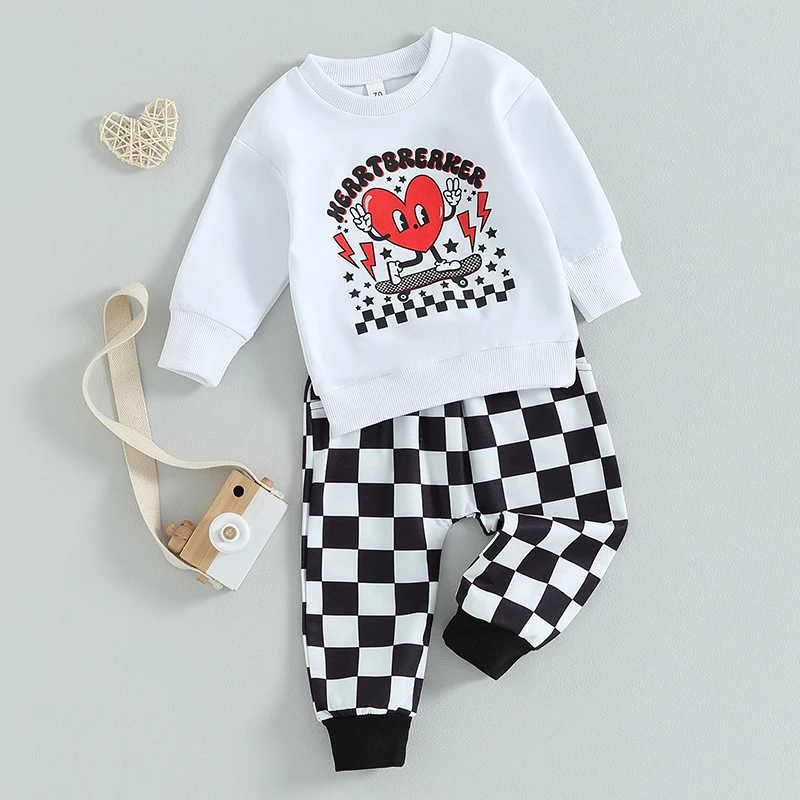 Comprar SUNSIOM-Conjunto de ropa para bebé y niño, sudadera de manga larga con cuello redondo y estampado de letras y corazones, pantalones de chándal a cuadros, ropa infantil para primavera y otoño